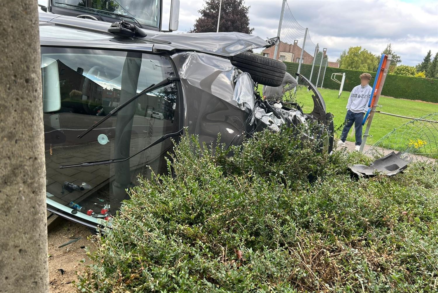 Auto belandt op zijn flank na crash in Sluisbamd