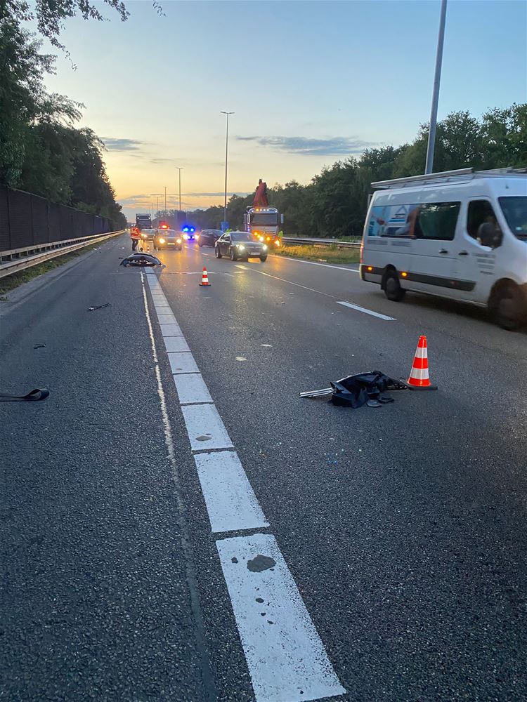 Vanmorgen rond 4.30 uur is op de E314 ter hoogte van Terlaemen een auto achterop een vrachtwagen gebotst. Er raakte niemand gewond, de auto werd daarbij volledig vernield, de vrachtwagen raakte lichtbeschadigd. Er lagen brokstukken verspreid over het rijvak, zodat het verkeer een tijdje trager verliep, tot de wagen getakeld en alles opgeruimd was. (foto's Geert Schops)74499