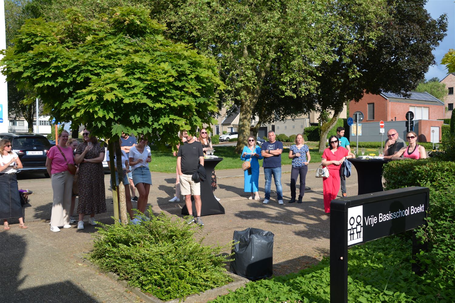 Met een kleine plechtigheid en een receptie buiten in de zon is vanavond aan de Vrije Basisschool Boekt een gloednieuw AED-toestel in gebruik genomen. Maar eerst moest er gewerkt worden. Ruim anderhalf uur lang hadden alle personeelsleden van de school, maar ook leden van school- en ouderraad, parochie, dorpsraad en de buren een opleiding gekregen om te leren omgaan met de Automatische Externe Defibrilator. Met dat toestel kun je op een relatief makkelijke manier iemand na een hartstilstand reanimeren. Directeur Miet Vanbilsen is blij met het toestel. Ook met het feit dat het aan de buitenzijde van de school is geïnstalleerd zodat heel de gemeenschap van Boekt er belang kan bij hebben. Uiteraard staat er wel een camera om het kostbare toestel in de gaten te houden. Dankzij de vzw HeartSaver kon het toestel gratis geplaatst worden. Die organisatie gaat op zoek naar sponsors, verschillende bedrijven uit de buurt hebben het project gesteund. Zij worden vermeld op een bordje naast het toestel en de sponsors waren ook bij de ingebruikname aanwezig. Burgemeester Mario Borremans onderstreepte het belang van zulke toestellen, omdat ze quasi door iedereen kunnen bediend worden en ze altijd op de meest onverwachte momenten kunnen nodig zijn. De gemeente heeft ook de installatie van 19 AED's op publieke plaatsen gepland, daarvan mag nu eentje aangevinkt worden. Een instructeur van de firma Cardioservice gaf tenslotte nog een demo van de concrete werking van het toestel voor iedereen . En daarna werd er getoost in de hoop dat het toestel nooit nodig is. 80944