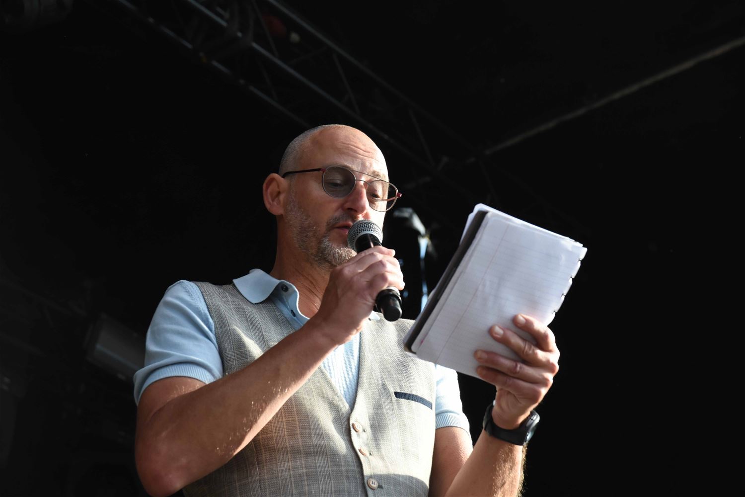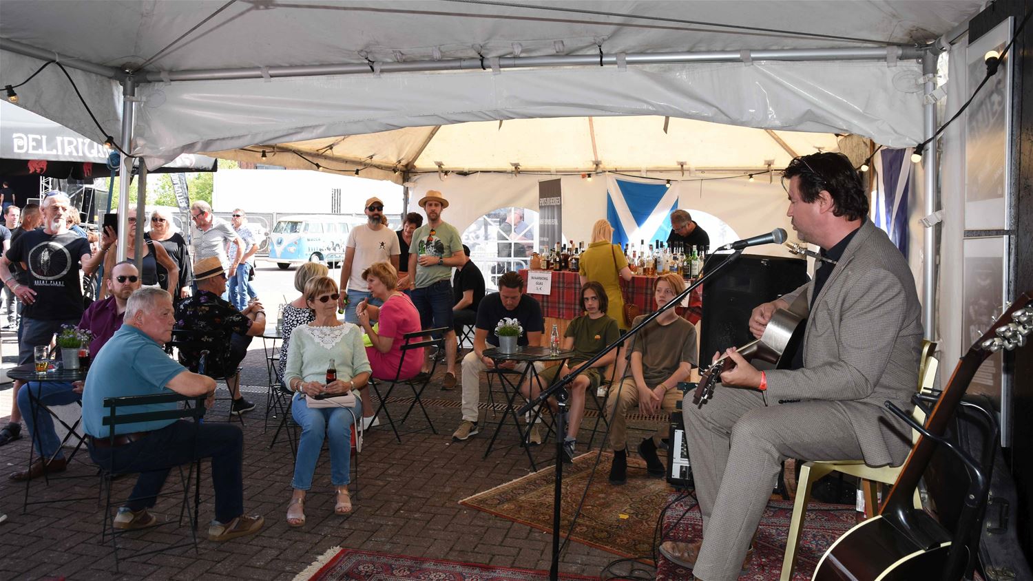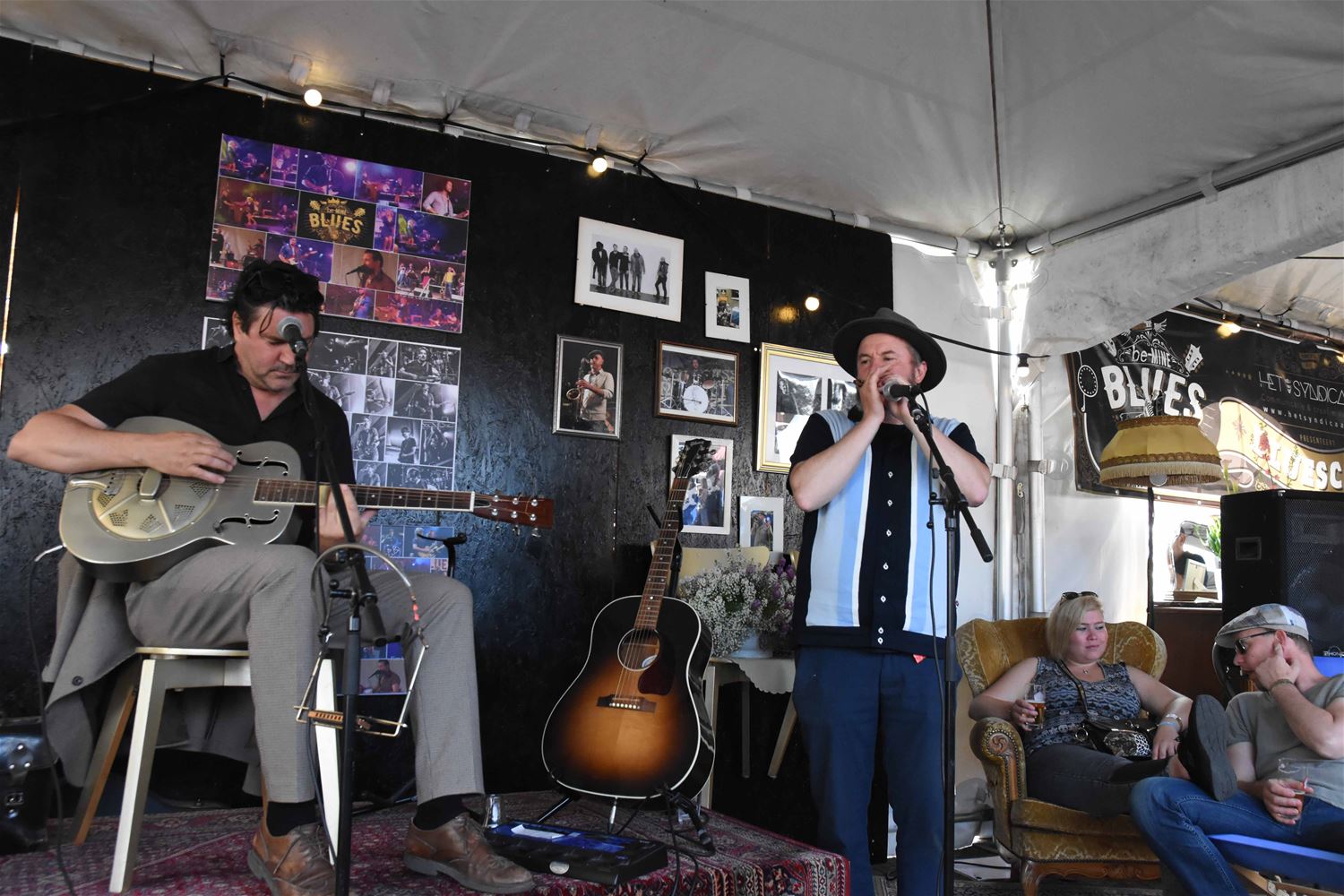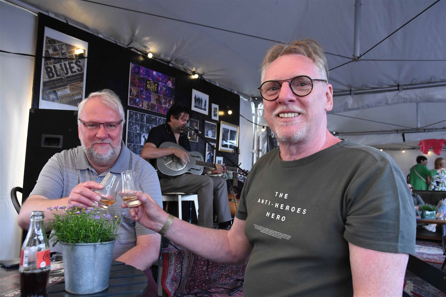 De vijfde editie van be-MINE Blues en meteen de eerste op het Marktplein in Heusden-Zolder bewees dat hier een geknipte ruimte en een publiek is voor een festival dat gemoedelijkheid combineert met goede muziek. Met aandacht voor bands uit de (ruime) regio en zonder internationale allures te pretenderen. Het kwam wat traag op gang, maar dankzij het weer dat de organisatoren verdienden en de muziek die het opgekomen publiek verdiende, groeide de sfeer in de loop van de dag. De bands hadden er dan ook stuk voor stuk veel zin in. Tussendoor werk op het terrein ook heel wat verbroederd, tussen pot en pint, of met een glas wisky. En voor de bluesliefhebbers is er nog goed nieuws, want vanaf het najaar worden ze weer voor maandelijkse concerten in het Muzecafé verwacht. (foto's Patrick Knuyt) straks nog meer 73341