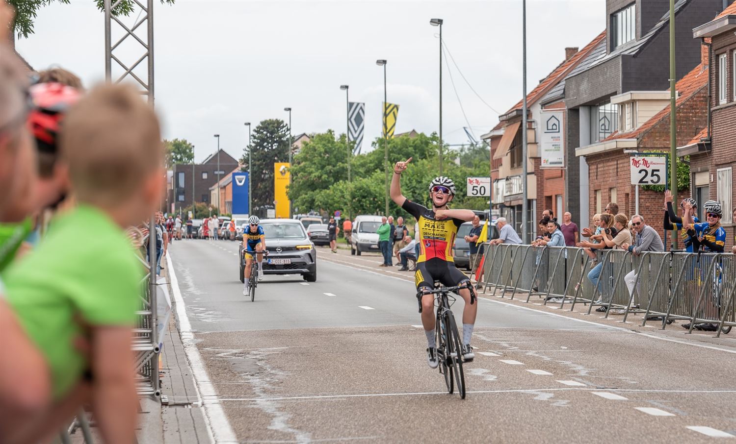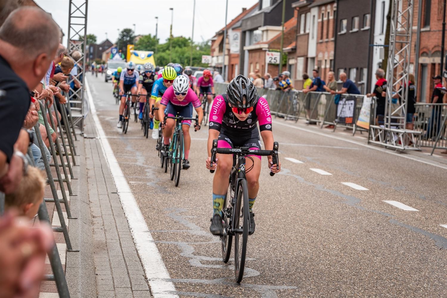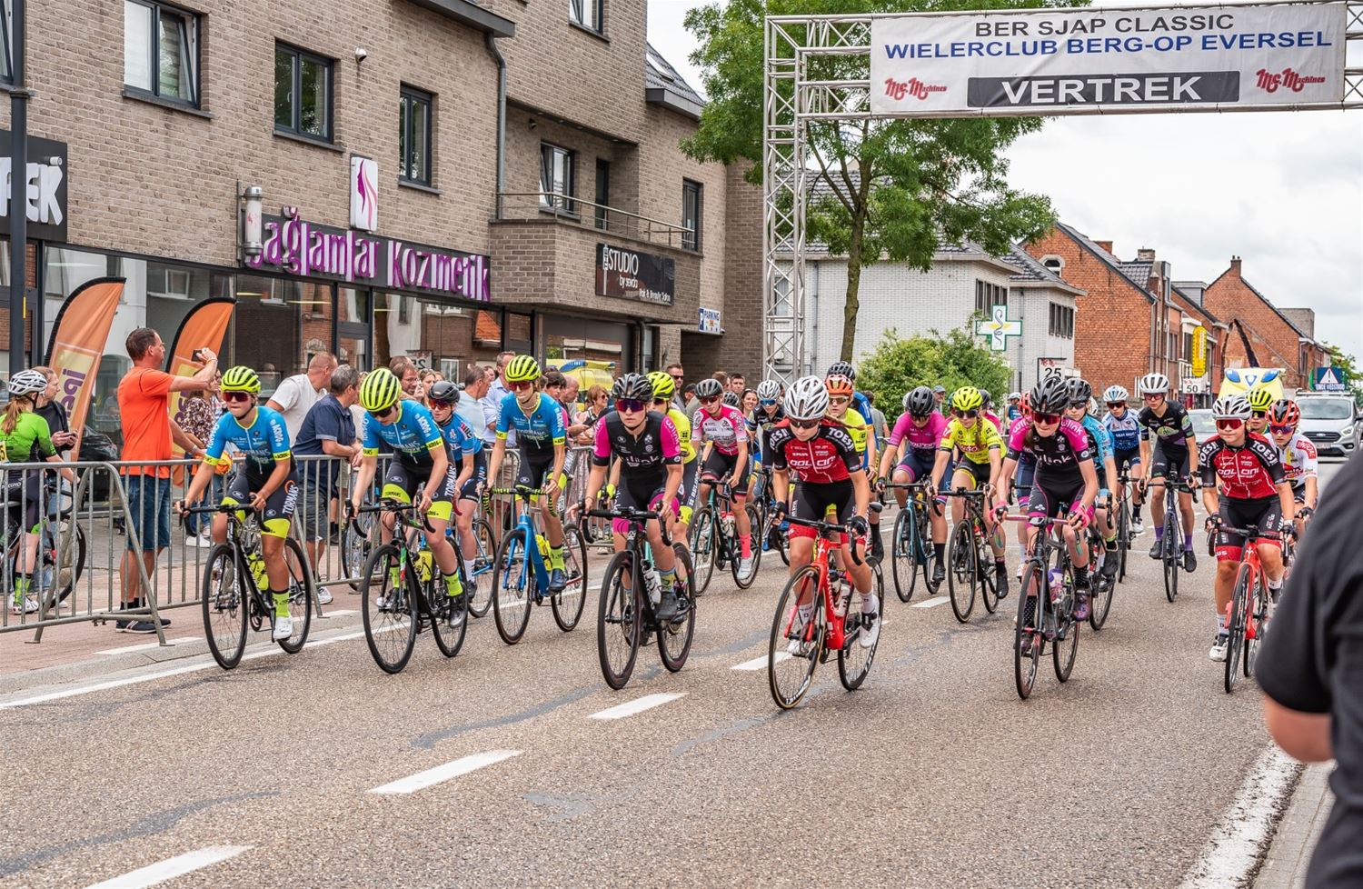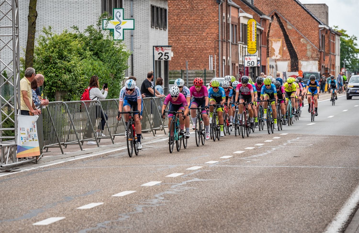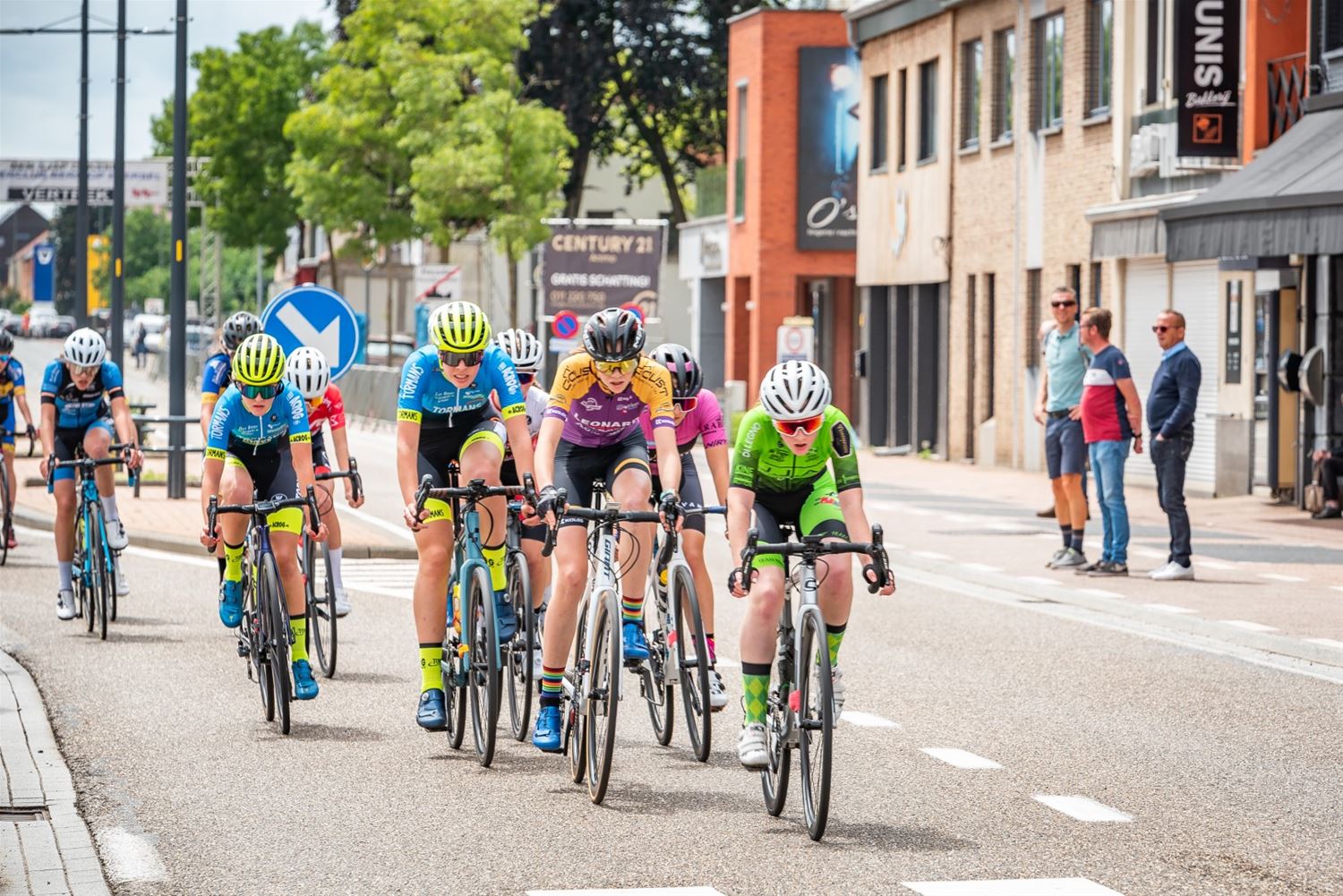 Voor de wedstrijd van de jongedames in Heusden-Centrum mocht wielerclub Berg Op Eversel deze namiddag 54 rensters verwelkomen. 40 van hen overleefden de 71 km waarin het er erg pittig aan toeging. Maar het was Belgisch nieuwelingenkampioene Ella Heremans van Maes CT Glabbeek die in de spurt haar ploeggenote Jill Ramaekers nog 3 seconden aansmeerde. De derde podiumplek was voor Fleur Moors. (foto's Ann Jordens)73479
