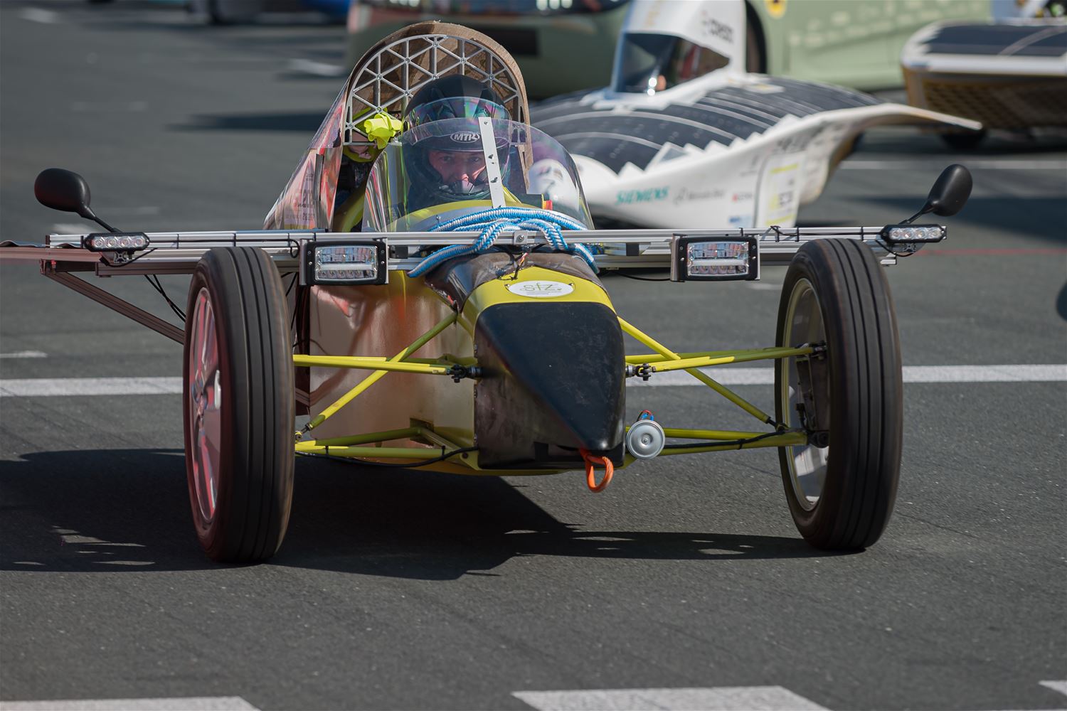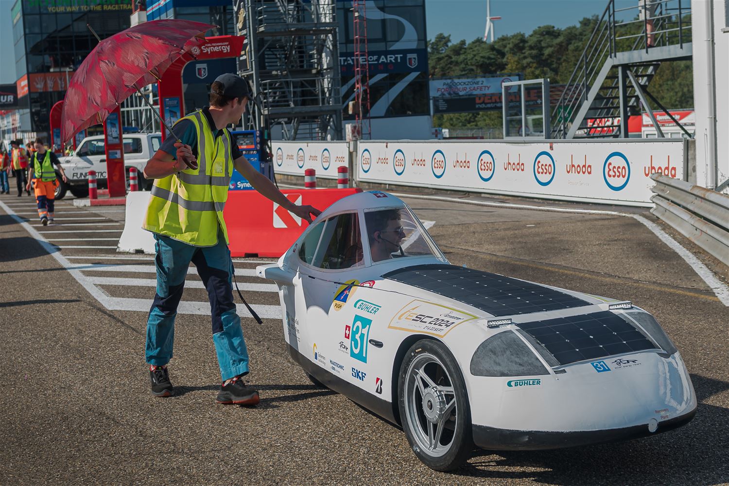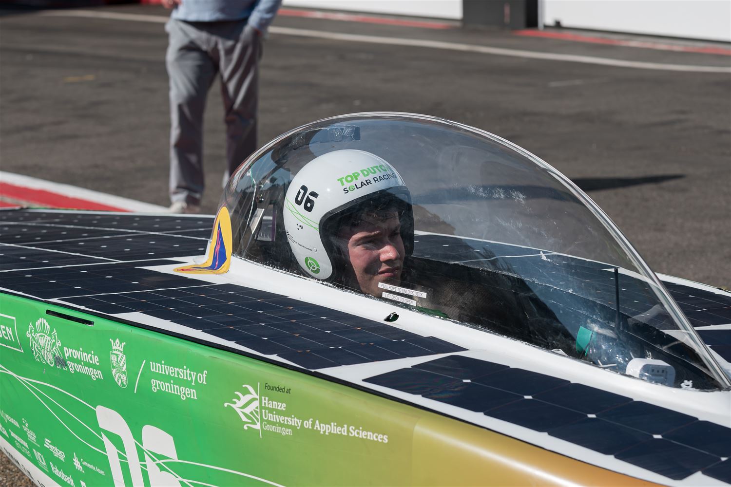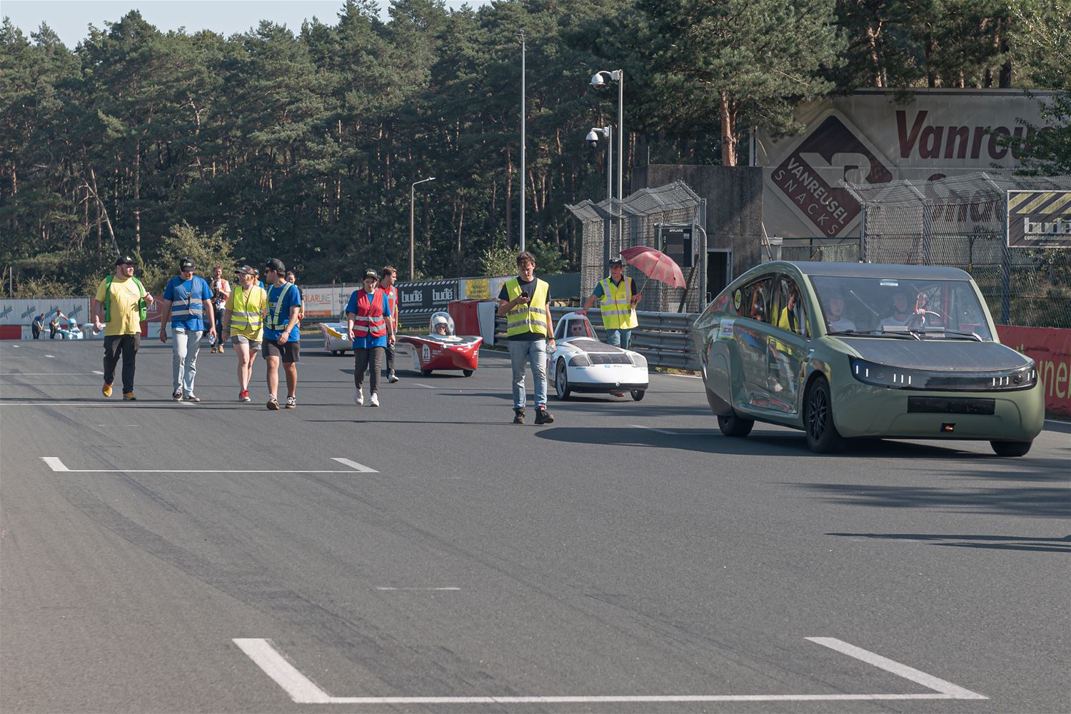 17 teams hebben vanmiddag op Circuit Zolder de start genomen voor de Ilumen Solar Challenge 2024. Prins Laurent moest verstek geven omdat hij ziek was en dus werd het een start zonder prinselijke allures maar wel volledig in Le Mans stijl. De teams hebben het weer mee, want nog tot vanavond kunnen ze genieten van volop zon en dus moeten ze alleen de laadbeurten van vannacht wat plannen. En het Belgische Innoptus Team nam meteen de leiding en bleef die ook vasthouden tijdens het eerste deel van de race. Na bijna 5 uur race telde het Leuvens team 72 rondes, één meer dan Zonnewagen Achen en 5 meer dan Zonnewagen Aachen 2. Voor de rest zijn er deelnemers uit Nederland, Duitsland, Engeland, Zwitserland, Zweden, Turkije, Roemenië en Polen. In de marge van de race komen ook heel wat bedrijven uit aanverwante sectoren contacten leggen of zich voorstellen en zijn er elektrische wagens te zien. Er zijn vandaag ook veel meer supporters en toeschouwers aanwezig dan bij andere edities. (foto’s Roman Martyka)83099