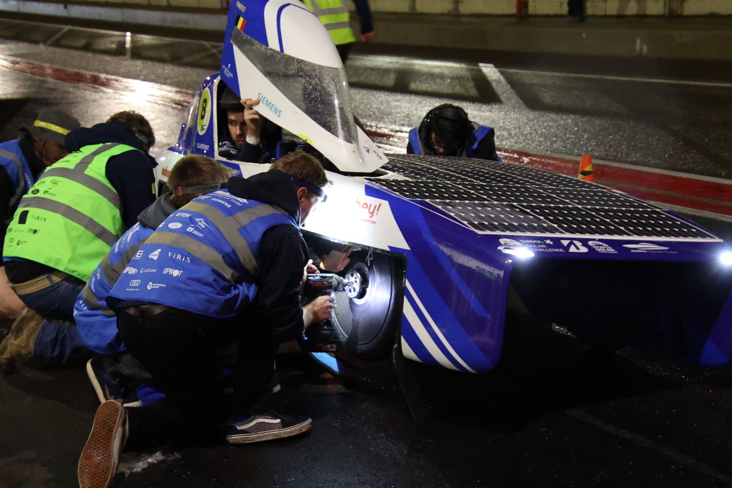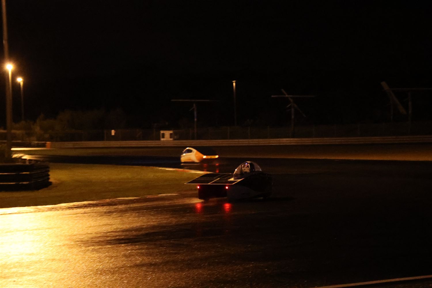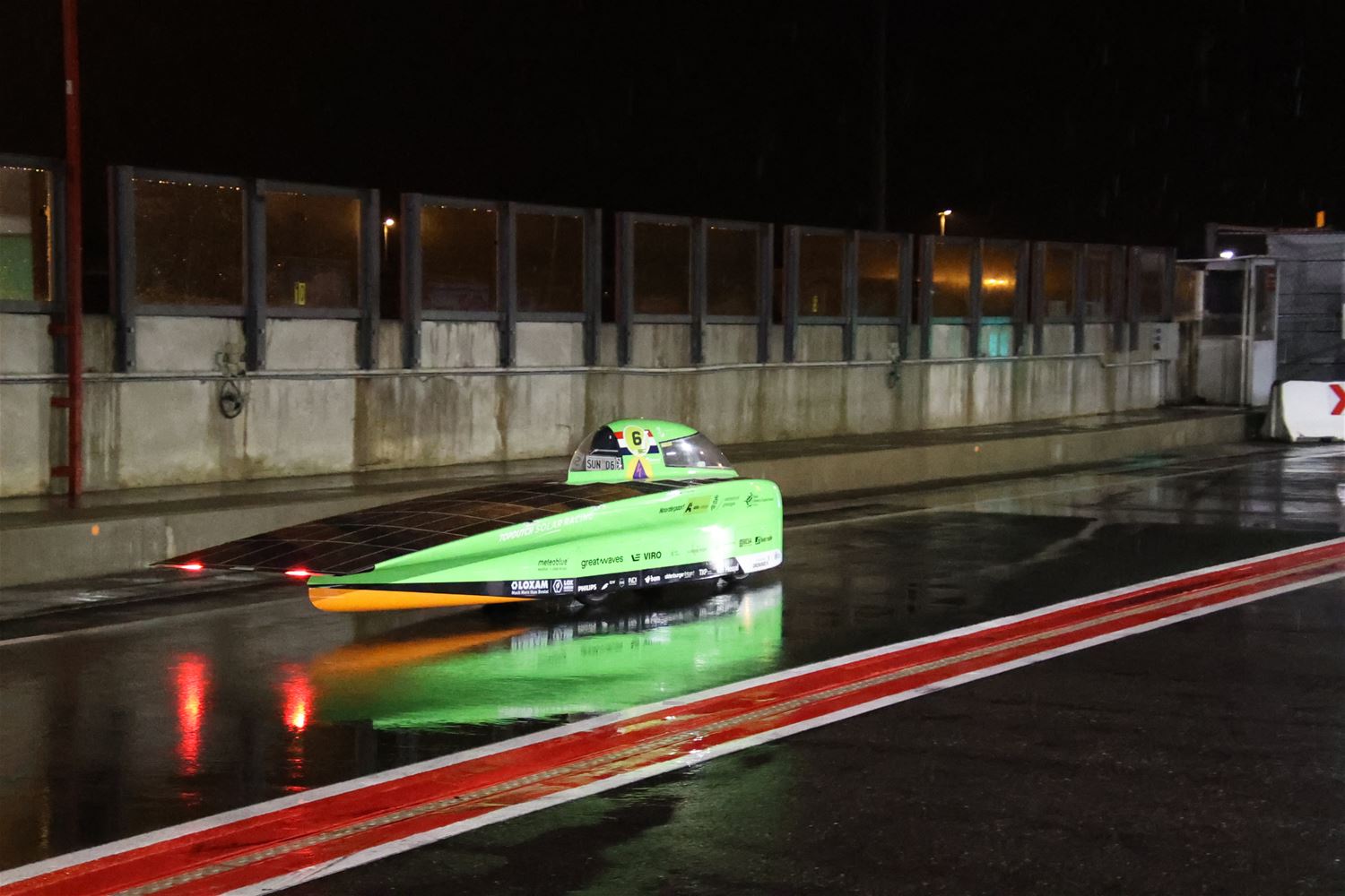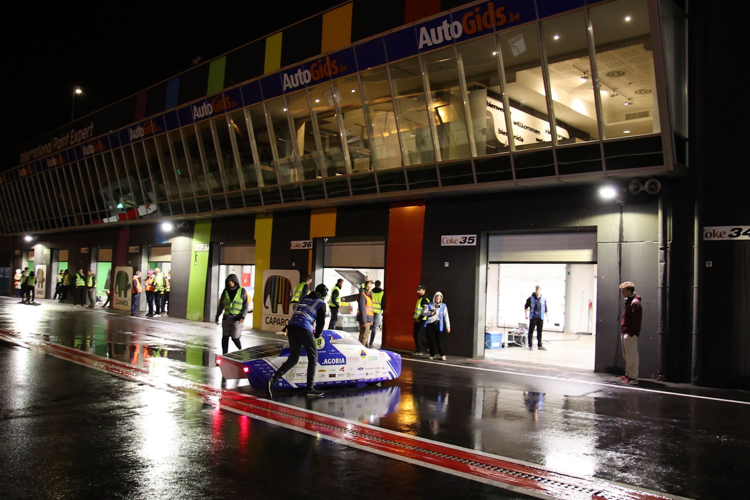 In vaak kletsnatte omstandigheden verloopt de zonnerace zaterdagavond verder op Circuit Zolder. Dat is vooral niet makkelijk bij de pitstops wanneer bijvoorbeeld bandenwissels gedaan worden of andere ingrepen. De teams proberen er ondertussen het beste van te maken en proberen in een beurtrol wat te rusten of te slapen, gelukkig maken de bolides geen lawaai zodat ze daar alvast geen last van hebben. Ondertussen heeft om half twaalf Solar Twente zijn voorsprong verder uitgebouwd, het telt nu 131 rondes, vier meer dan de tweede BoSolarCar, derde is Sonnewagen Aachen met 122 rondes. De Belgische Agoriabolide is ondertussen teruggevallen tot een vijfde plaats op 12 rondes. 75238