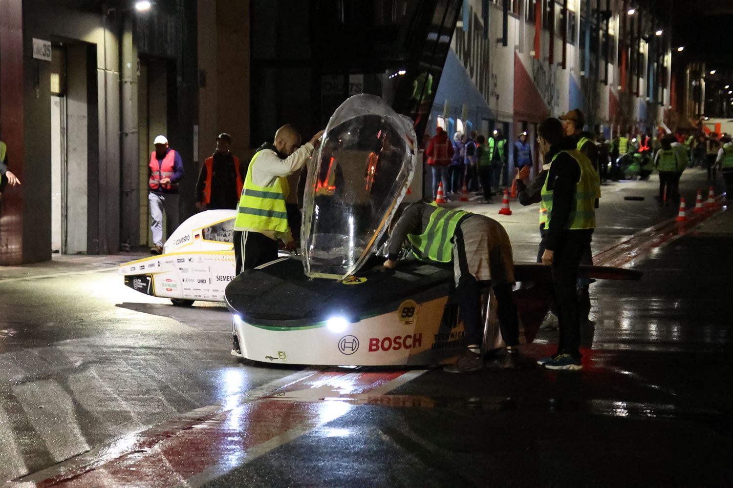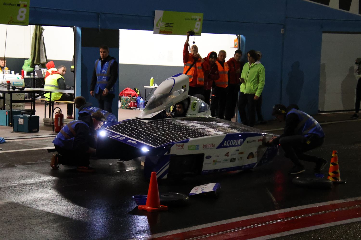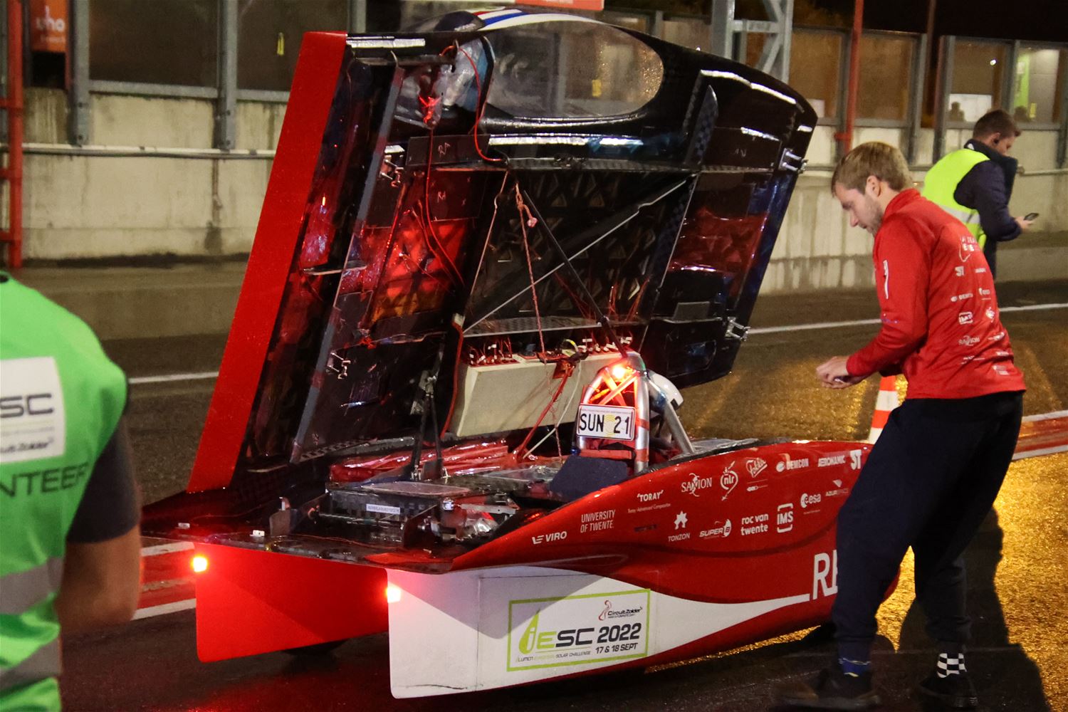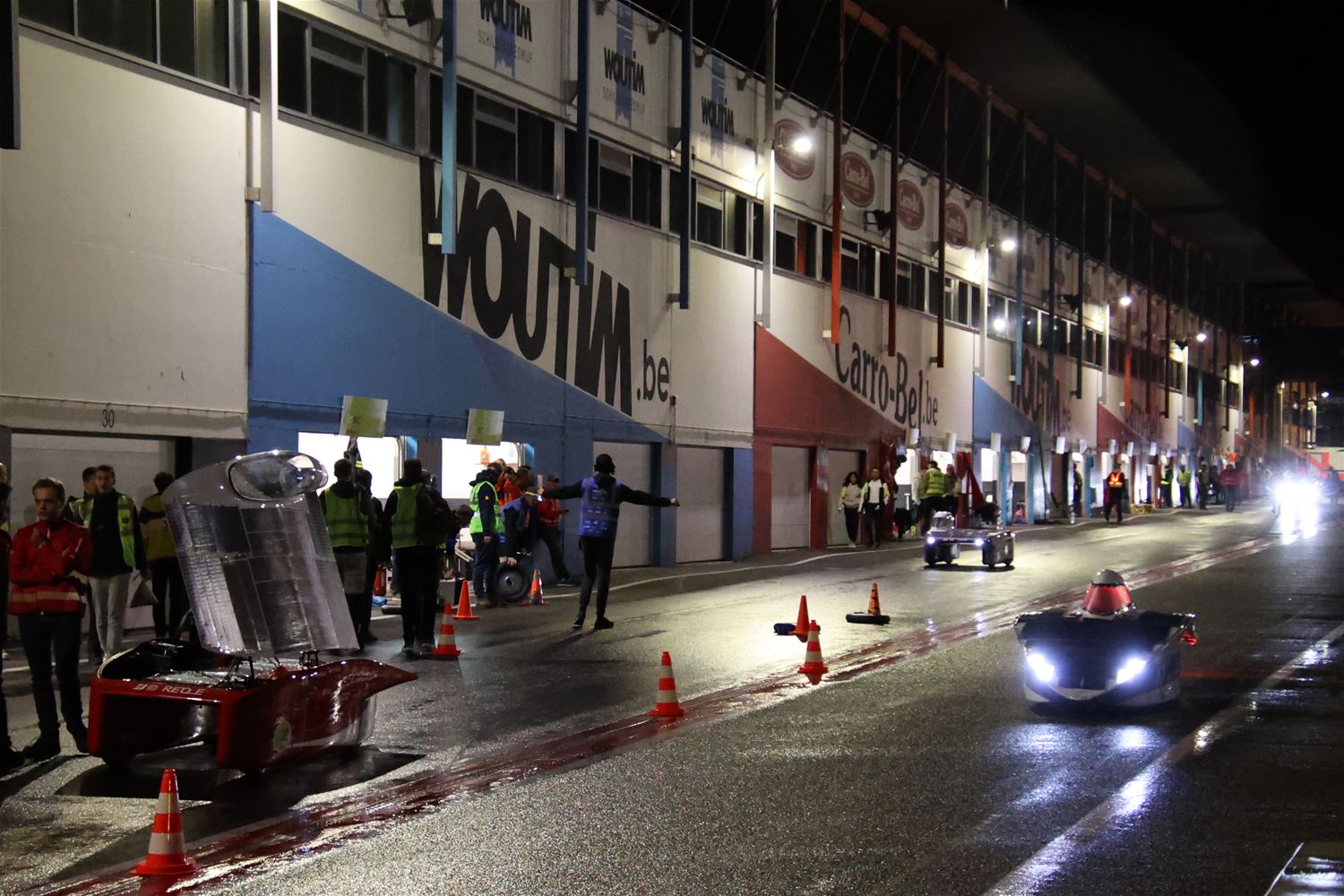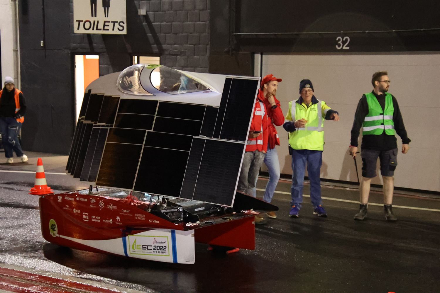In vaak kletsnatte omstandigheden verloopt de zonnerace zaterdagavond verder op Circuit Zolder. Dat is vooral niet makkelijk bij de pitstops wanneer bijvoorbeeld bandenwissels gedaan worden of andere ingrepen. De teams proberen er ondertussen het beste van te maken en proberen in een beurtrol wat te rusten of te slapen, gelukkig maken de bolides geen lawaai zodat ze daar alvast geen last van hebben. Ondertussen heeft om half twaalf Solar Twente zijn voorsprong verder uitgebouwd, het telt nu 131 rondes, vier meer dan de tweede BoSolarCar, derde is Sonnewagen Aachen met 122 rondes. De Belgische Agoriabolide is ondertussen teruggevallen tot een vijfde plaats op 12 rondes. 75238