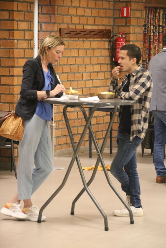 Vanavond had de eerste 'einde werken viering' plaats die het gemeentebestuur op verschillende plaatsen zal organiseren. Daarbij wordt niet alleen de afronding van lange ingrijpende weg- en andere infrastructuurwerken gevierd, maar worden de buurtbewoners bedankt voor hun geduld en begrip, want vaak gaat dat met onvermijdelijke hinder gepaard. Vanavond waren in de Harmoniezaal in Zolder de bewoners van de Dekenstraat, Dorpsstraat, Het Bergske en de Zolikkenstraat geïnviteerd. Met een 40-tal aanwezigen - inclusief gemeenteraadsleden - bleef de opkomst beperkt. Degenen die gekomen waren, hadden het zich niet beklaagd, ze kregen niet alleen drankjes aangeboden maar mochten ook aan een frituur passeren. (foto's Tony Sempels)80963