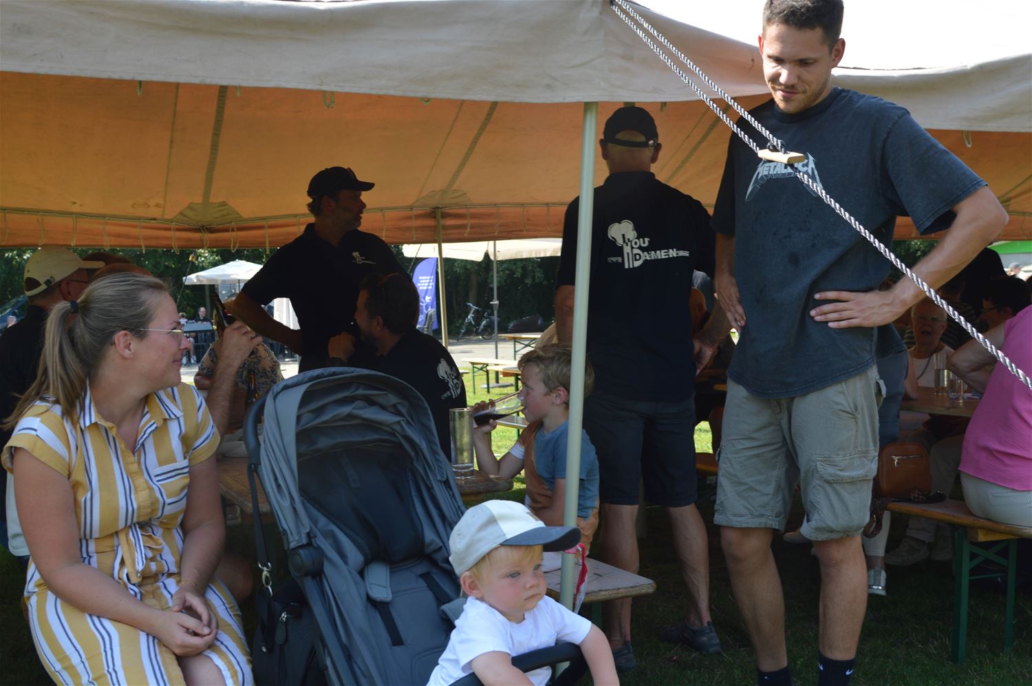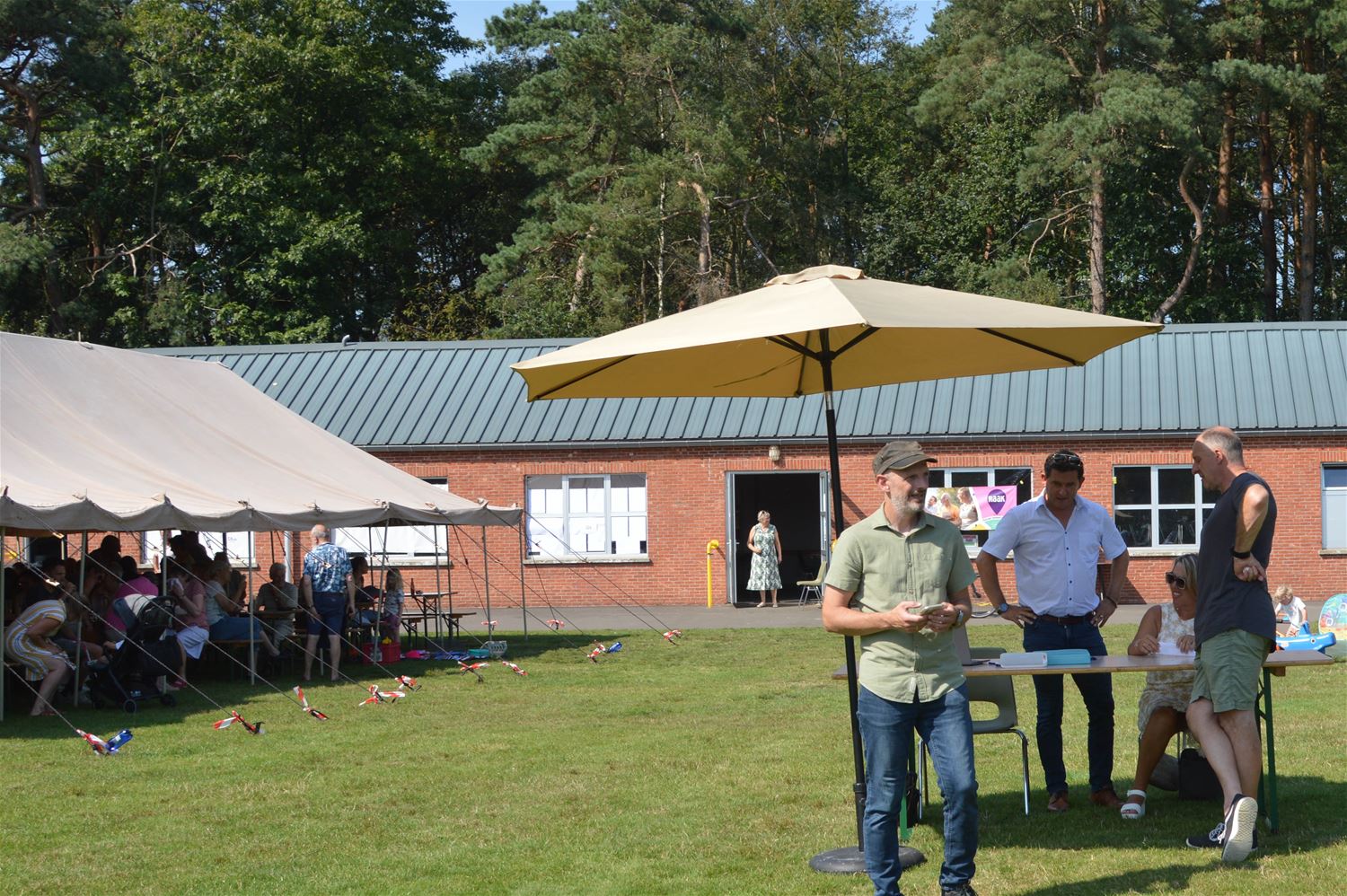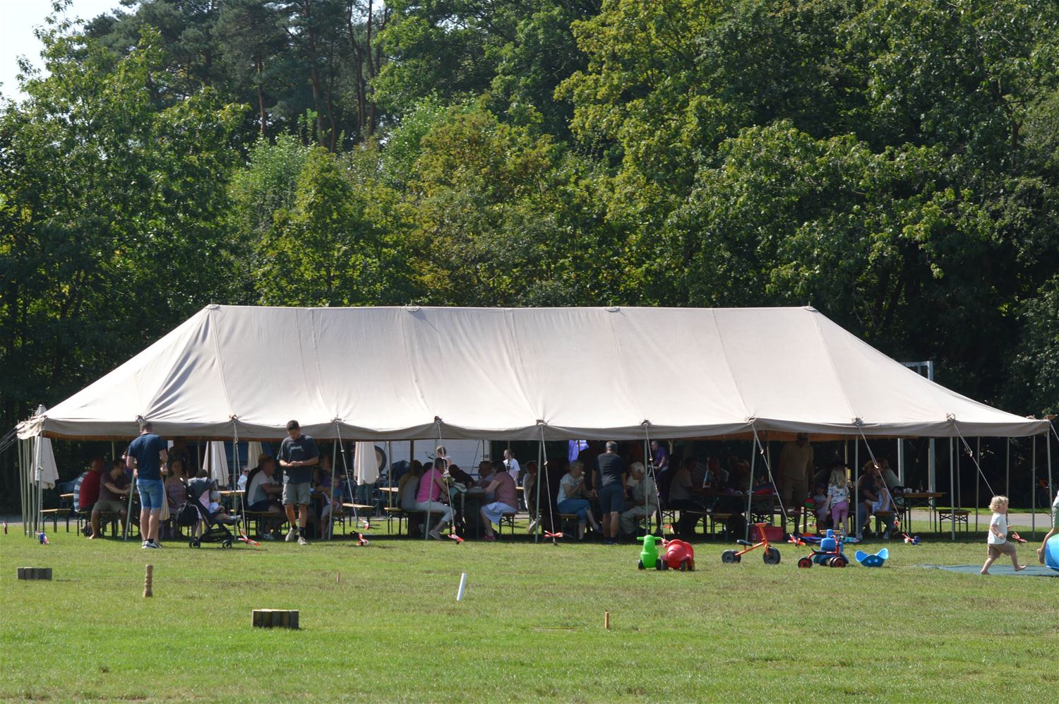 Berkenbos Leeft is vandaag uitgegroeid tot een echt zomerfeest. Wat wil je met dit weer en met een buitenprogramma waar jong en oud zich kon in vinden. Zo was er kinderanimatie, bijvoorbeeld een mooi springkasteel. En voor de volwassenen was er het razend populaire viking kubb tornooi. De Koninklijke Harmonie De Heidegalm en het jeugdorkest trakteerden de aanwezigen op een fel gesmaakt concert. Van smaak gesproken, eten en drank gingen vlot binnen. Berkenbos leefde volop vandaag. (foto's David Amgad)82878