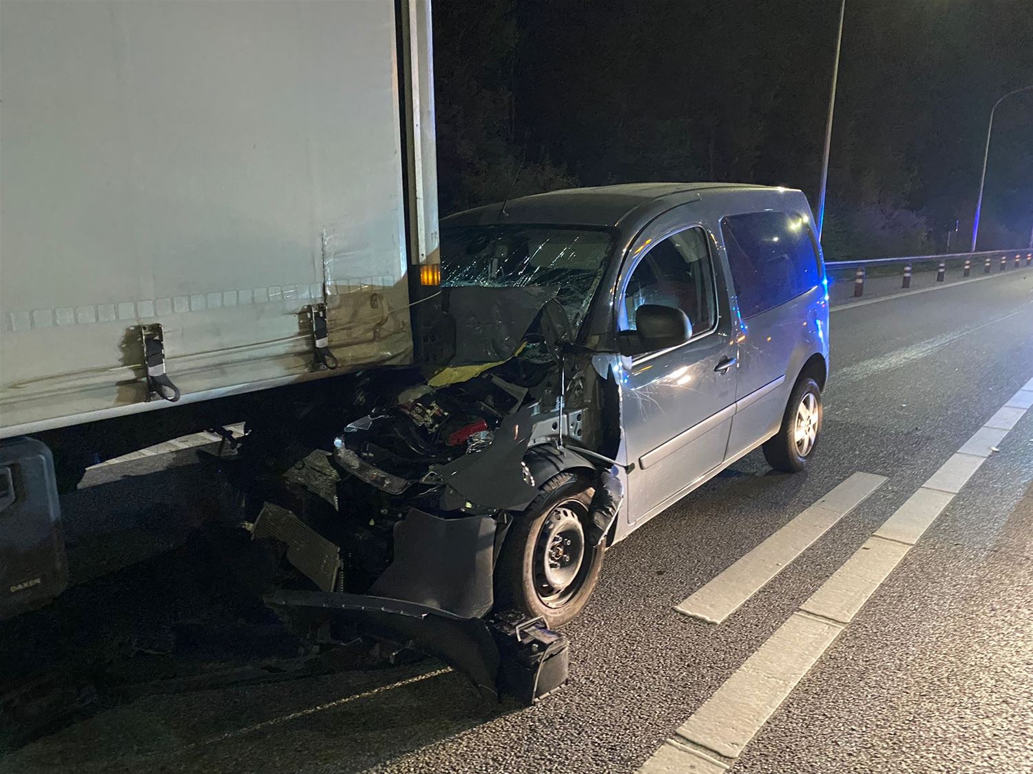 Bestelwagen knalt achterop vrachtwagen