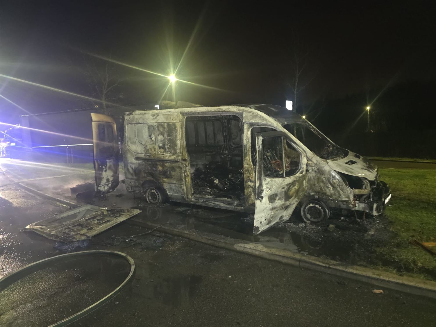 Op de parking langs de E314 in Zolder heeft kort voor 2 uur vannacht een kleine bestelwagen vuur gevat. In de bestelwagen lag nog een lading vuurwerk en dat zorgde voor een echte vuurzee. De brandweer kon het uiteindelijk wel doven, maar de bestelwagen was helemaal uitgebrand. 87372