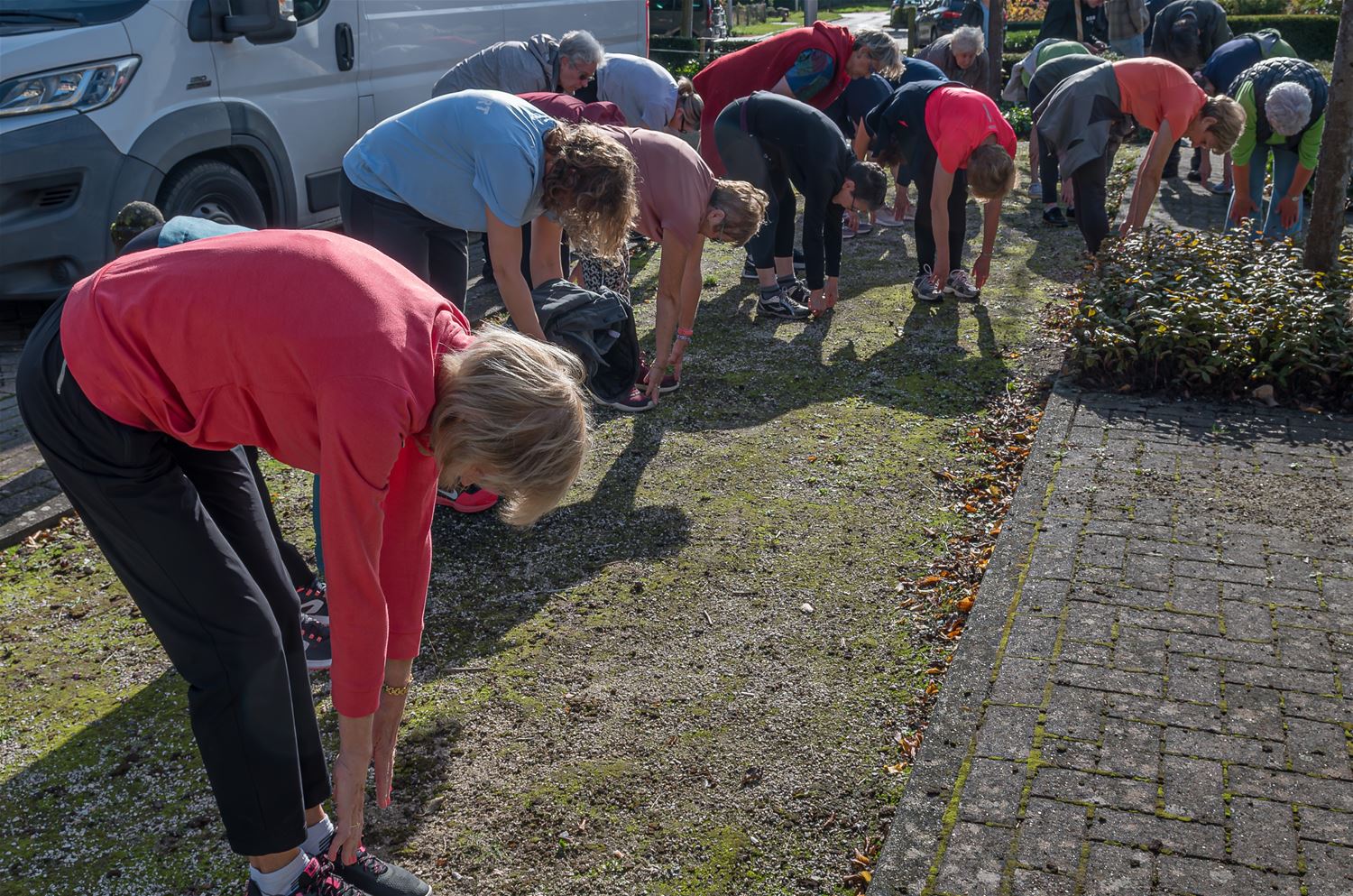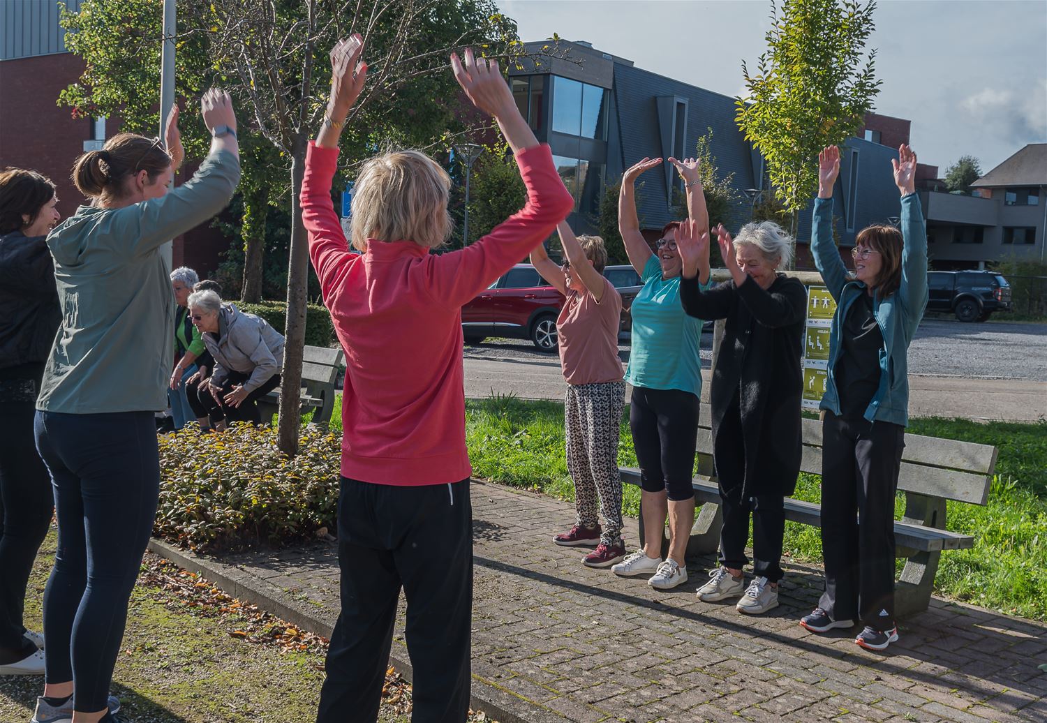 'Een gezonde geest in een gezond lichaam’, onder dat motto heeft Team Sport van de gemeente vandaag een beweegroute gelanceerd in Heusden-centrum. Een beweegroute is een wandeling met eenvoudige oefeningen die gebruik maken van bestaande elementen in het straatbeeld. De Beweegroute en alle oefeningen onderweg werden uitgetest door een 30-tal dames van Sport Overdag. Die hadden ook nog de zon mee wat de sfeer alleen maar ten goede kwam. Overigens kan iedereen de Beweegroute proberen. Ze begint en eindigt aan sporthal Olympia en is aangeduid met groene bordjes. Over een afstand van ongeveer 1 km zijn 9 verschillende oefeningen voorzien. (foto's Roman Martyka)83266