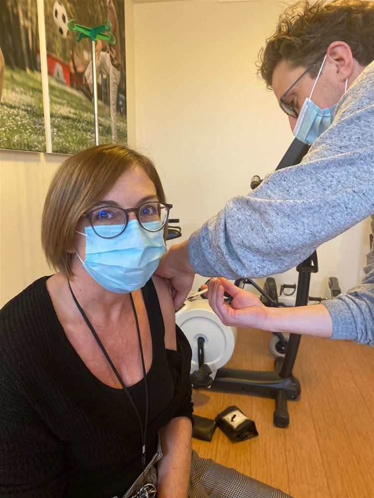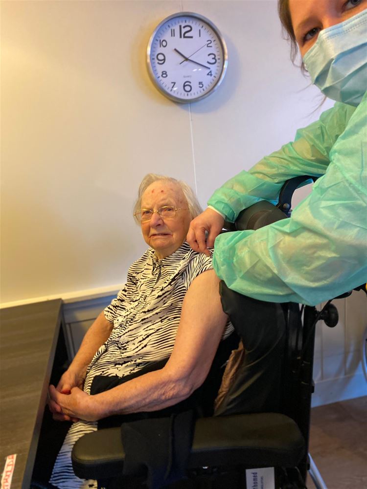 In Woonzorgcentrum Berckenbos worden vandaag de vaccins toegediend. De eerste bewoners die deze voormiddag aan de beurt kwamen, waren Gerard en Mathilde Deckers-Iliaens. Gerard is de oudste bewoner, hij wordt op 12 oktober 100 jaar. Samen met Mathilde mocht hij het afgelopen jaar hun 75ste huwelijksverjaardag vieren. Straks zijn ook personeelsleden en geregistreerde vrijwilligers aan de beurt. UPDATE Ondertussen is ook het personeel gevaccineerd. Over drie weken wordt de vervolgprik toegediend. 67343