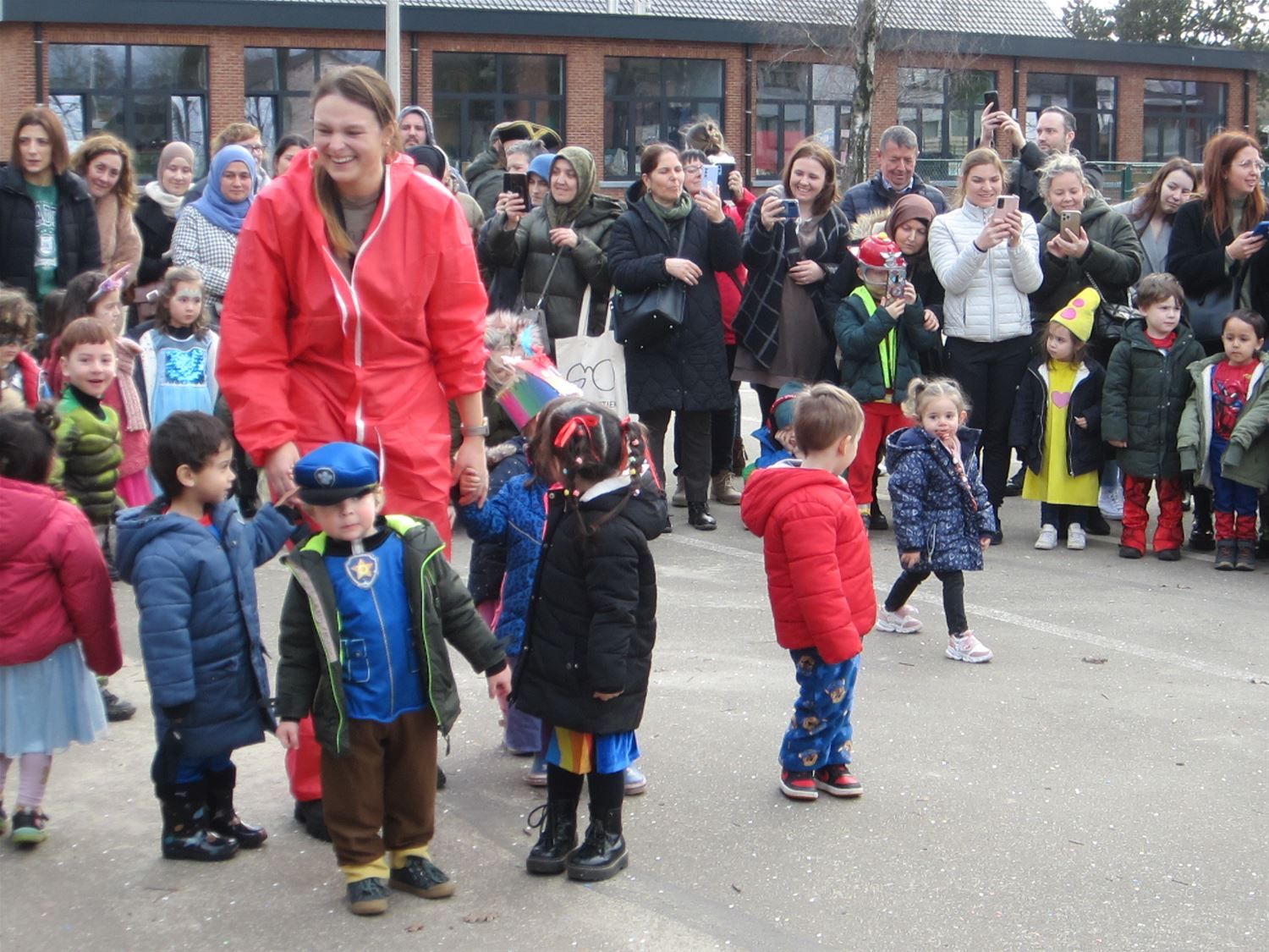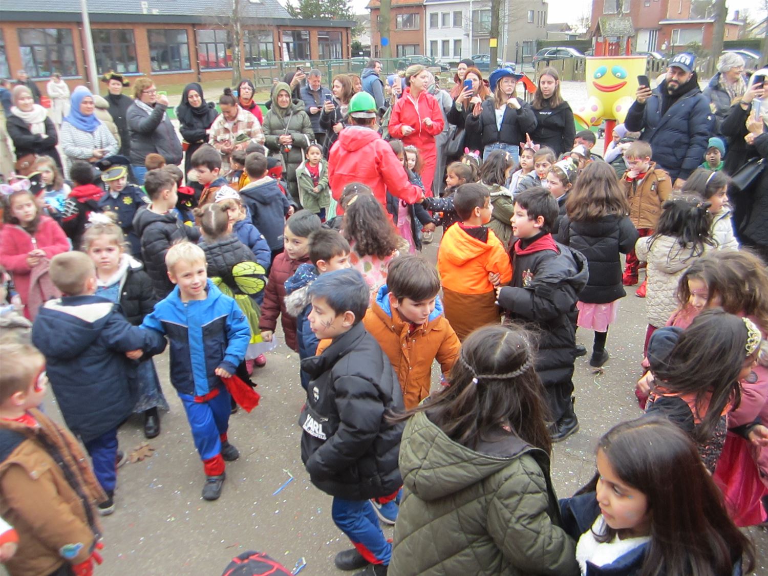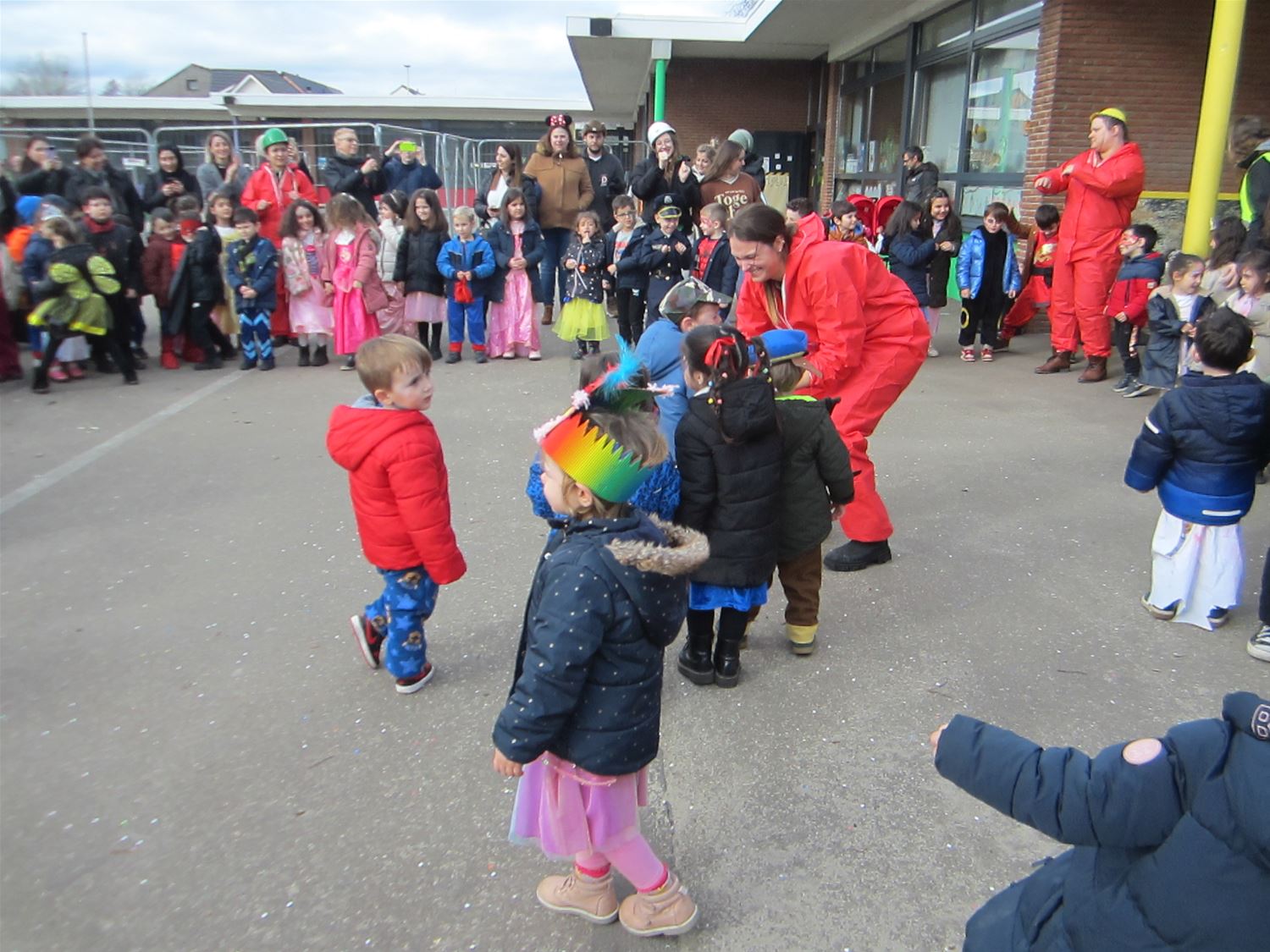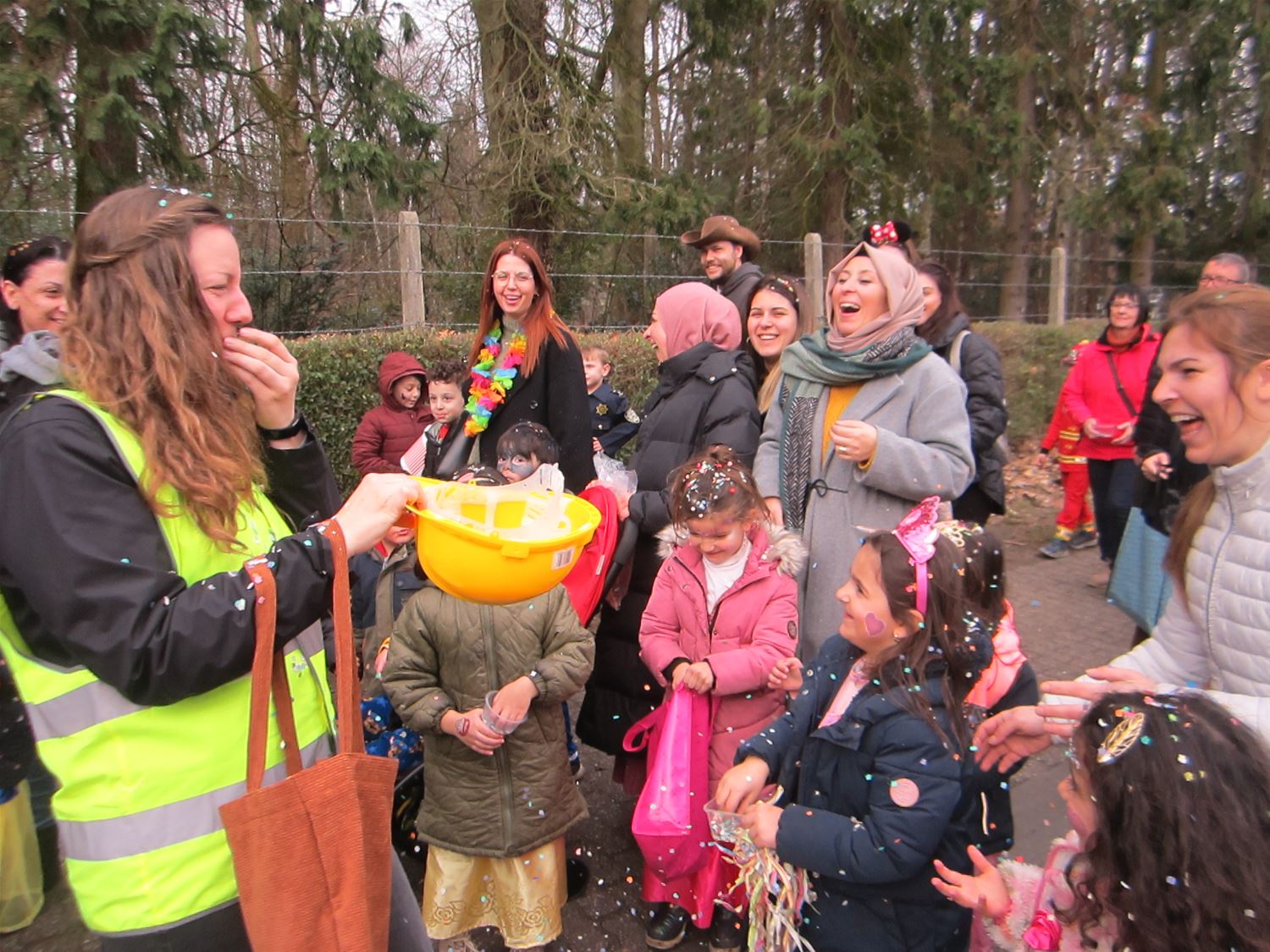 Aan Pagadder zijn de renovatiewerken nog aan de gang, dus hadden de kleuterleidsters het thema van het carnaval snel gekozen: iedereen ging als bouwvakker mee in de stoet door de straten van Berkenbos. De kinderen kregen daarbij het gezelschap van een aatanl ouders en grootouders. Die moesten dan wel een confettiregen trotseren. Op school ging het feest gewoon verdere met dansjes en lekkernij. Nu volgt een weekje bouwvakantie ... om de echte bouwvakkers volop door te laten werken aan de nieuwe lokalen.76735