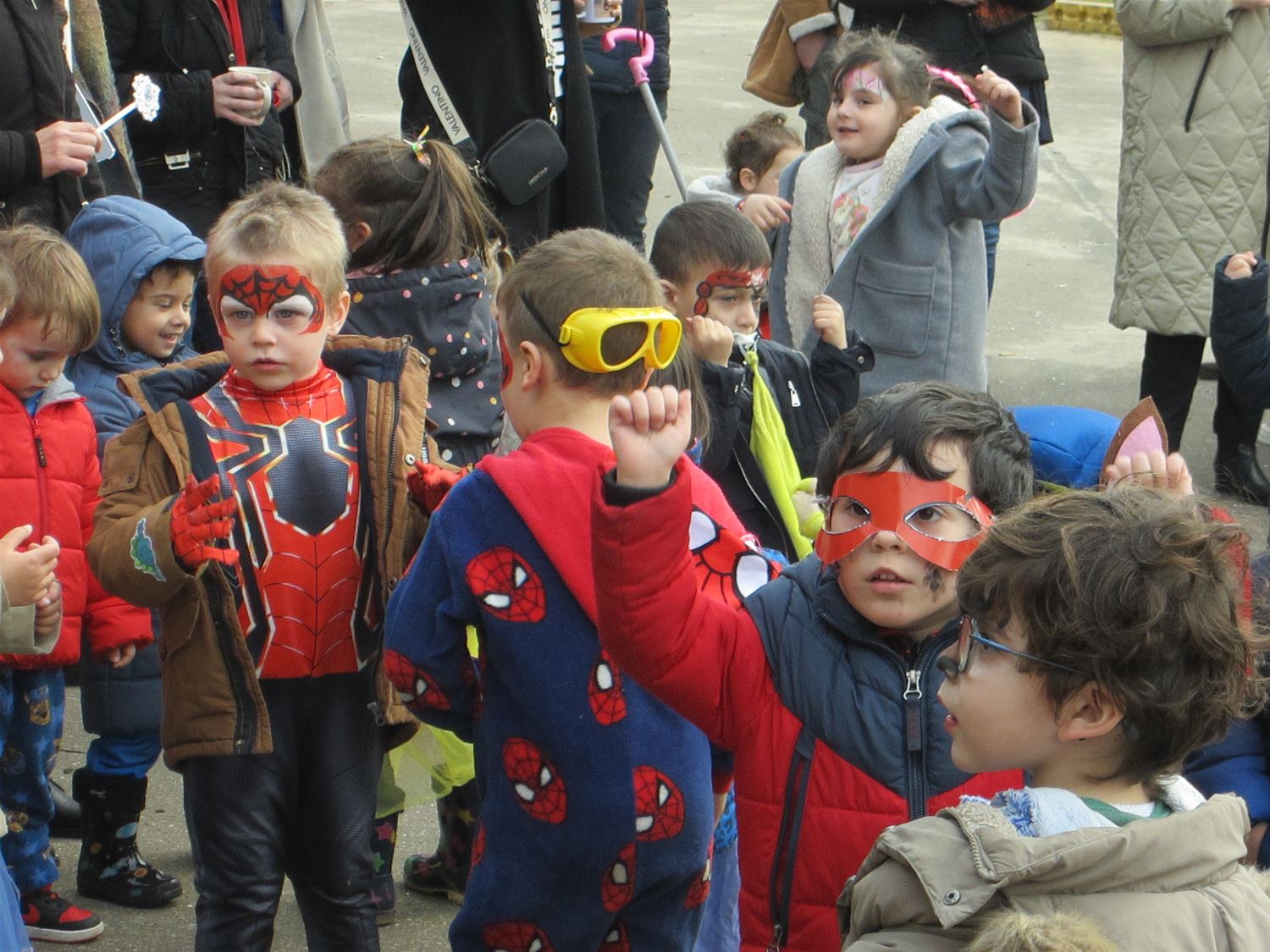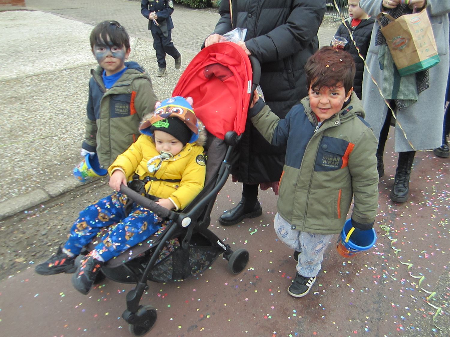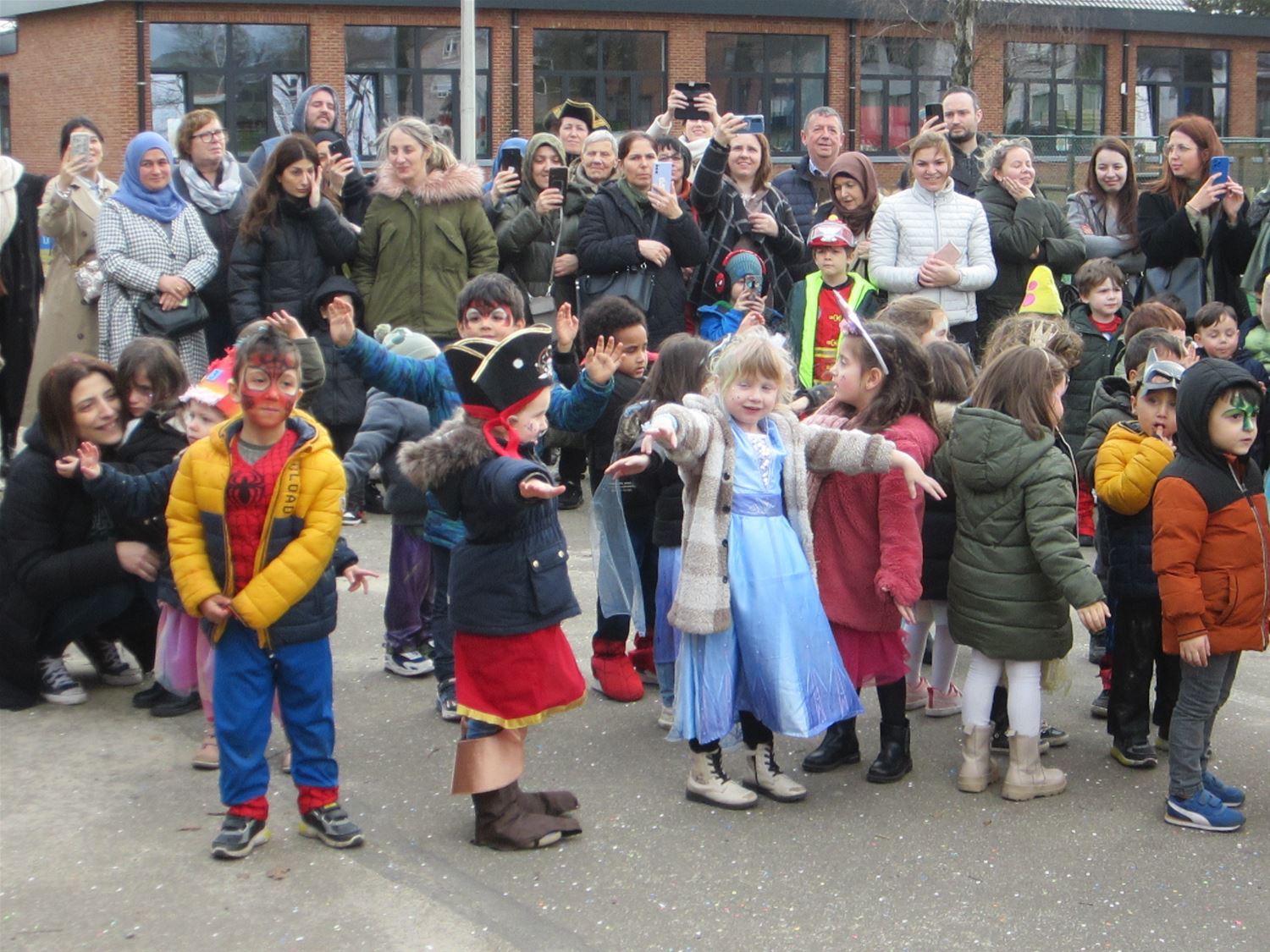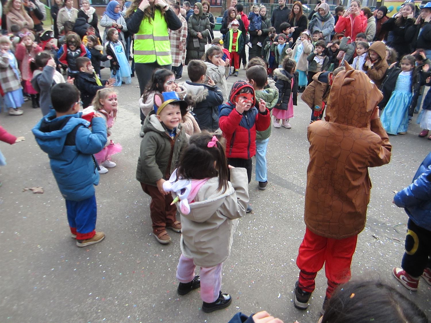 Aan Pagadder zijn de renovatiewerken nog aan de gang, dus hadden de kleuterleidsters het thema van het carnaval snel gekozen: iedereen ging als bouwvakker mee in de stoet door de straten van Berkenbos. De kinderen kregen daarbij het gezelschap van een aatanl ouders en grootouders. Die moesten dan wel een confettiregen trotseren. Op school ging het feest gewoon verdere met dansjes en lekkernij. Nu volgt een weekje bouwvakantie ... om de echte bouwvakkers volop door te laten werken aan de nieuwe lokalen.76735