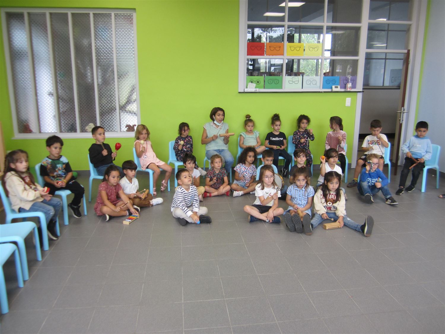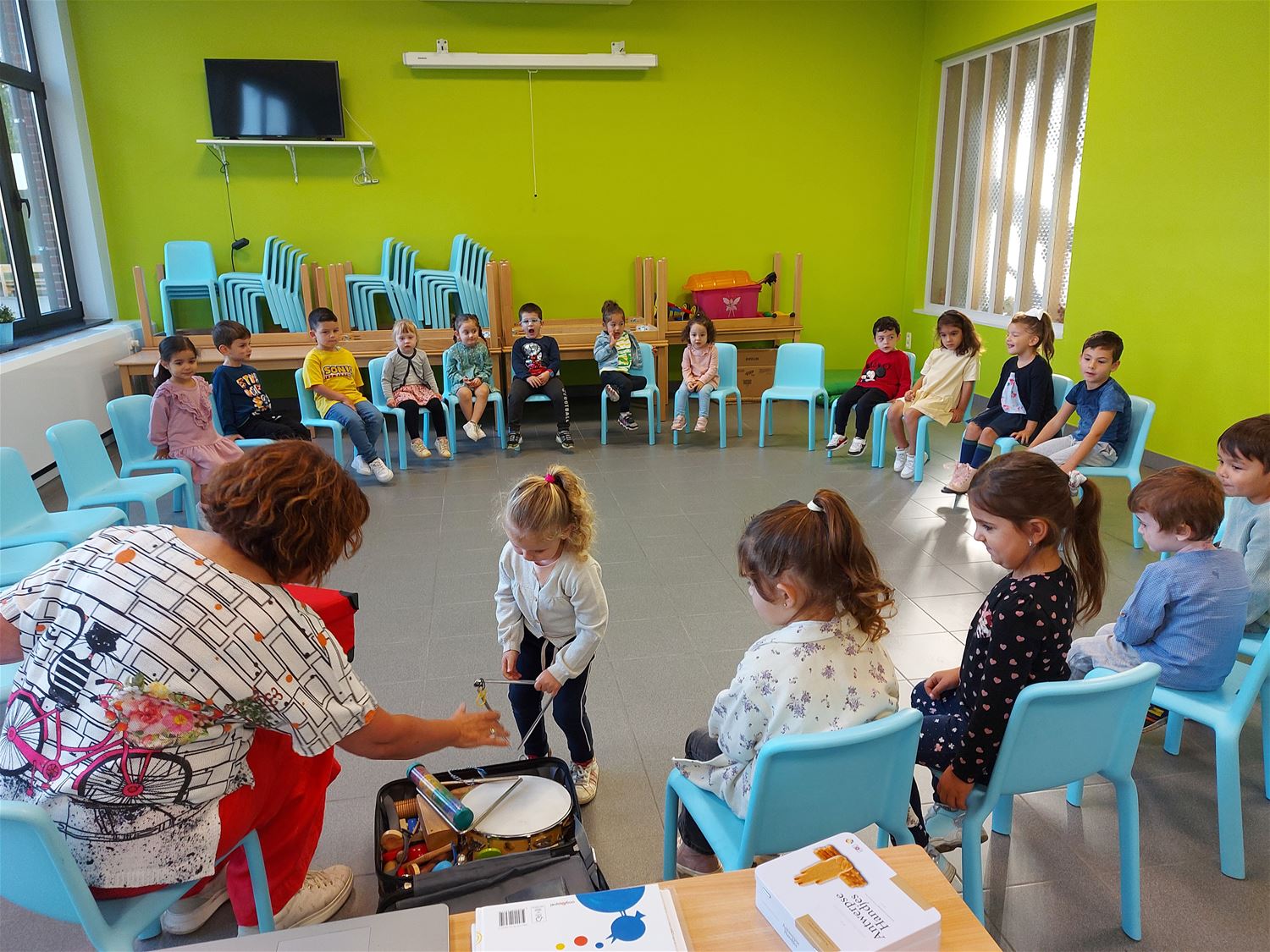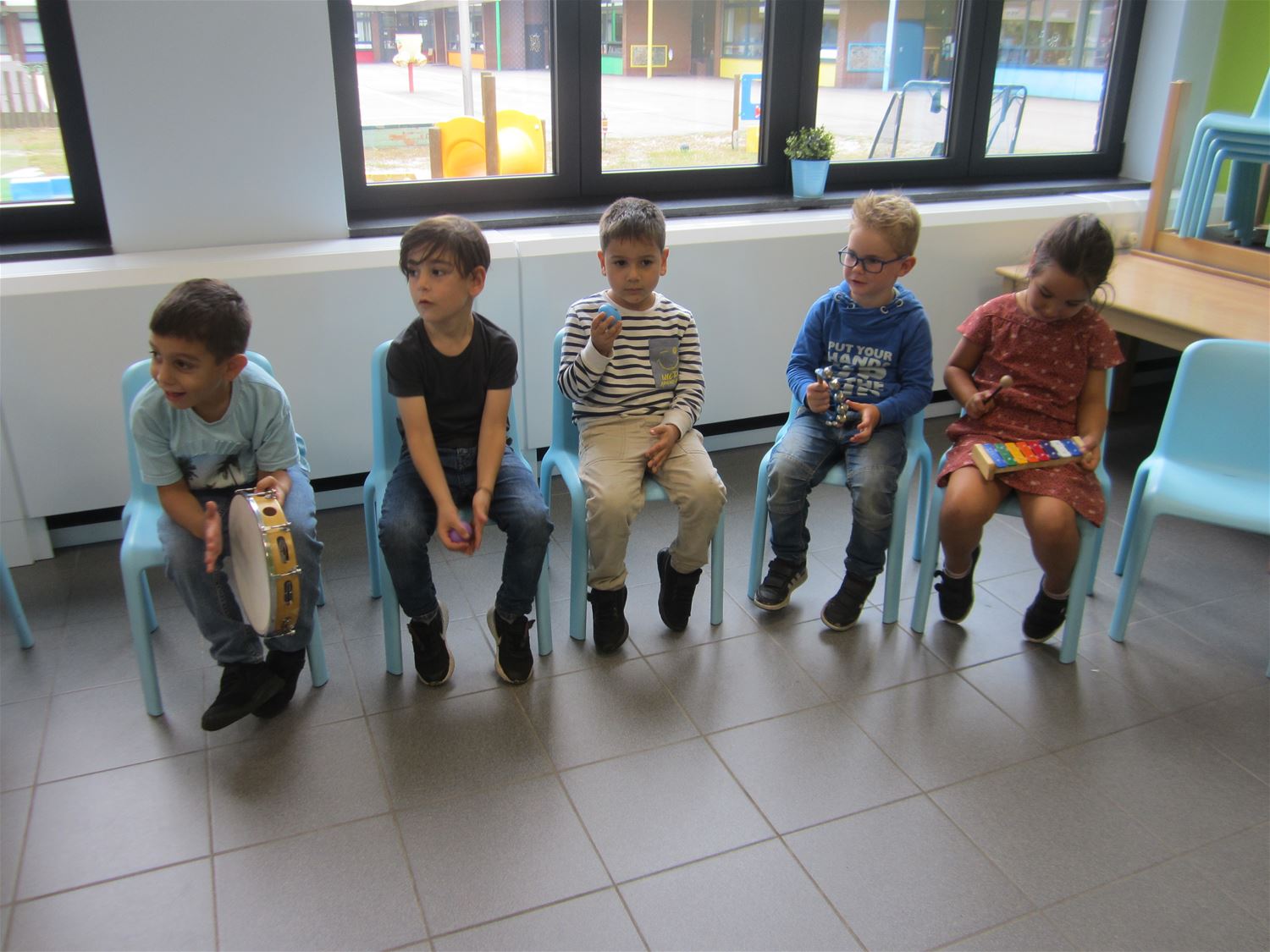 In VKS Pagadder stond een hele maand in het teken van muziek. Op allerlei manieren konden kleuters hun muzikale talenten uitoefenen zowel in als buiten de klas. Zo was er op de speelplaats een klankenbos en ook de tuinkabouters deden mee. Alle klassen kregen een workshop waarin ze konden kennismaken met de verschillende instrumenten . De kleuters ontdekten ook andere materialen waar geluid uit kwam. Deze week kwam ook clown Trijn op bezoek om te kijken en te luisteren wat ze allemaal geleerd hadden. Zelf bakte de clown er evenwel niet veel van, misschien wordt dat beter in oktober, want dan gaan ze op zoek naar het rekentalent van iedereen.70942