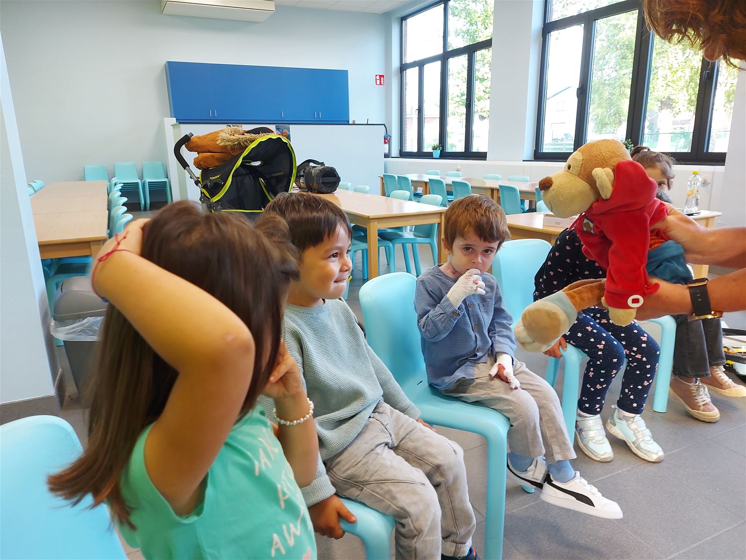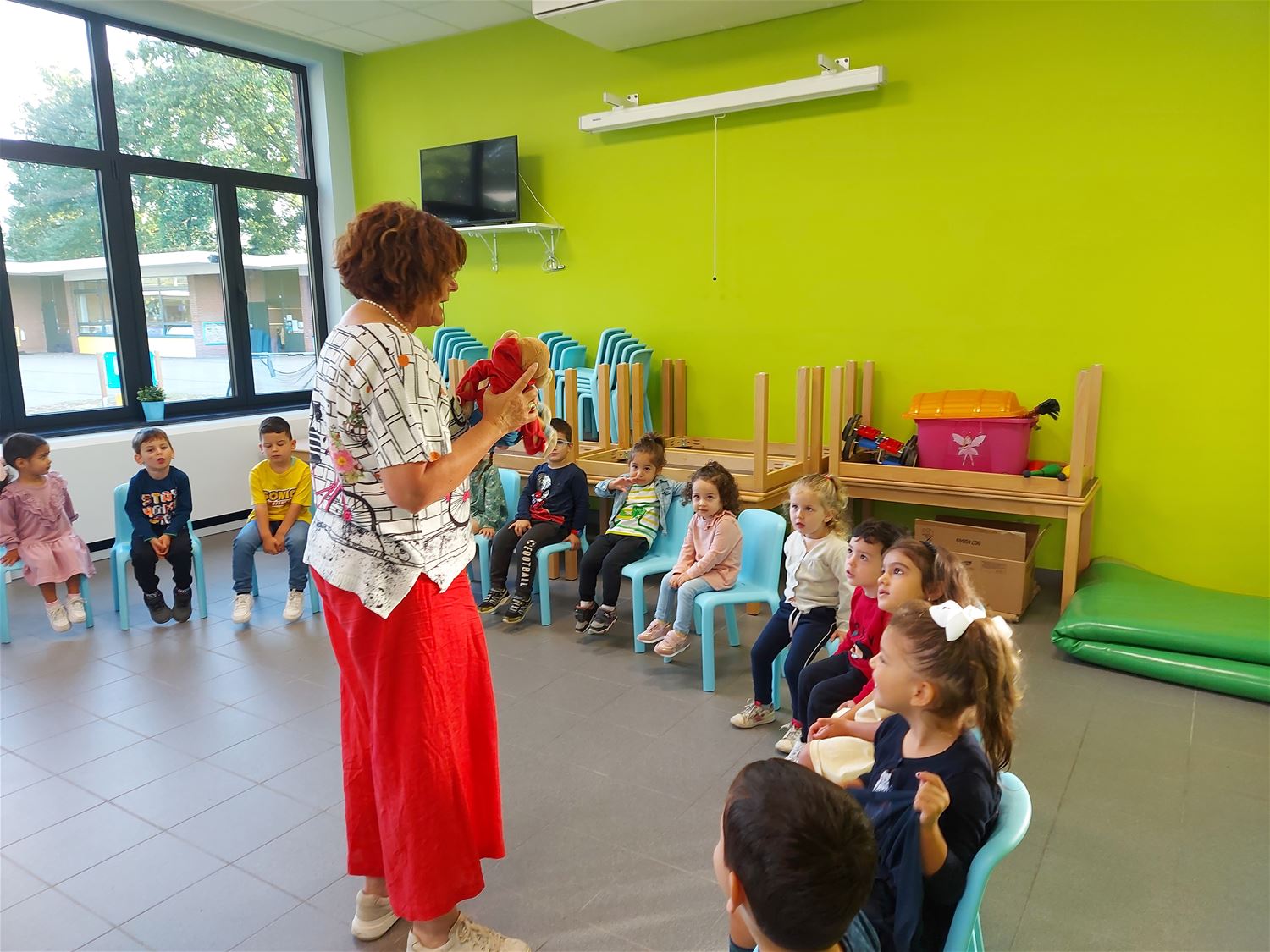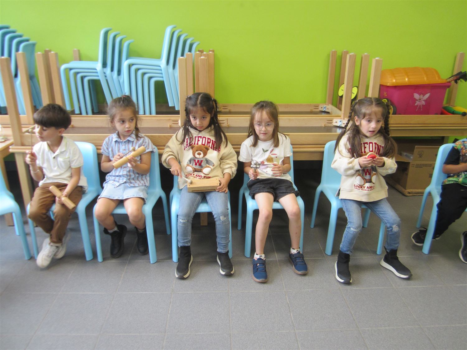 In VKS Pagadder stond een hele maand in het teken van muziek. Op allerlei manieren konden kleuters hun muzikale talenten uitoefenen zowel in als buiten de klas. Zo was er op de speelplaats een klankenbos en ook de tuinkabouters deden mee. Alle klassen kregen een workshop waarin ze konden kennismaken met de verschillende instrumenten . De kleuters ontdekten ook andere materialen waar geluid uit kwam. Deze week kwam ook clown Trijn op bezoek om te kijken en te luisteren wat ze allemaal geleerd hadden. Zelf bakte de clown er evenwel niet veel van, misschien wordt dat beter in oktober, want dan gaan ze op zoek naar het rekentalent van iedereen.70942