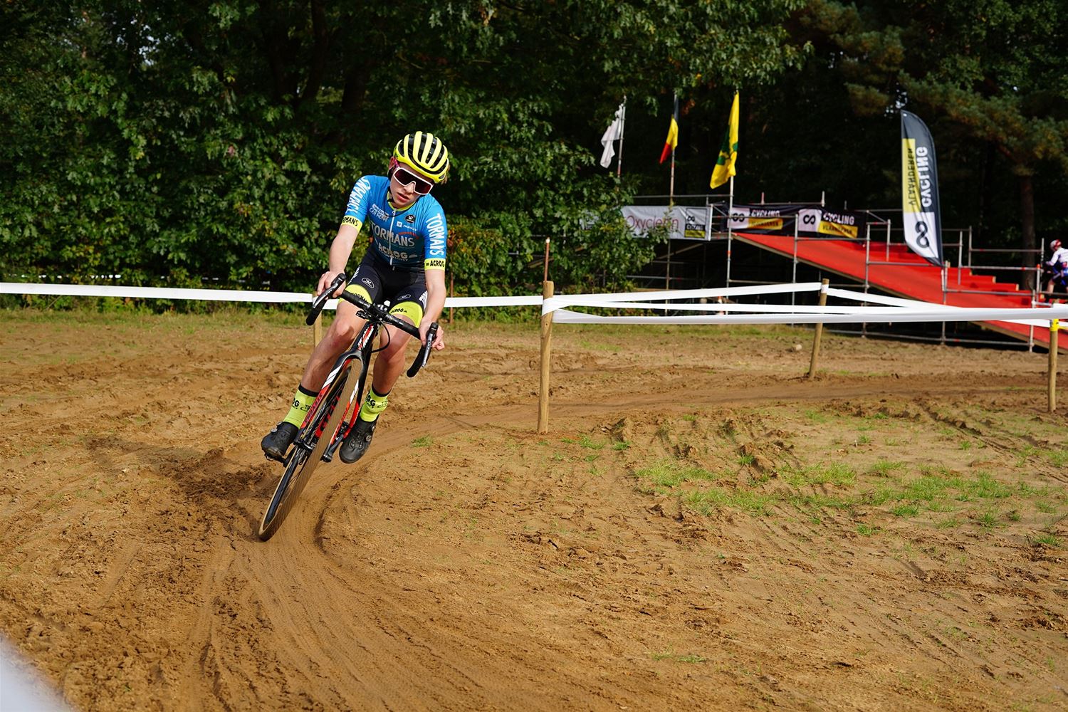 Het was opnieuw een drukke dag aan de manège in Eversel, waar heel wat veldrijders aan de start kwamen van de koersen van vandaag. Bij de elite 3 won Kristof Cop, Kenny Geluykens won bij de masters A, Danny Sleeckx bij de masters B en Georges Hauterat bij de masters C en D. Bij de U23/elite 2 was Ingmar Uytdewilligen de snelste, Robbe Geudens was de snelste junior, Arthur Van Den Boer eindigde eerste bij de eerstejaars nieuwelingen, bij de tweedejaars was het Axel Van Broek die mocht juichen. De meisjes U17 zagen Fleur Van De Vyver winnen en bij de vrouwen elite en meisjes junioren ging Elodie Kuijper als eerste over de streep. Alles samen verschenen vandaag een kleine 200 renners aan de start. (foto's Stephan Volders)71020
