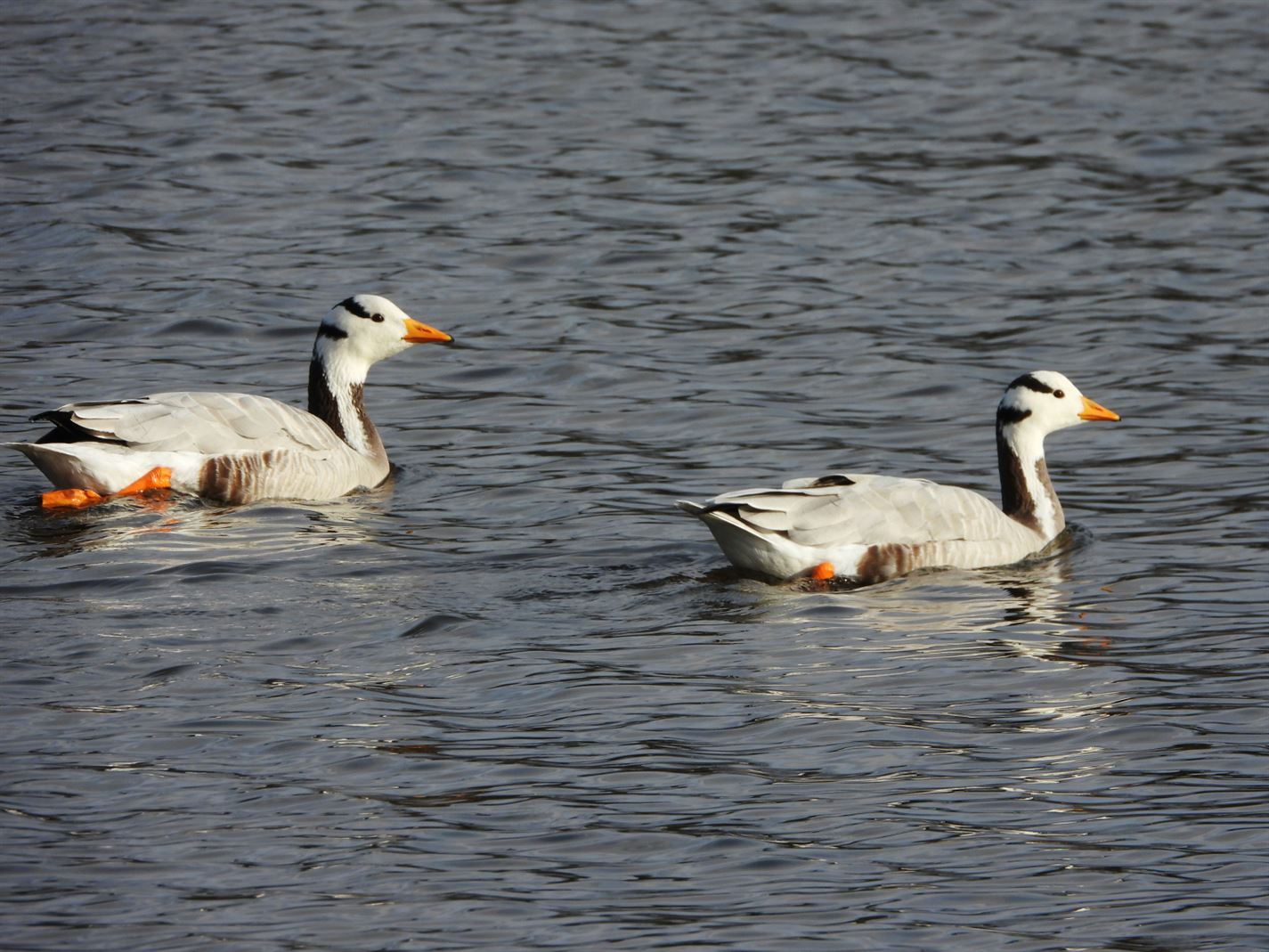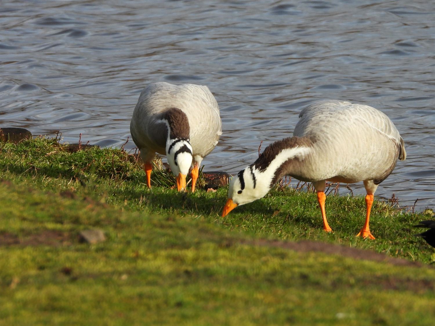 De vijver van domein Bovy kreeg vandaag het bezoek van enkele Indische ganzen. Ze voelden er zich blijkbaar goed thuis. (foto's Roger Convents)67388