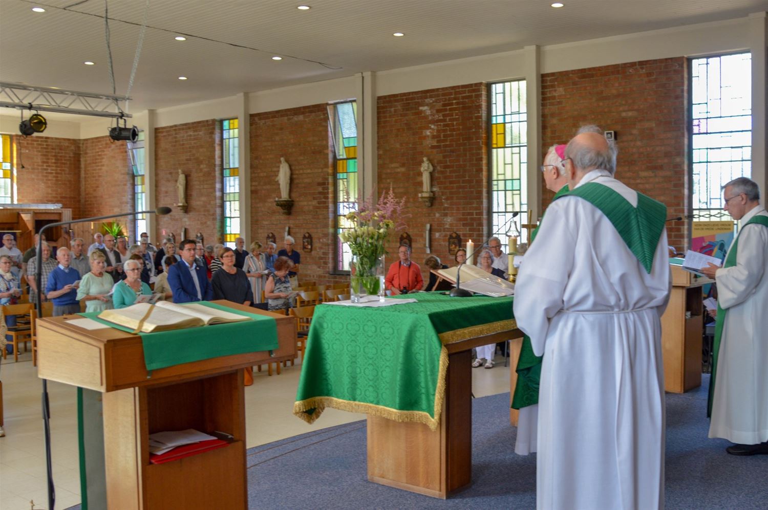 Bisschop draagt eucharistie op in kerk Lindeman