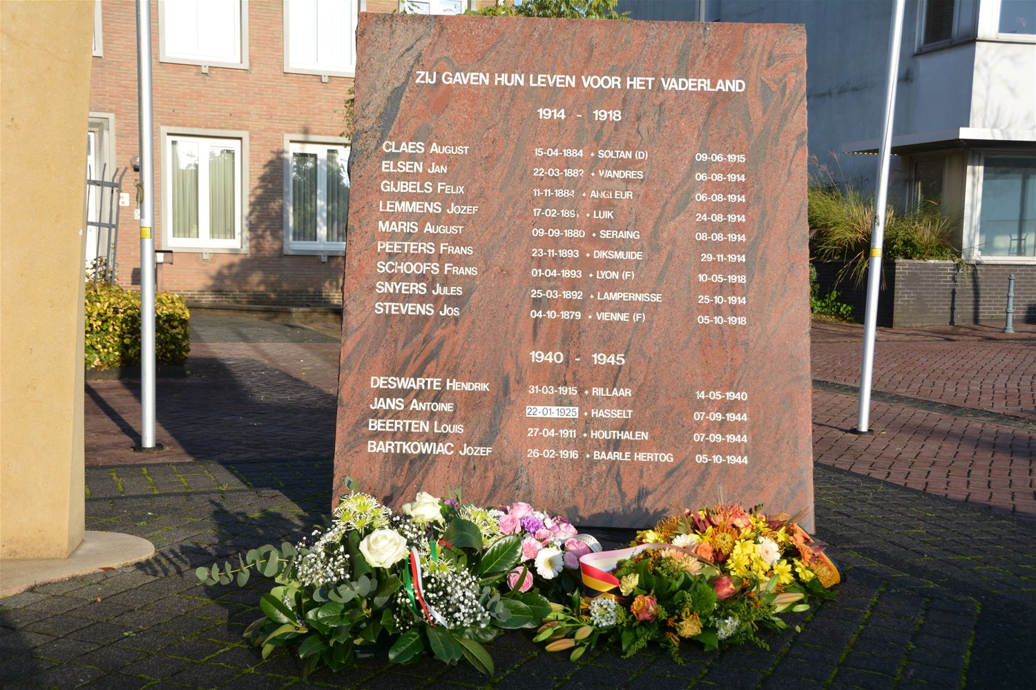 Aan het monument in Heusden had vanmorgen het eerste deel van de 11-novemberviering plaats. Die werd bijgewoond door een opvallend grote delegatie. Er werden bloemen neergelegd namens het gemeentebestuur, de Belgische en Italiaanse oudstrijdersverenigingen en de partnereenheid van het leger. Nadien verplaatste het gezelschap zich naar Zolder voor de eucharistieviering en de hoofdplechtigheid. 79095