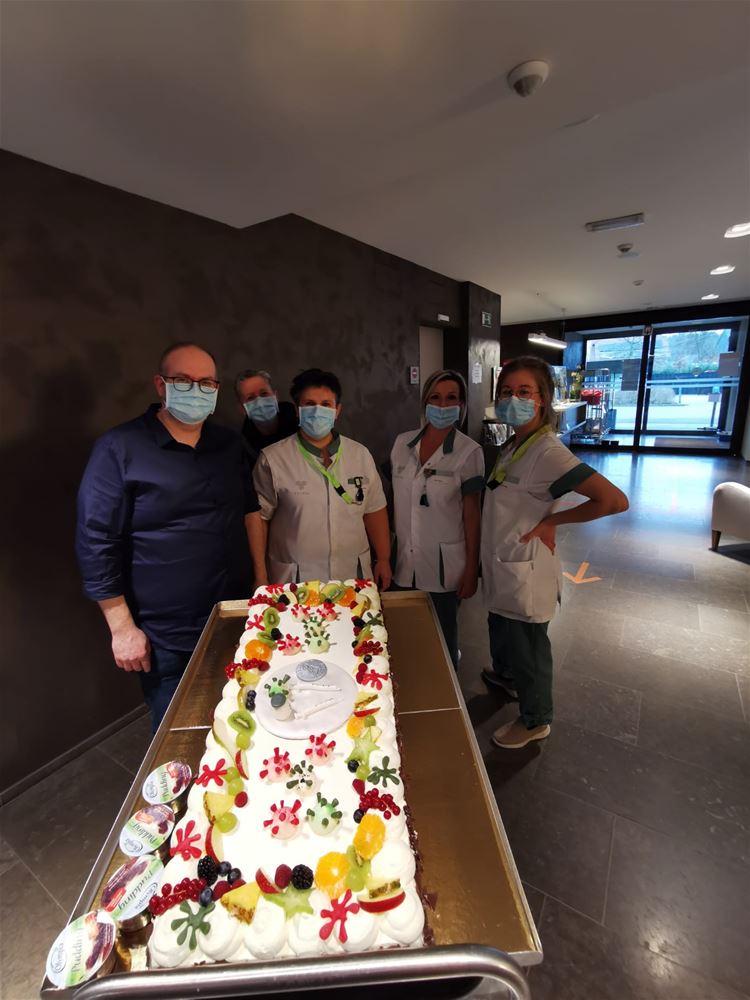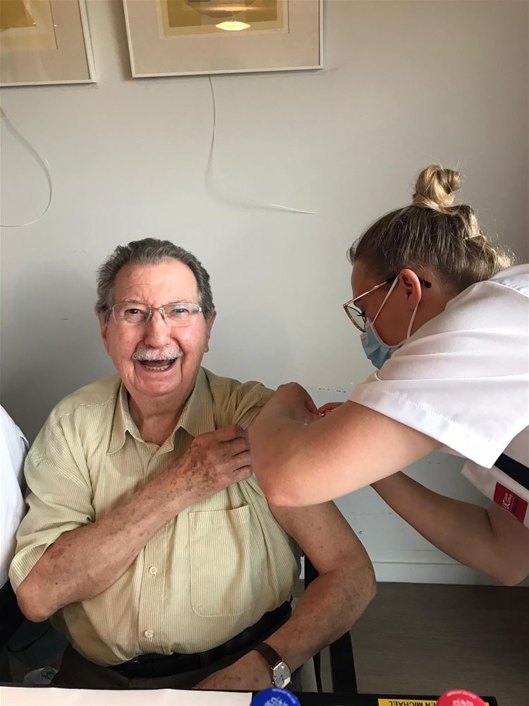Vandaag werd in residentie BoCasa een nieuwe mijlpaal bereikt. Alle bewoners en een heel aantal medewerkers kregen vandaag hun tweede vaccinatie tegen het corona-virus. Dat leidde tot een gevoel van opluchting. Het werd ook al een beetje gevierd, met een koffie en een gigantische COVID-taart.67523