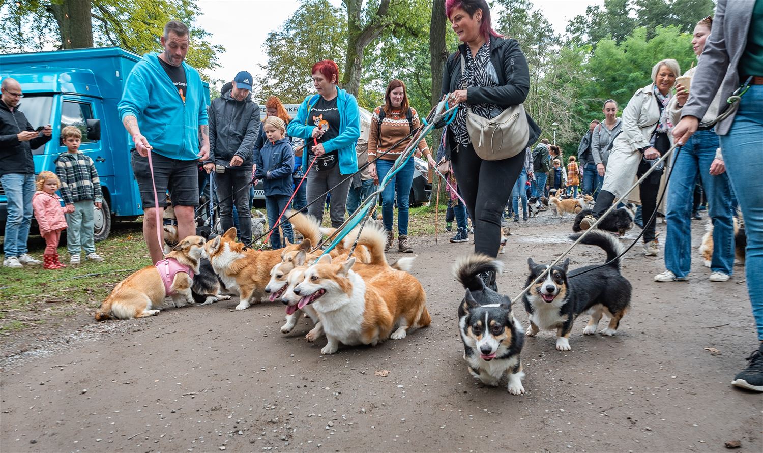 Ook niet-hondenkenners weten sinds de begrafenis van The Queen hoe een corgi eruitziet. En vandaag kon je die hondjes massaal bewonderen op Bovy waar ze verzamelden voor een 'tribute to the Queen'. De hondjes kregen lekkers aangeboden, waarna ze met hun baasje(s) een mooie natuurwandeling over de Bolderberg en langs de kluis konden maken om tenslotte met zijn allen te spelen op de hondenloslopweide. Op dat laatste reageerden ze verdeeld ... (foto's Ann Jordens)75321