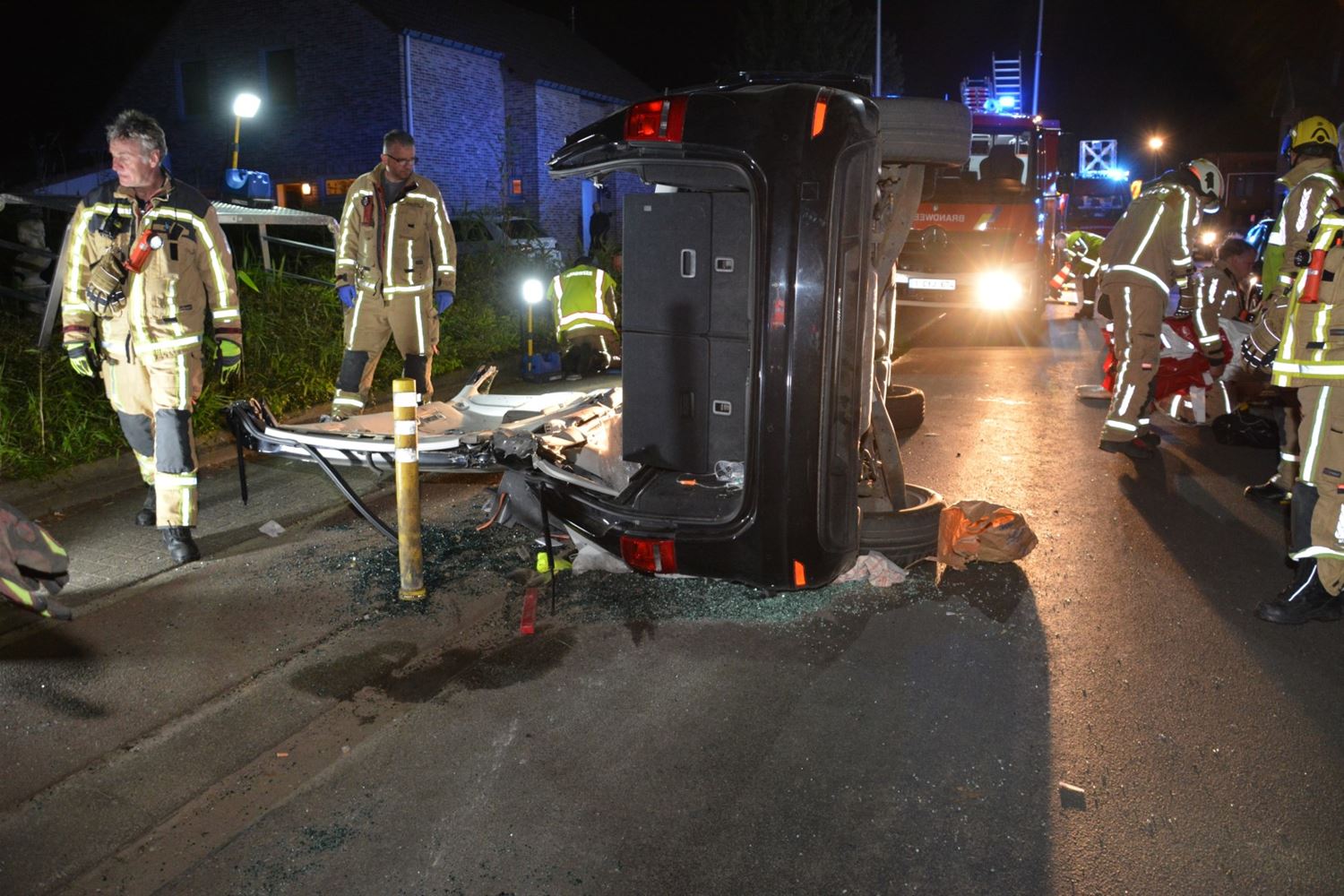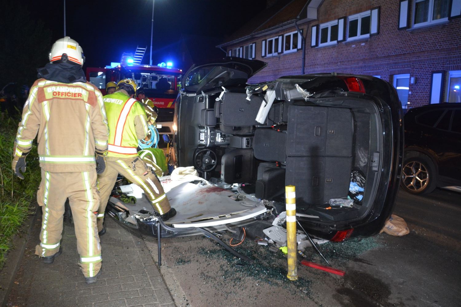 Brandweer bevrijdt 5 gewonden uit gekantelde auto