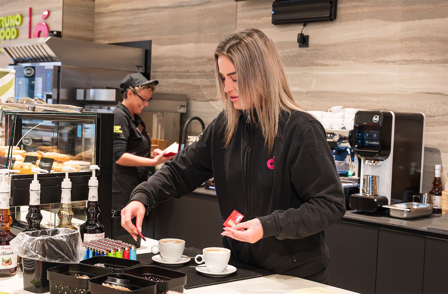 “We zijn al enkele jaren bezig met een grote vernieuwingsoperatie van al onze locaties", zegt Luca Bruno, bestuurder bij Group Bruno. “Op Grote Spouwen en Zutendaal na, zijn al de bestaande Bruno Foodcorners volledig vernieuwd. We zijn nu op diverse locaties ook nieuwe vestigingen aan het bouwen zoals in Zolder. We zijn trouwens blij dat we hier eindelijk een vaste plek gevonden hebben, want dit was voor ons nog een blinde vlek”, zegt Luca Bruno. “We zijn dus goed op weg naar ons doel van 50 locaties tegen 2030. Hier hebben we een samenwerking aangegaan met een externe partner, MAES Energy & Mobility, die instaat voor de uitbating van het tankstation en de laadpalen en wij voor de Foodcorner. Dit is een belangrijke strategische stap en past binnen de verdere uitbouw van Bruno Foodcorner als zelfstandig concept.”