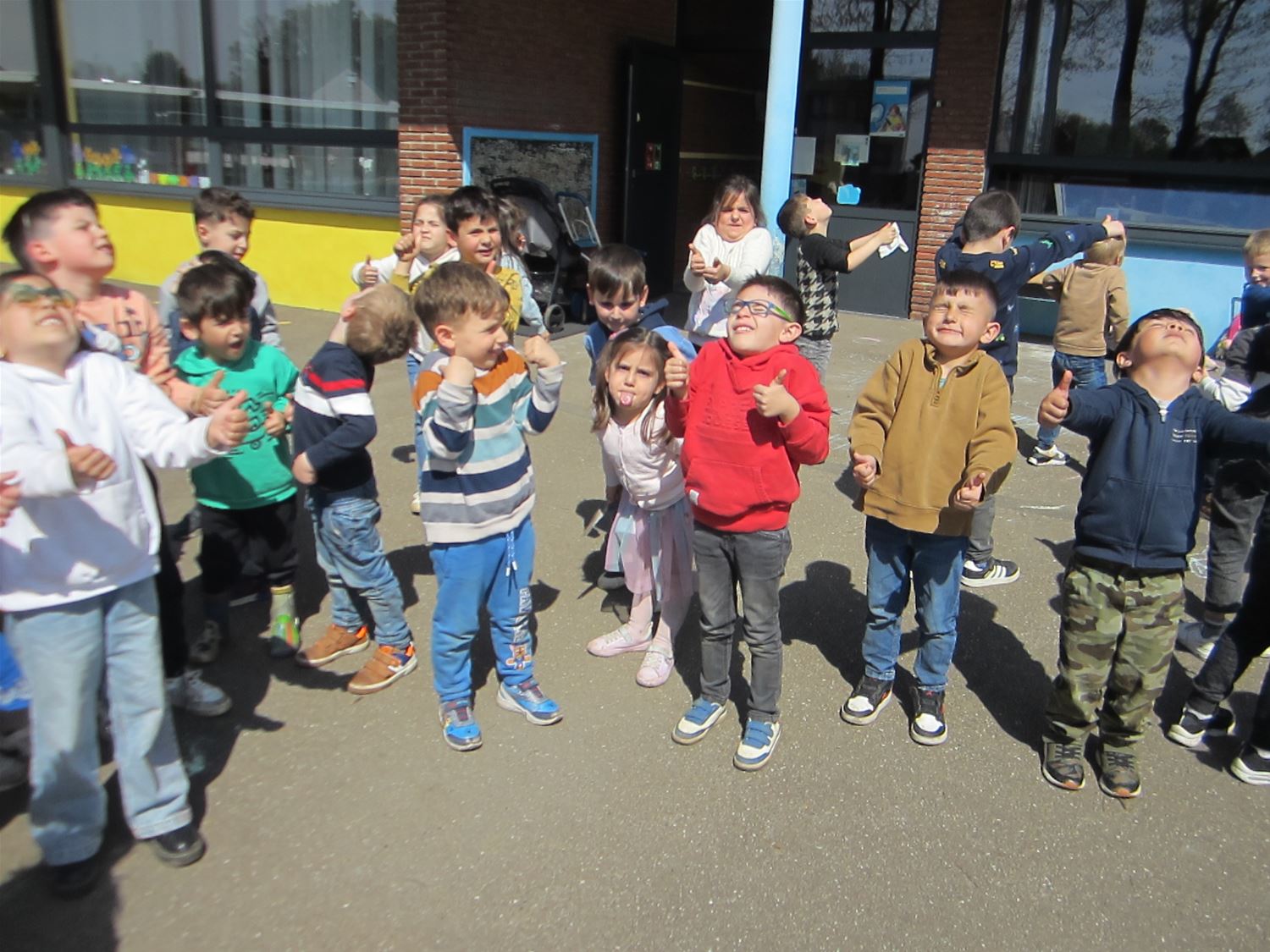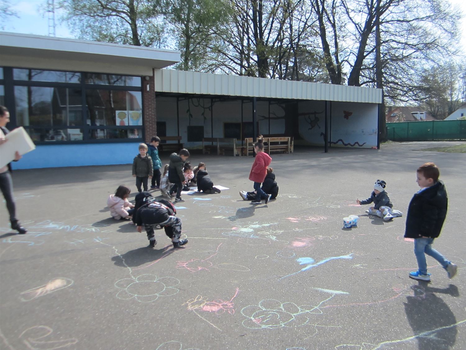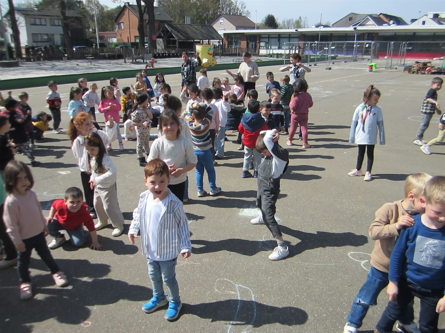 Ook kleuterschool Pagadder nam vandaag deel van de Buitenlesdag. Al bij aankomst werden de kleuters verwelkomd in de buitenklas, het was meteen een eerste prikkel om te leren over natuurverschijnselen en om de omgeving te verkennen. Naast leuk en leerzaam was de dag ook spannend. De leerkrachten hadden namelijk een “eigen buitenlesdagchallenge" bedacht. Elke klas moest verschillende opdrachten in groepjes uitvoeren. Zo legden de kleuters bijvoorbeeld een parcours af in de zandbak, spotten ze vogelhuisjes, tekenden ze schaduwbeelden van speelgoed uit hun klas en nog veel meer. Het was zo'n geslaagde dag, dat ze bij Pagadder van plan zijn het vaker te organiseren. 77361