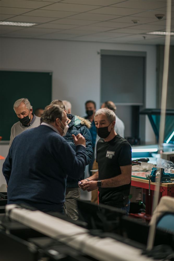Deze week heeft CVO De Verdieping zijn Makers Lab geopend. Vanuit de expertise opgebouwd in 2D- en 3D-ontwerp, zochten de medewerkers naar een verdere evolutie in hun cursus- en opleidingsaanbod. Terwijl afstandsonderwijs alsmaar belangrijker is geworden, is er immers ook in de gebouwen aan het Schachtplein nog nood aan praktische opleidingen. De school had al 3D-printers en het idee ontstond om dat aanbod uit te breiden tot een 'makerspace' voor iedereen die zijn digitale ontwerpen wil omzetten in fysieke objecten. De directie maakte een stevig budget vrij voor de aankoop van enkele hoogwaardige toestellen. Zo graveert of snijdt bijvoorbeeld de massieve Lasercutter met een indrukwekkende precisie elk ontwerp in hout, karton, leer en plexiglas. Je kan nu ook vinylprints maken, buttons drukken, en natuurlijk alles wat je maar wenst 3D printen, met PLA of hars. In het inschrijvingsgeld zit niet alleen het gratis gebruik van de toestellen, maar ook de persoonlijke begeleiding door ervaren vakleerkrachten. 71958