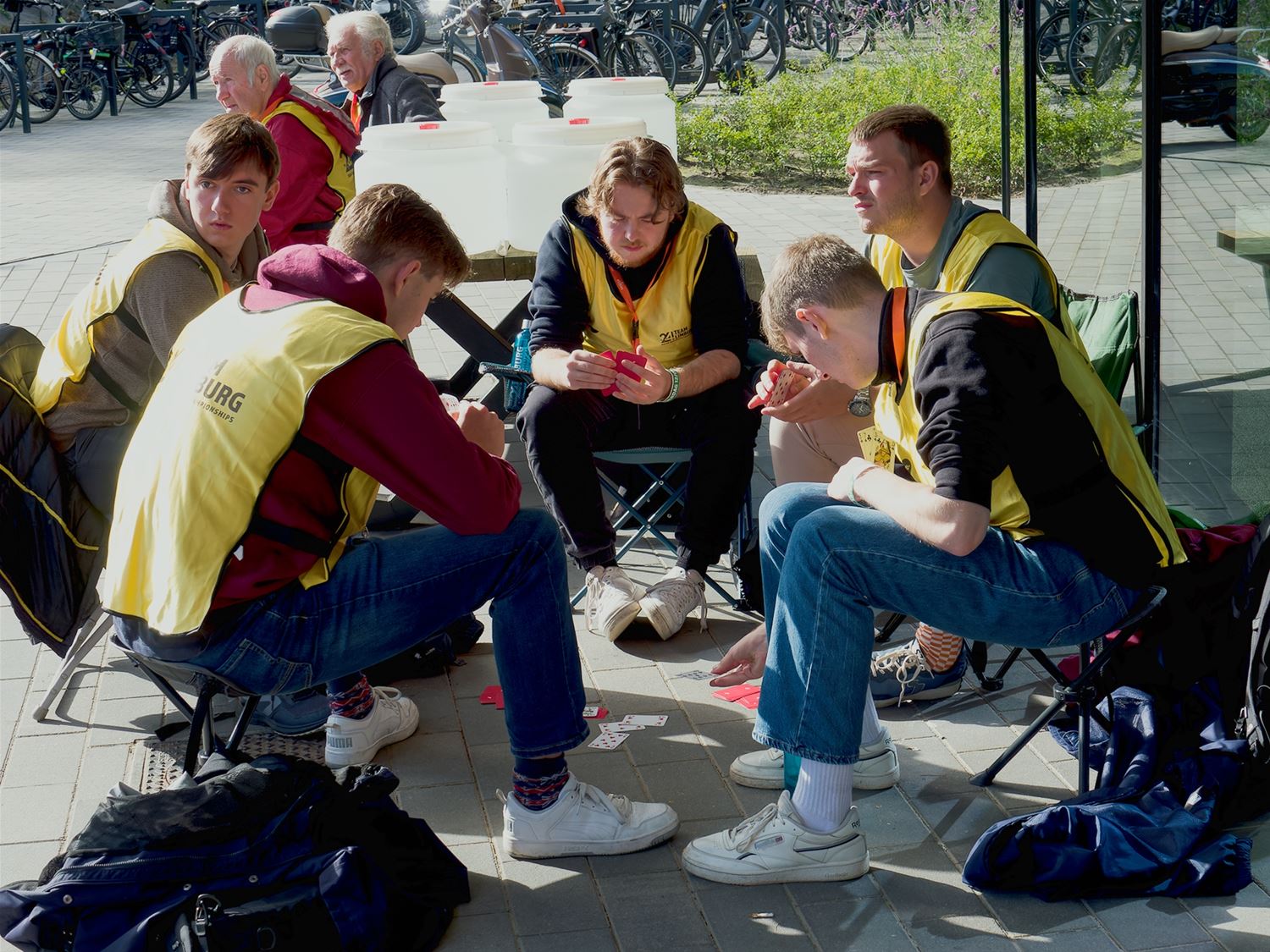 De organisatie van het EK vergt elke dag weer een grote inzet van hulpdiensten. Iedereen heeft ondertussen al wel de politiehelikopter gespot die voortdurend in de lucht hangt, en ook de tientallen motards van de federale politie die de renners mee begeleiden. Vanuit de lokale politie wordt dagelijks op het grondgebied Heusden-Zolder ween 50-tal agenten ingezet. Die komen uiteraard niet alleen vanuit de zone Heusden-Zolder, maar ook vanuit Beringen-Ham-Tessenderlo en ook andere Limburgse zones bieden versterking. Dagelijks zijn er briefings. Daarnaast staan zowat 60 seingevers langs het parcours. Verder is ook het Rode Kruis paraat. De brandweer verzorgde gisteren en vandaag met een volledig bezette autopomp een permanentie aan de Dienst Toerisme. Dat was nodig omdat door de afsluiting voor de tijdritten een deel van het grondgebied anders niet bereikbaar was. De komende dagen stelt dat probleem zich niet. Naast de hulpdiensten zorgen vrijwilligers voor alle mogelijke dienstverlening. (foto's Robrecht Froyman)83006