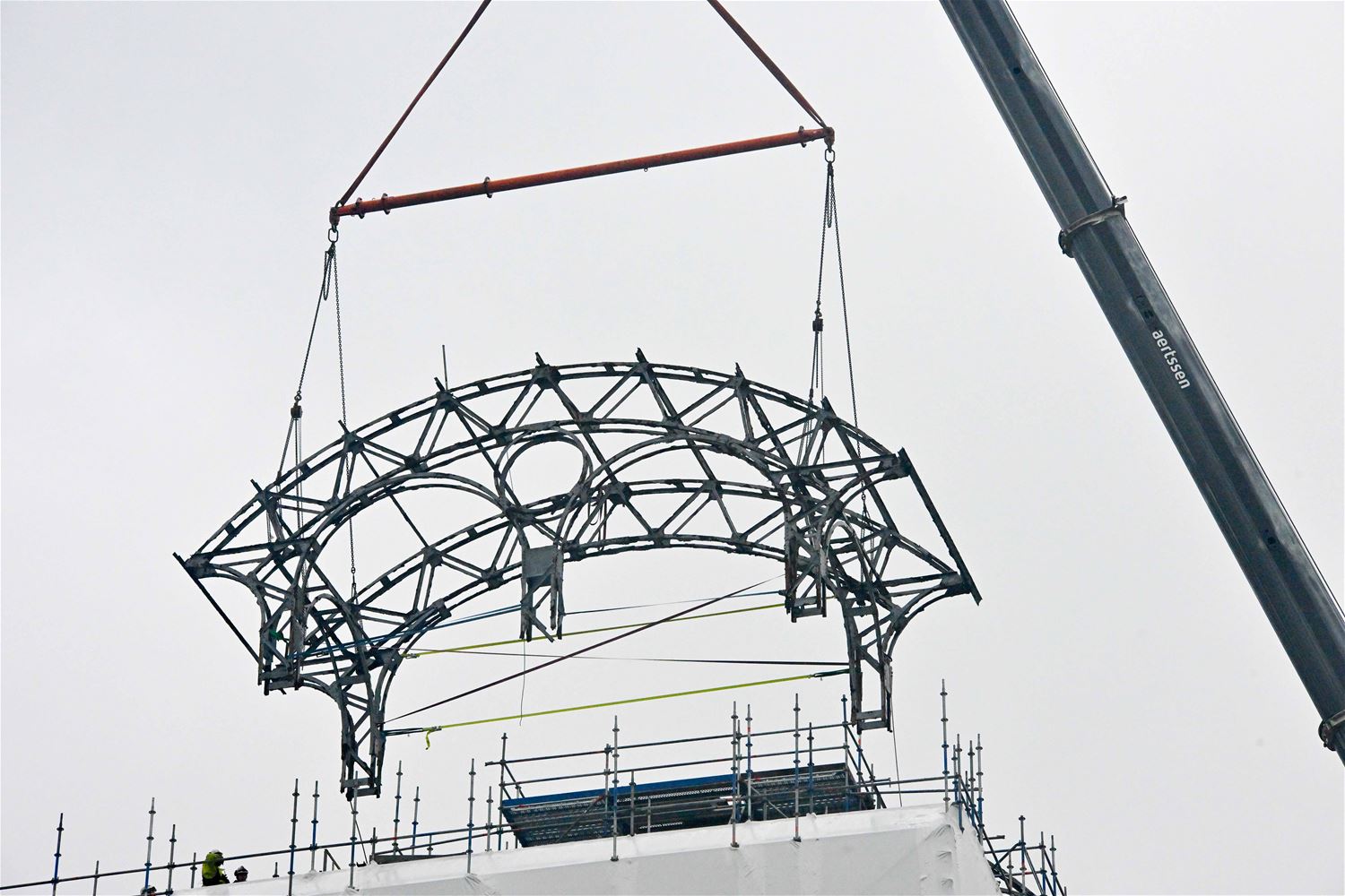 Met een spectaculaire operatie en een grote kraan is deze voormiddag het dak van de schachtbok weggehaald. Dat was nodig omdat voor de restauratie van de schachtbok het dak een behandeling moet krijgen in een gespecialiseerd atelier in Heist-op-den-Berg. Daarvoor wordt het op transport gezet. Voor heel de operatie waren – gezien het gewicht en de grote hoogte – uitgebreide veiligheidsmaatregelen genomen. Maar alles liep zonder veel problemen. Burgemeester Mario Borremans maakt zich sterk dat eind 2026 de volledige restauratie achter de rug, inclusief het gebouw, de lift en de panoramische lounge. Dan zal er nog één mijngebouw in gemeentehanden zijn waarvoor nog geen toekomst is bepaald, en dat is de oude watertoren. Daarvoor bestaan er nog geen plannen. 85104