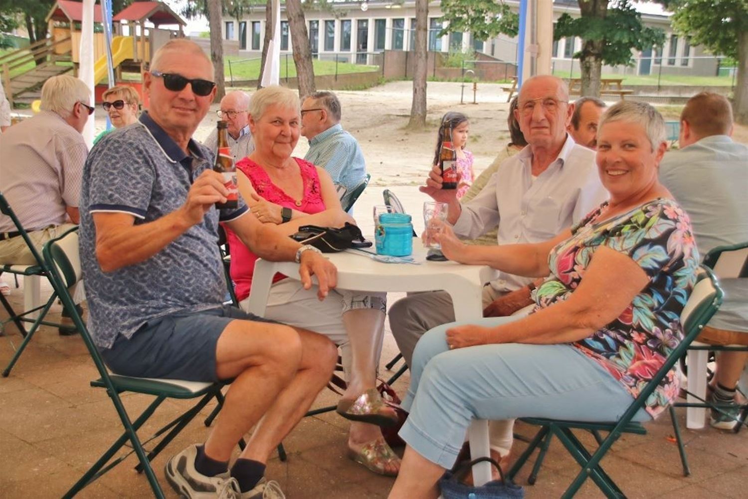 De Blauwe Wijk vierde vandaag een feestje, niet zomaar een zomerfeest, maar de 50ste verjaardag van de wijkwerking. Voor de aanwezigen was het al bij al nog een fijne verrassing dat hun voorzitter Patrick Volders onverwacht opdaagde. Hij herstelt momenteel in het ziekenhuis van een ernstige ziekte en kreeg enkele uurtjes vrij van zijn dokter. Hij nam het woord, zijn vrouw Nathalie werd ook in de bloemetjes gezet. Ook Roger en Maurice werden voor hun 50 jaar inzet bedankt. Zelfs de regen die later neerplensde kon het feest met veel muziek, sangria en warme hapjes niet verstoren. Ondertussen zijn de volgende 50 jaar van de Blauwe Wijk ingezet. (foto's Tony Sempels)81348