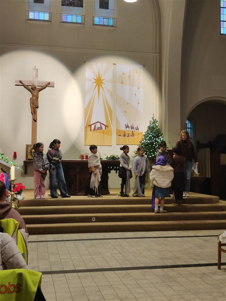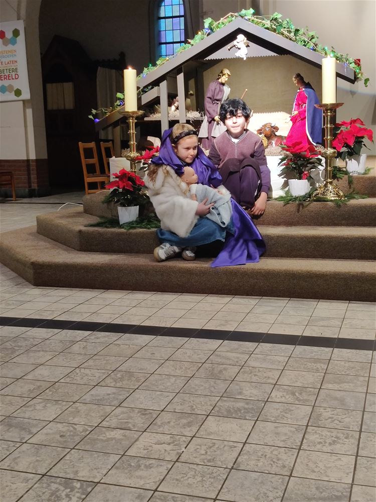 In lagere school De Brug werd de kerstperiode op een warme manier afgesloten met een sfeervolle kerstviering. De leerlingen van het tweede leerjaar brachten in de kerk het kerstverhaal op een mooie en ontroerende manier tot leven. De viering werd verder opgeluisterd met heel wat liedjes, gezongen door de leerlingen. Maar het bleef niet bij woorden en liederen, als afsluiter van de advents toonde de school ook haar groot hart: er werd een mooie hoeveelheid voedsel ingezameld voor Sint-Vincentius. (foto’s Dorine Snyders)87282