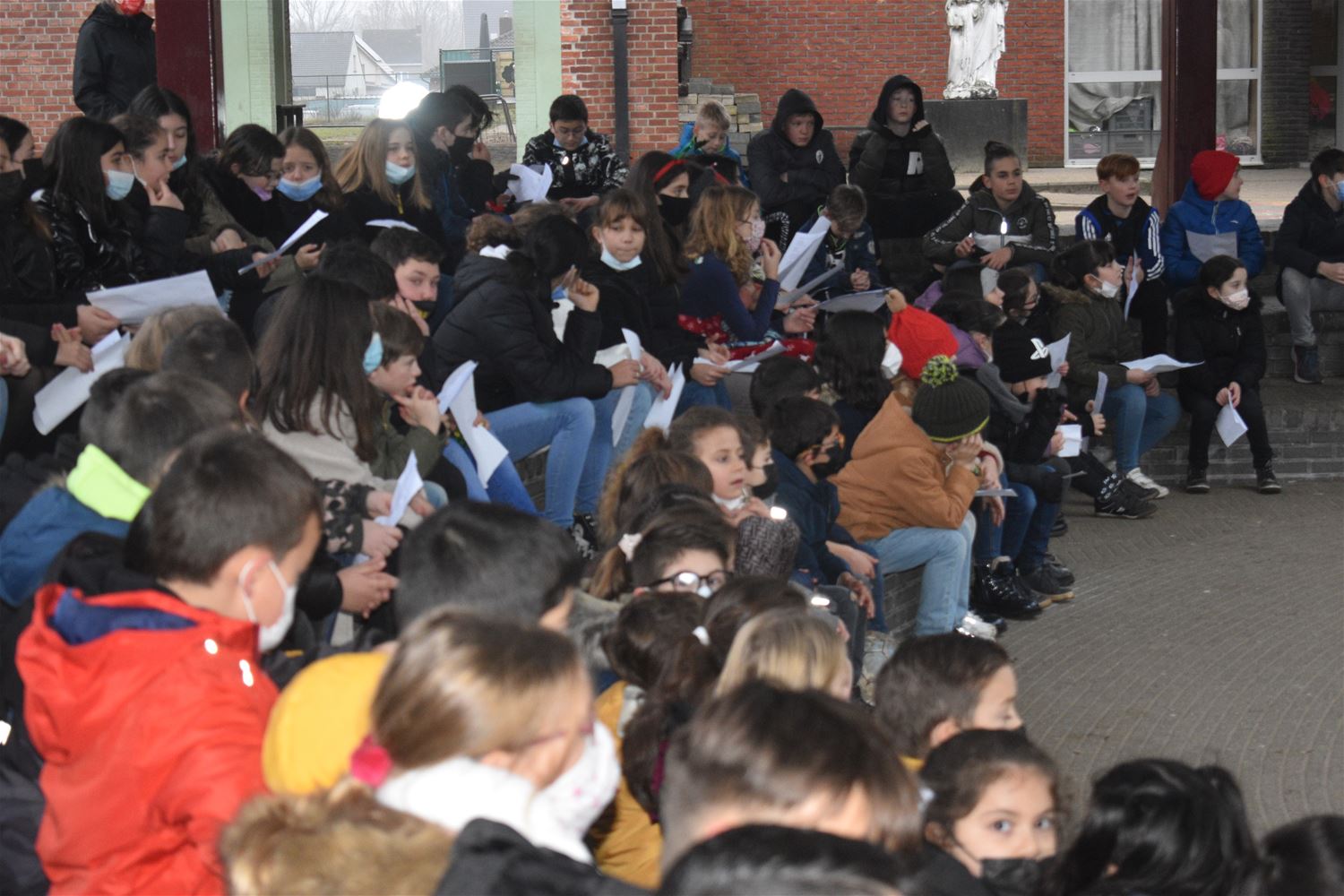 Ondanks de moeilijke periode hebben ze in VLS De Brug toch stilgestaan bij de advent en het komende kerstfeest. Iedereen zette zich in voor steun aan de minderbeelden in de gemeente via Sint-Vincentius. De leerlingen van het zesde leerjaar deden extra hun best voor De Warmste Week en haalden liefst 815 euro op. (foto Inge Vreys)71657