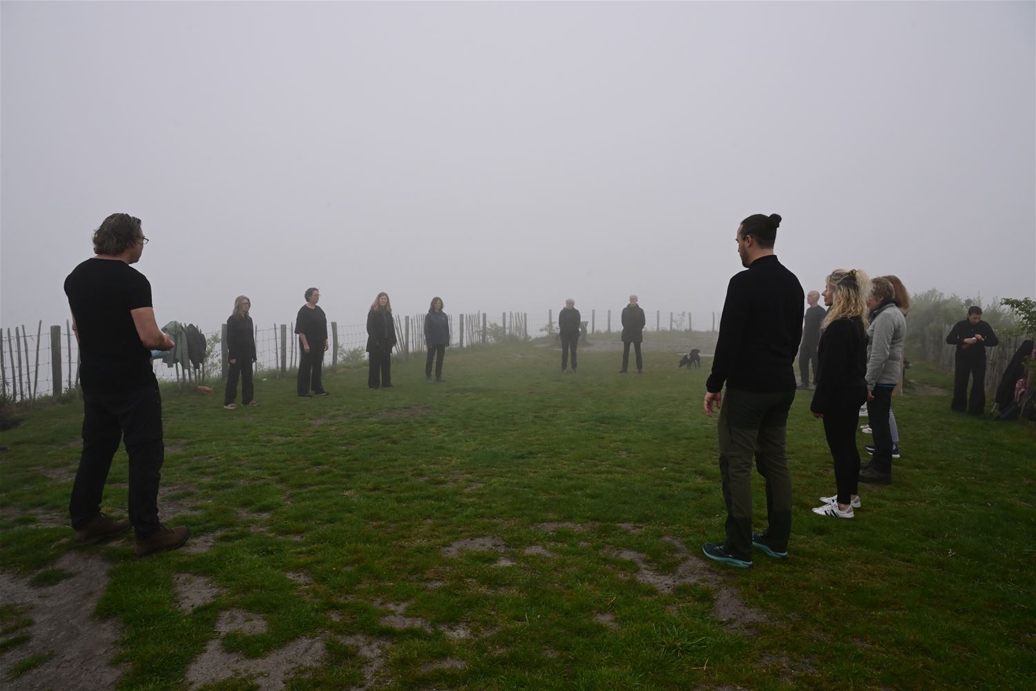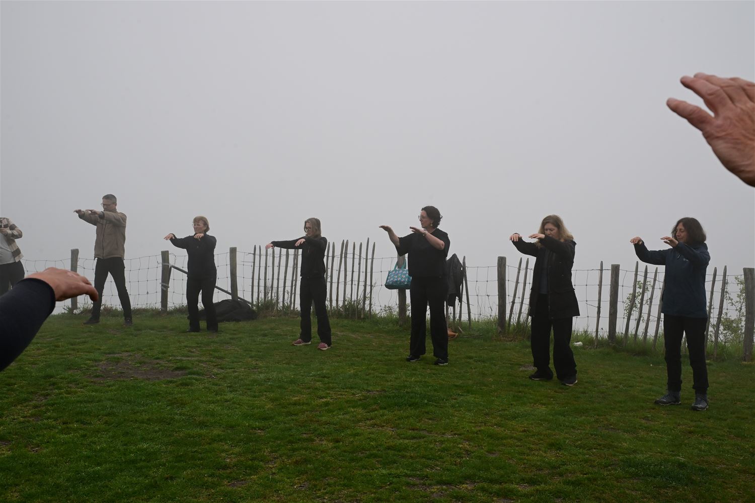 Vanmorgen – op wereld Tai Chi dag – nam de Heusdense leraar Danny Baerts zijn leerlingen en alle geïnteresseerden mee de mijnterril van Beringen op. Na een wandeling deden ze daar een reeks tai chi oefeningen. De zon was niet van de partij maar de mist hulde het geheel in een speciale sfeer. Ze maakten daarmee deel uit van de wave, die op hetzelfde moment over zowat heel de wereld werd gevormd door tai chi beoefenaars. Alsof er één groot zen-moment over de aardbol waaide … (foto’s Patrick Cosemans)88364