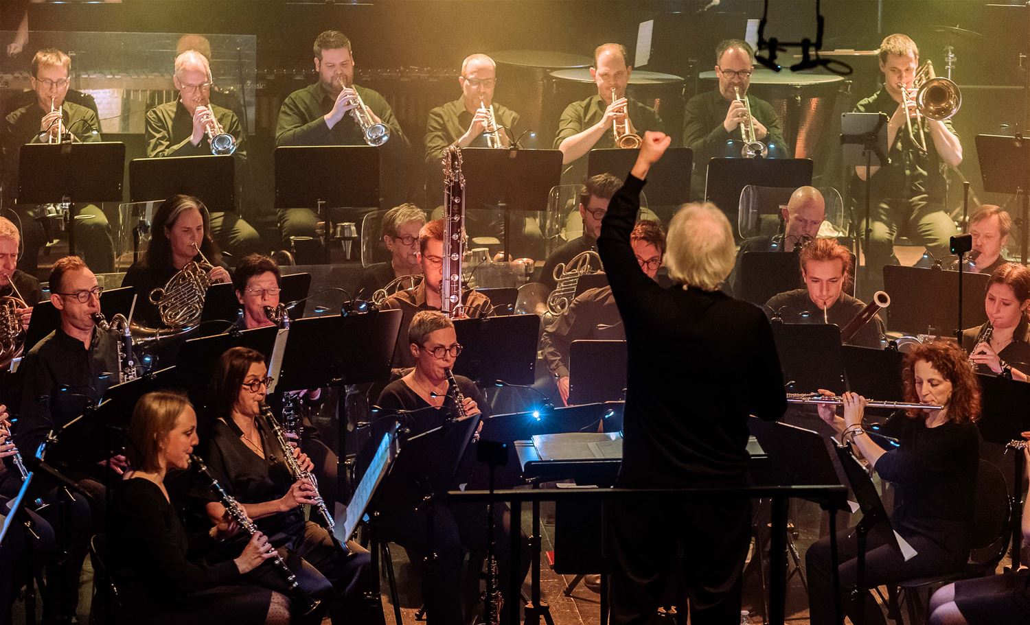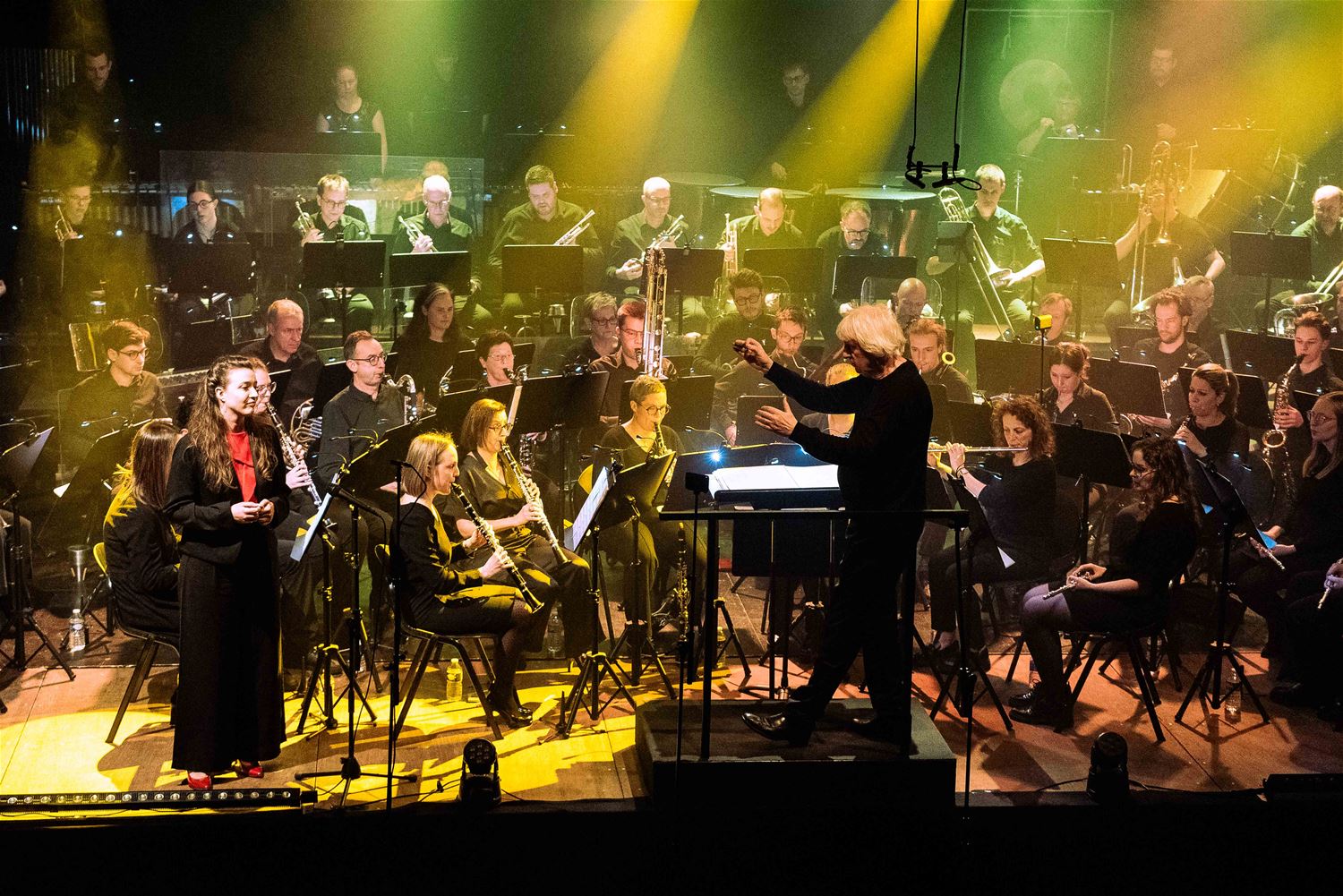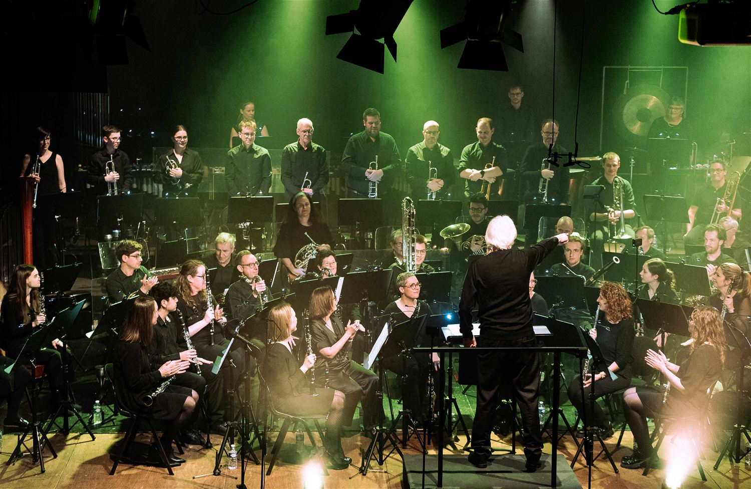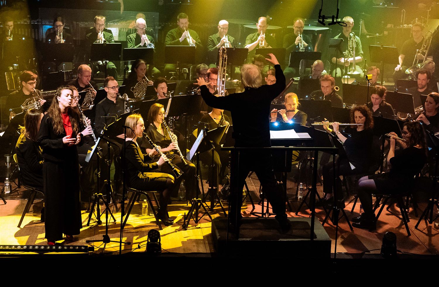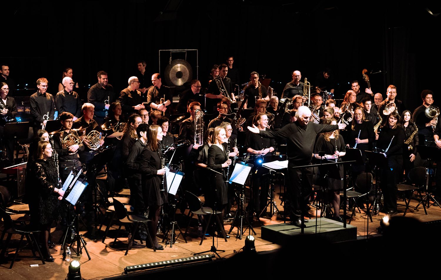 De Koninklijke Harmonie De Heidegalm gaf zaterdagavond een prachtig verzorgd jaarconcert in de zaal van het Sint-Franciscuscollege. Het was tegelijk een hulde aan componist Jan Van der Roost, voor zijn 70ste verjaardag. Van der Roost was vereerd, hij werd geïnterviewd door Fred Brouwers en dirigeerde zelf een deel van het concert. Naast de uitstekend voorbereide muzikanten van De Heidegalm waren er ook nog voortreffelijke optredens van klarinettiste Miet Vandeberg en lyrische sopraan Anne-Sophie Lermyte. Het concert moest later op de avond even onderbroken worden door een loos brandalarm, wellicht door de rook op het podium. Maar daar maalde het publiek niet om. De zaal zat bomvol en dat verdiende dit concert ook. (foto’s Ann Jordens)87789