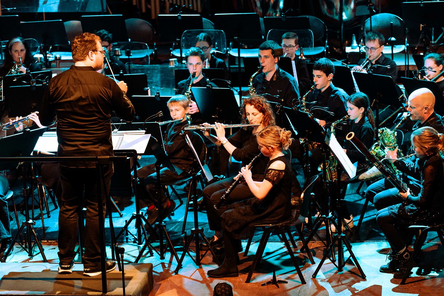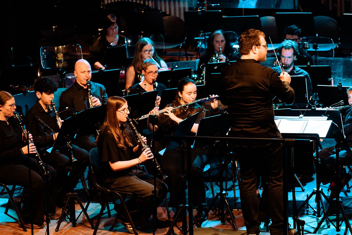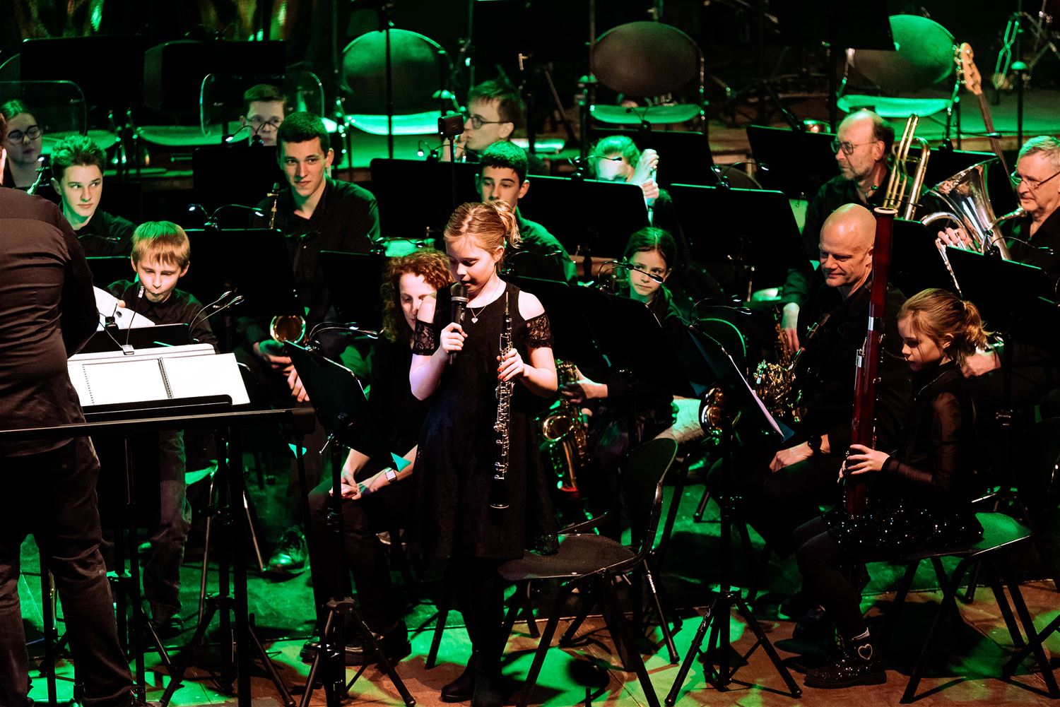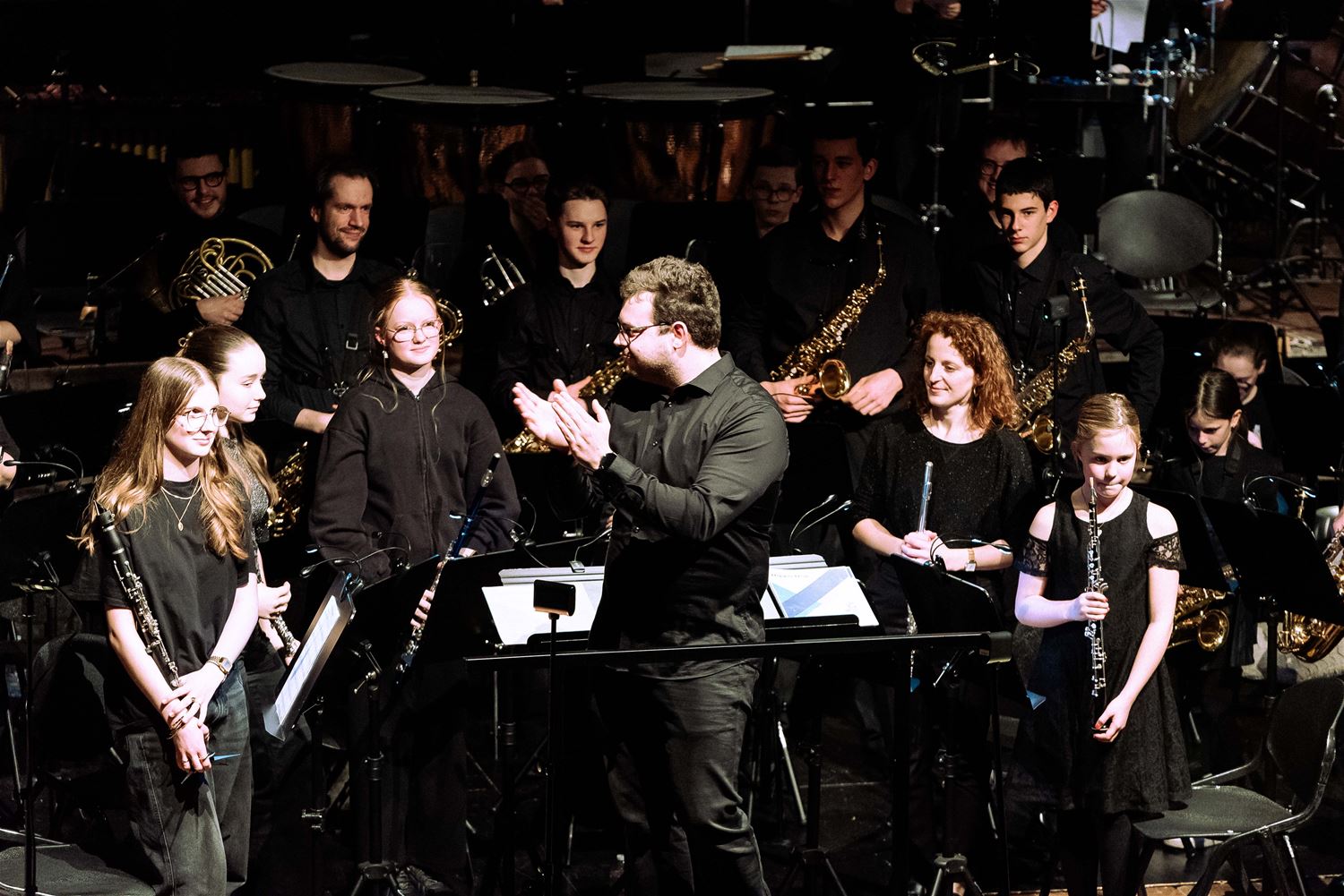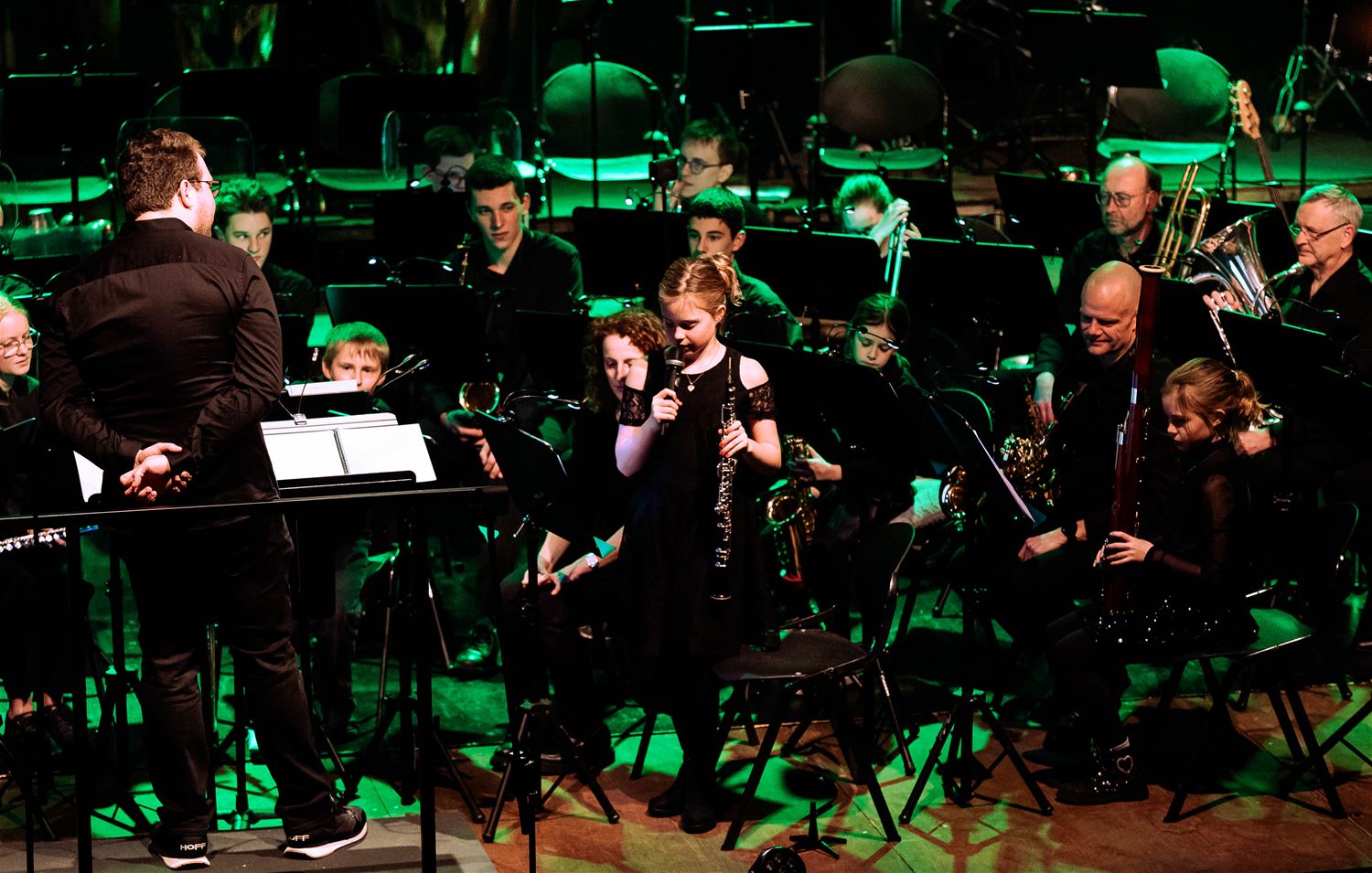 De Koninklijke Harmonie De Heidegalm gaf zaterdagavond een prachtig verzorgd jaarconcert in de zaal van het Sint-Franciscuscollege. Het was tegelijk een hulde aan componist Jan Van der Roost, voor zijn 70ste verjaardag. Van der Roost was vereerd, hij werd geïnterviewd door Fred Brouwers en dirigeerde zelf een deel van het concert. Naast de uitstekend voorbereide muzikanten van De Heidegalm waren er ook nog voortreffelijke optredens van klarinettiste Miet Vandeberg en lyrische sopraan Anne-Sophie Lermyte. Het concert moest later op de avond even onderbroken worden door een loos brandalarm, wellicht door de rook op het podium. Maar daar maalde het publiek niet om. De zaal zat bomvol en dat verdiende dit concert ook. (foto’s Ann Jordens)87789