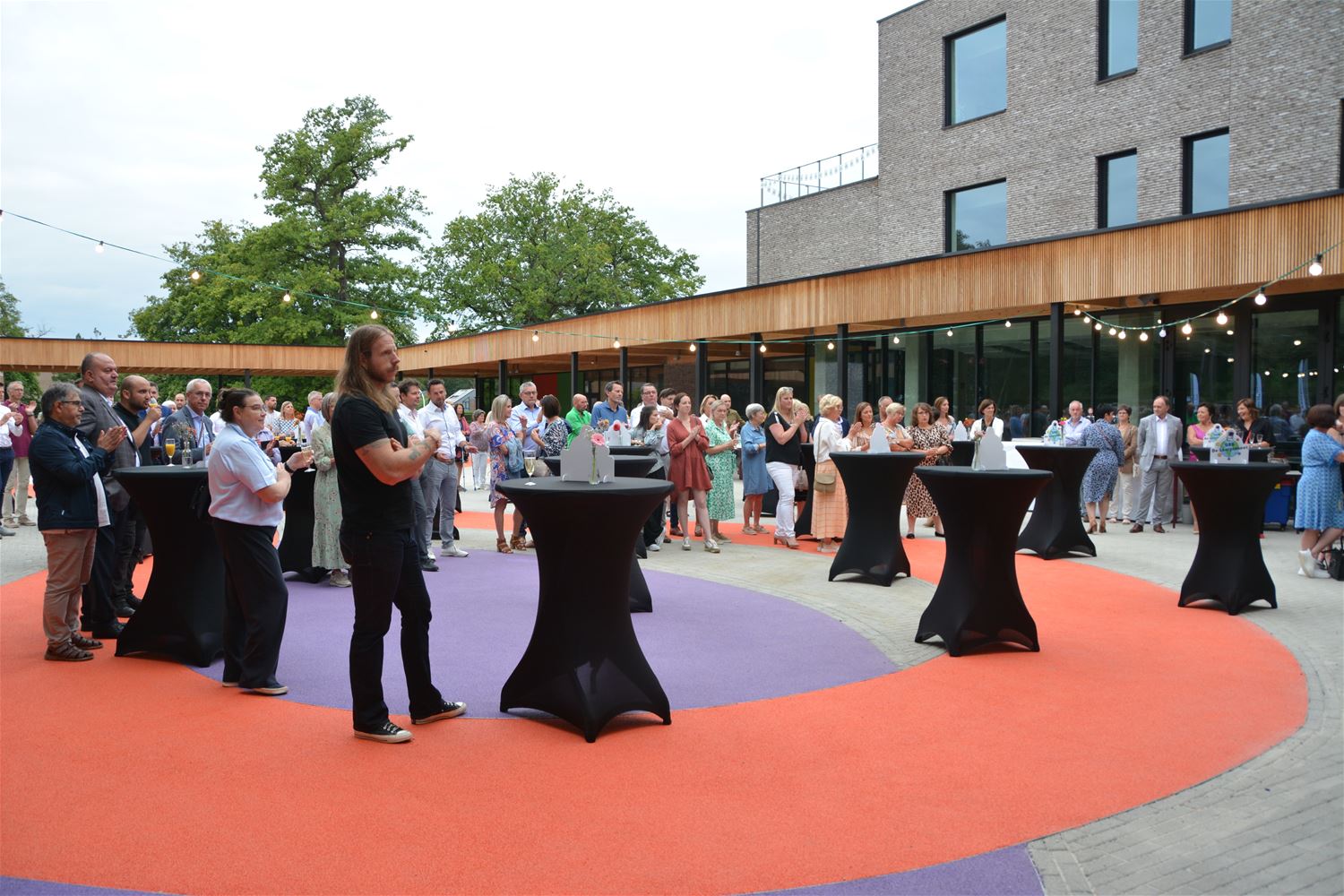 Onder ruime belangstelling is vanavond de nieuwe gemeenteschool De Leerplaneet geopend, op de plek van het vroegere cultuurcentrum. Het is een mooie, moderne en toekomstgerichte school geworden, zowel naar opvatting, aankleding als inrichting met onder meer de nieuwste generatie digitale borden. Directeur Renata Hauben toonde zich trots op de nieuwe school die 12 klassen voor het lager onderwijs en 7 voor de kleuters telt. Daarnaast is er ruimte voor de teken- en voor de muziekacademie. De school start volgende week met 288 leerlingen en kleuters en is in volle groei. Burgemeester Mario Borremans wees erop dat het nieuwe gebouw niet alleen belangrijk is voor de school op zich, maar ook voor de toekomst van Heusden-Zolder. Ze maakt bovendien deel uit van de volledige metamorfose die Zolder-Centrum momenteel ondergaat. Dank ging ook uit naar architectenbureau Q-Bus en hoofdaannemer Haex, de gemeentediensten en vooral het schoolpersoneel dat een groot deel van de vakantie heeft gebruikt voor de verhuizing en de inrichting van de nieuwe school. Bij die dankwoorden sloot ook schepen van Onderwijs Marleen Hoydonckx zich aan. Ze verwees naar de intense voorbereiding waarbij ook werd nagedacht over het onderwijs van de toekomst. Het is belangrijk dat iedereen er zich thuis voelt, aldus de schepen. De leerkrachten moeten er kunnen groeien zodat ze de leerlingen helpen groeien. Het is volgens haar bovendien essentieel - in deze tijd meer dan ooit - dat de school aansluit bij de natuur in het Domherenhof. Daarna konden de genodigden een kijkje nemen in het nieuwe gebouw. Morgen mogen ook de leerlingen en hun ouders dat komen doen.75016