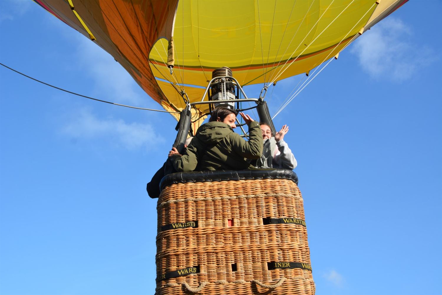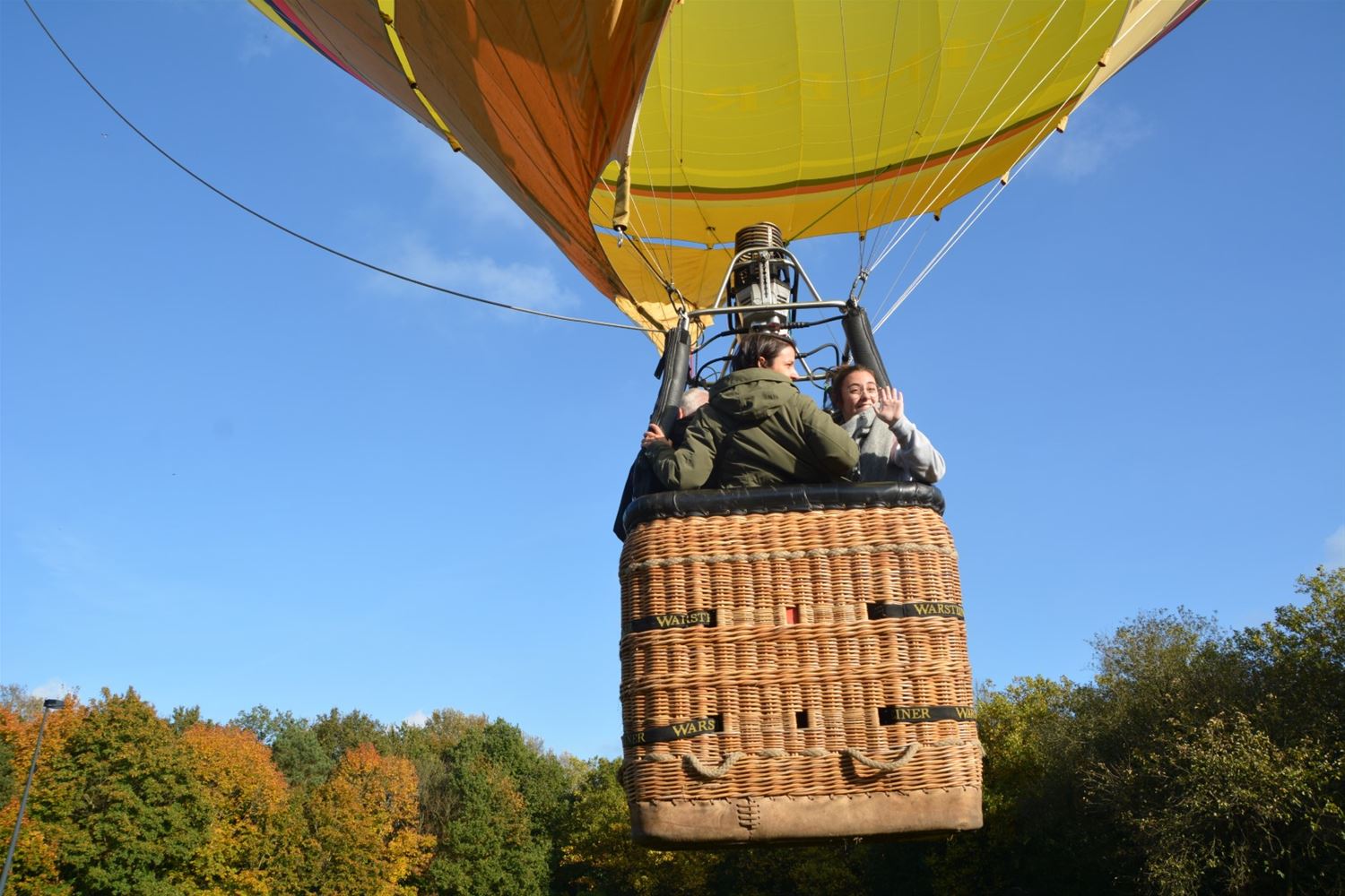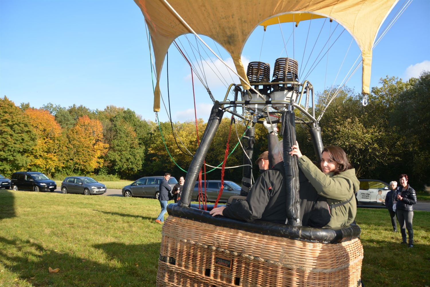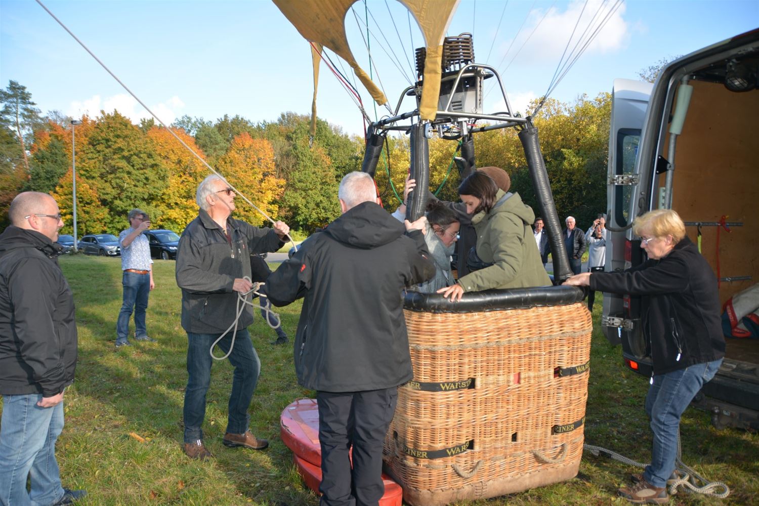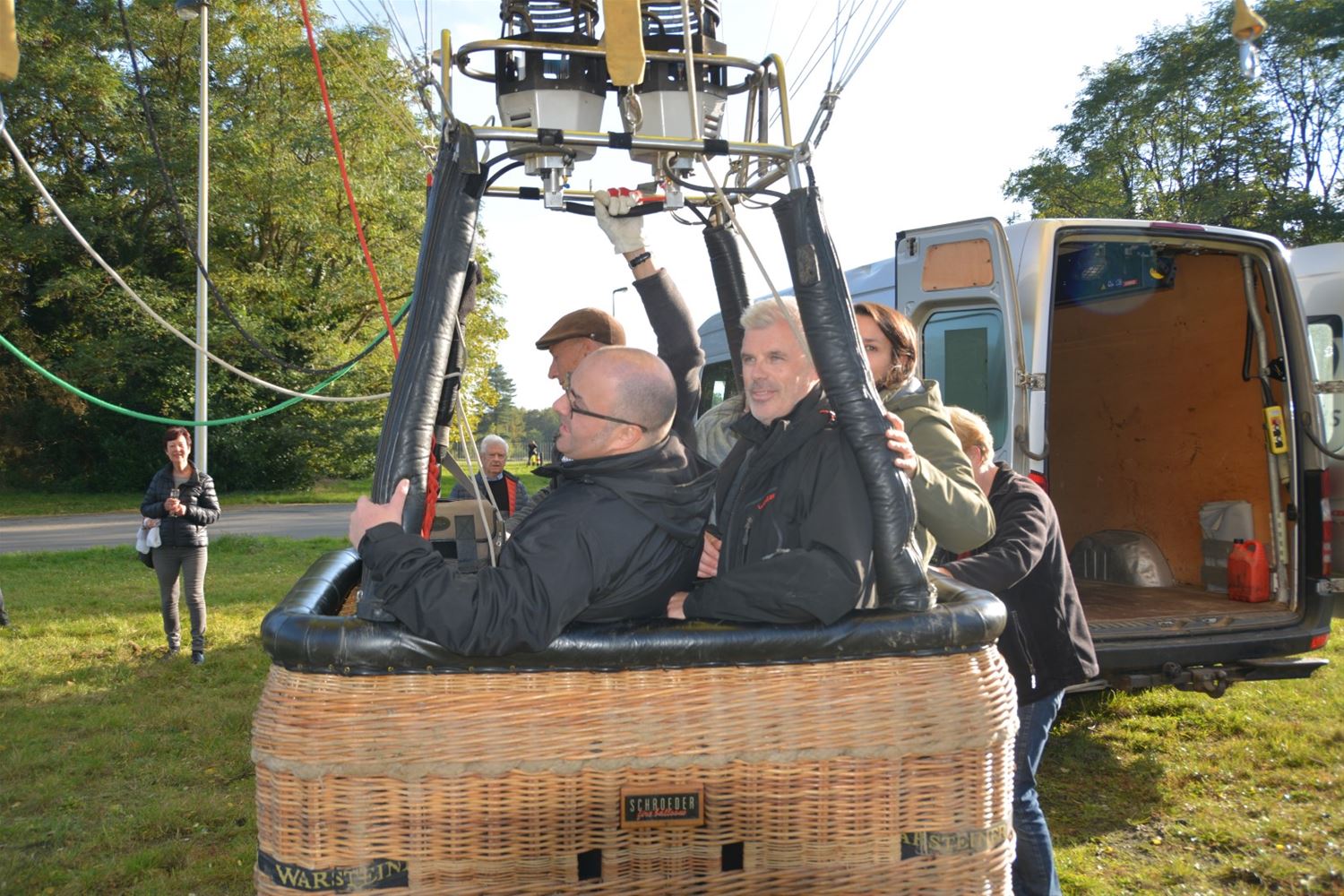 Vanop Helzold is deze namiddag een grote luchtballon opgestegen met aan boord Nico Simons en Luc Vancluysen en hun respectievelijke partners. Zij waren de winnaars van de actie van het Weekend van de Klant 2020 van de Verenigde Handelaars Zolder. Door corona hebben ze inderdaad een jaartje moeten wachten voor ze van hun prijs konden genieten. Maar het weer was dan ook ideaal vandaag, bovendien mochten ze mee het luchtruim in met Jan Timmers uit Helchteren. Jan was in de jaren '80 de eerste Limburgse ballonvaarder en won tal van keren de Belgische kampioenstitel. Tegenwoordig wordt hij geregeld uitgenodigd in het buitenland, onder meer in de Verenigde Arabische Emiraten. De winnaars vandaag konden dan ook niet alleen genieten van het prachtige uitzicht bij helder weer, maar ook van de nodige uitleg en verhalen van Jan onderweg. Morgen stijgt opnieuw een ballon op met de andere winnaars.71081