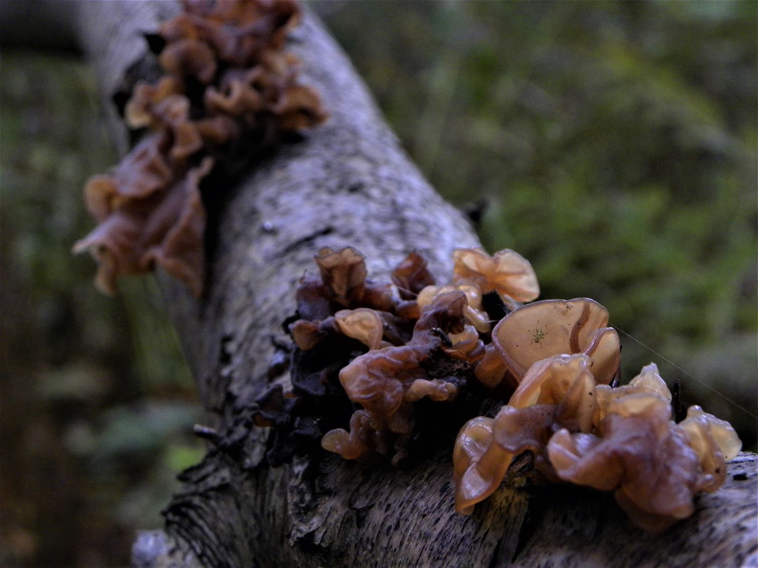 Dit zijn nog mooie exemplaren die Stefan Was in de omgeving van de Schansbeemden aantrof: de hertenzwam (boven), en onder de dodelijke groene knolamaniet, de bruine trilzwam en de spekzwoerdzwam.71160