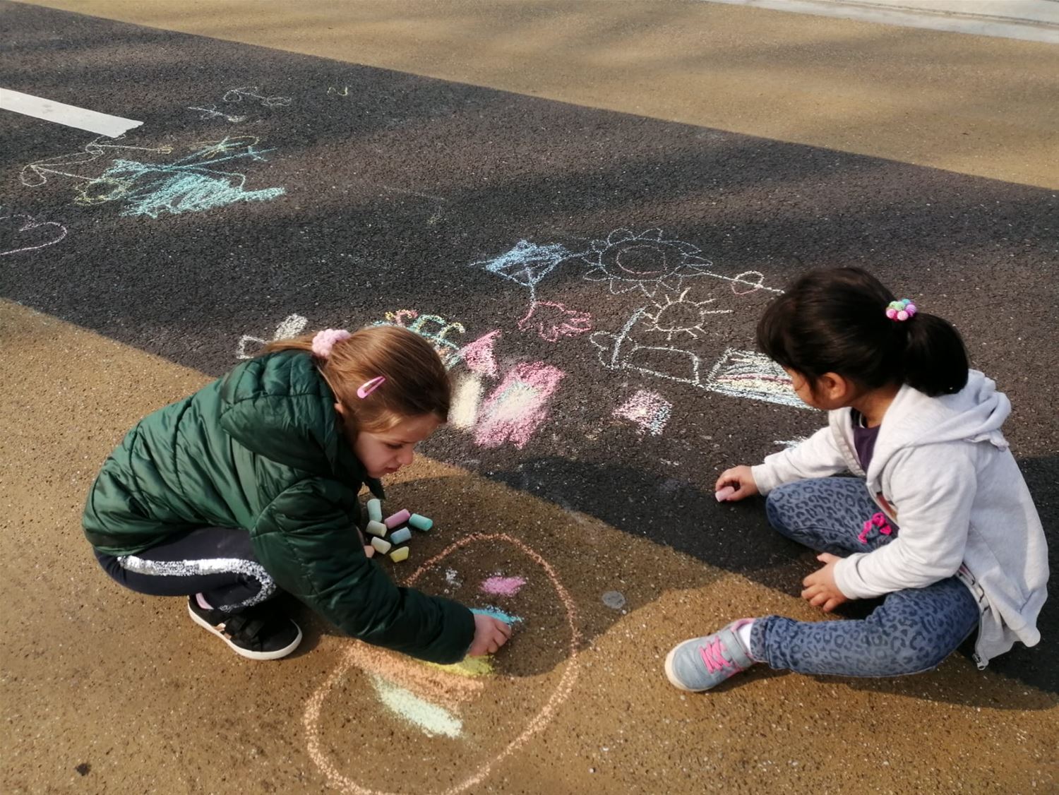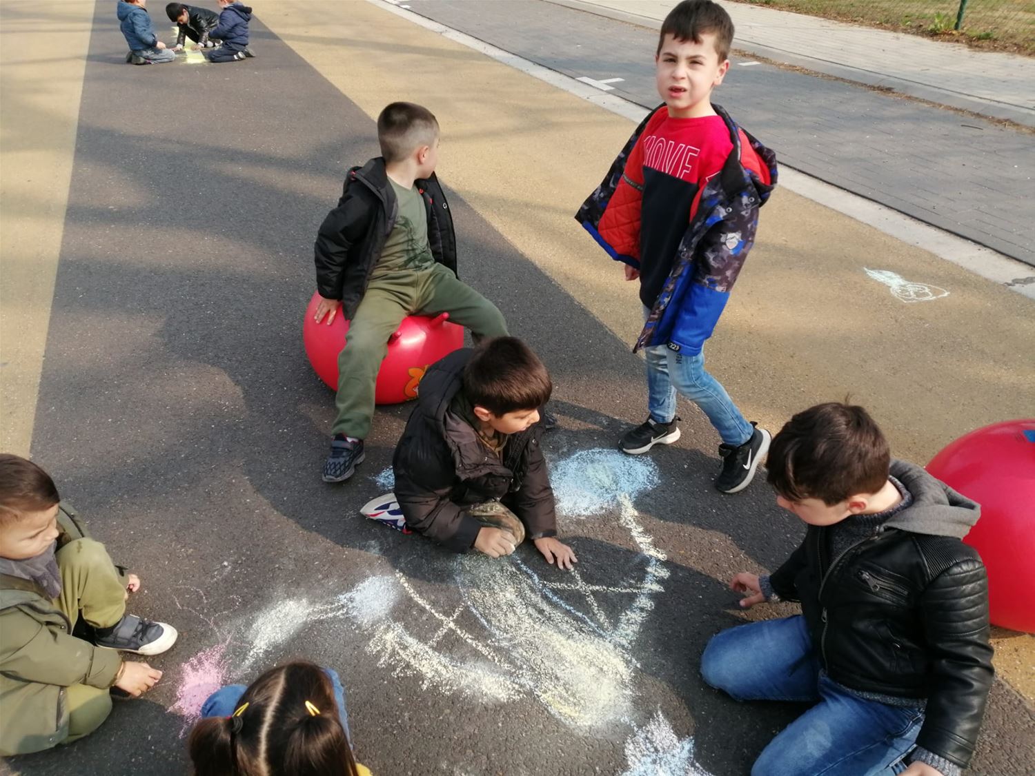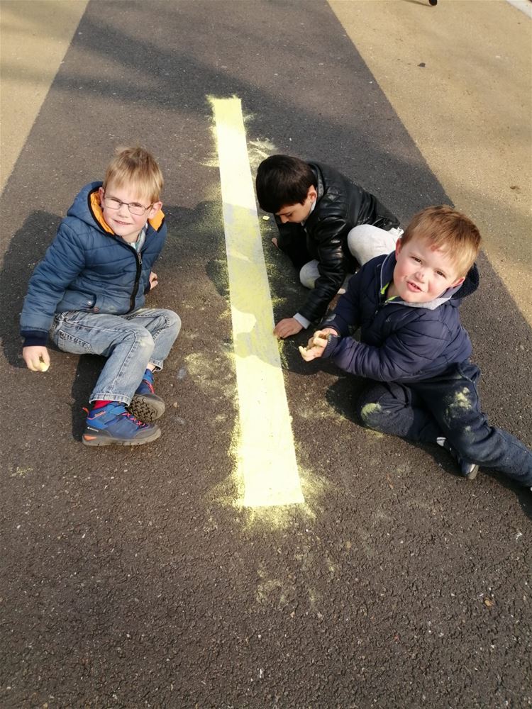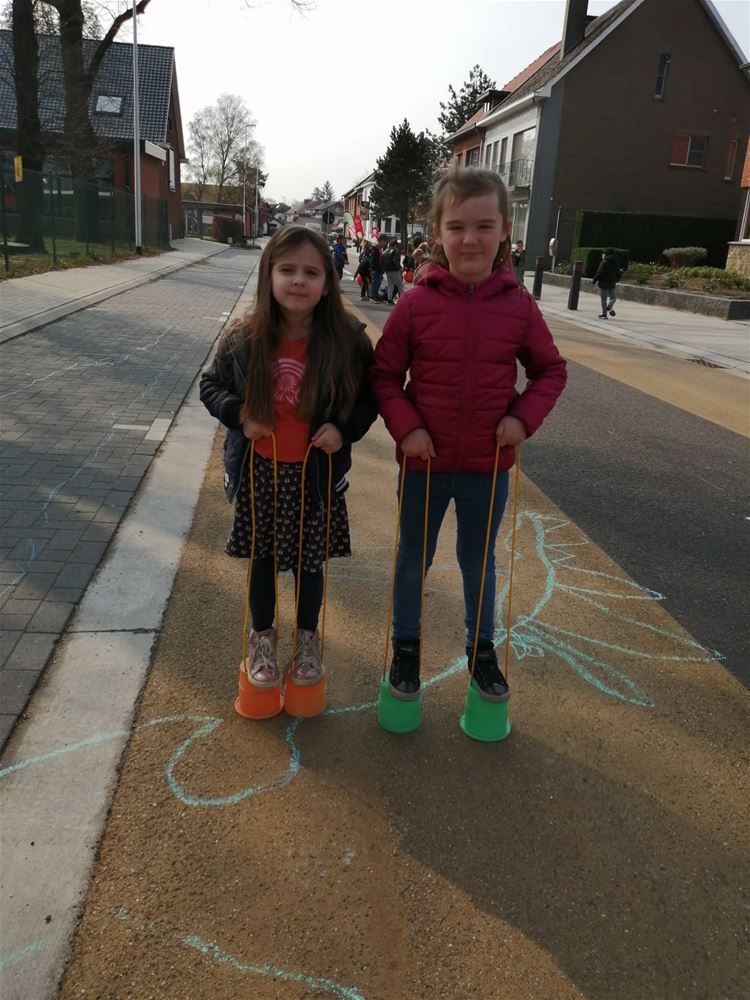 Kleuterschool Pagadder hield een eigen buitenspeeldag. Ze trokken met zijn allen de straat op, die werd helemaal volgetekend. Maar ondertussen werd er ook volop gefietst en gespeeld. Jammer genoeg kunnen ze niet dagelijks op straat spelen, maar met een grote speelplaats is dat ook weer geen ramp. (foto's Hilde Coomans)69253
