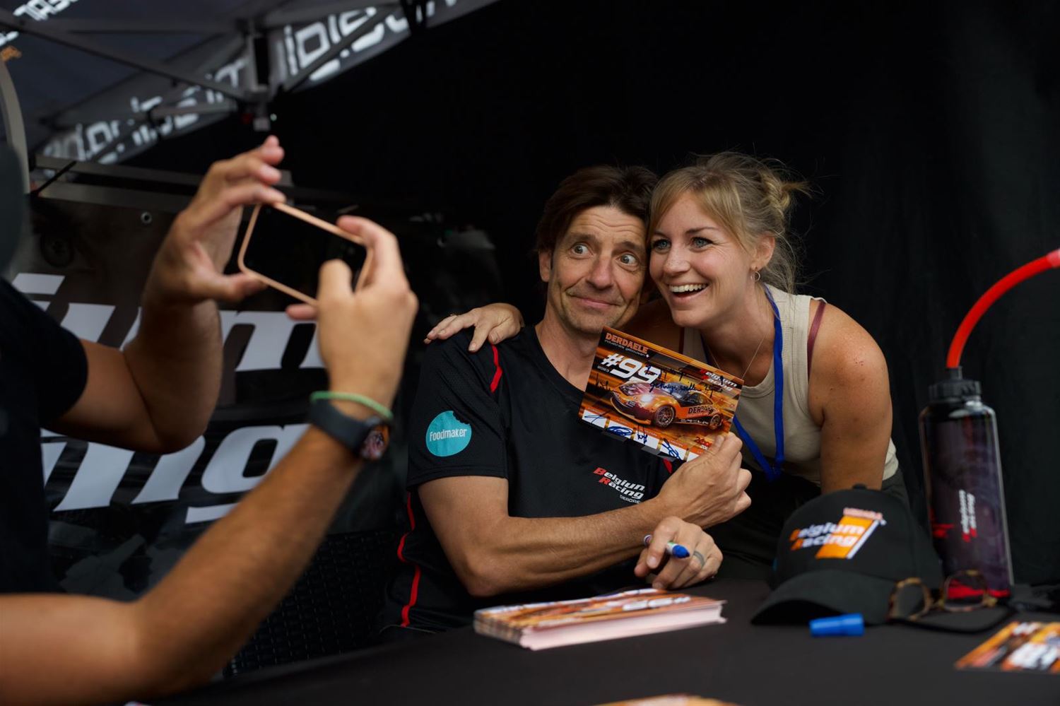 Het is al heel de dag erg druk op Circuit Zolder, niet in het minst door de duizenden 'vips' die op uitnodiging van sponsors de benen onder tafel mogen komen steken en tegelijk de start van het grootste autosportevent van Vlaanderen kunnen meemaken. Eerder vanmiddag was ook de foto- en handtekeningensessie met de rijders al druk bijgewoond. En toen om 16 uur het licht op groen sprong, leek meteen het Porschefestival te zijn ingezet. Dat blijk ook na 2,5 uur race. De eerste 9 plaatsen worden ingenomen door Porsches, met aan de leiding de bolide met Lars Kern aan het stuur en 89 rondes op de teller. (foto's Dirk Dekens)78385
