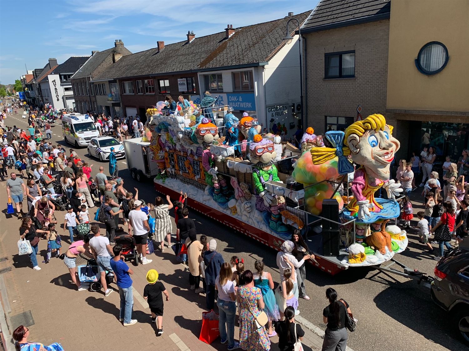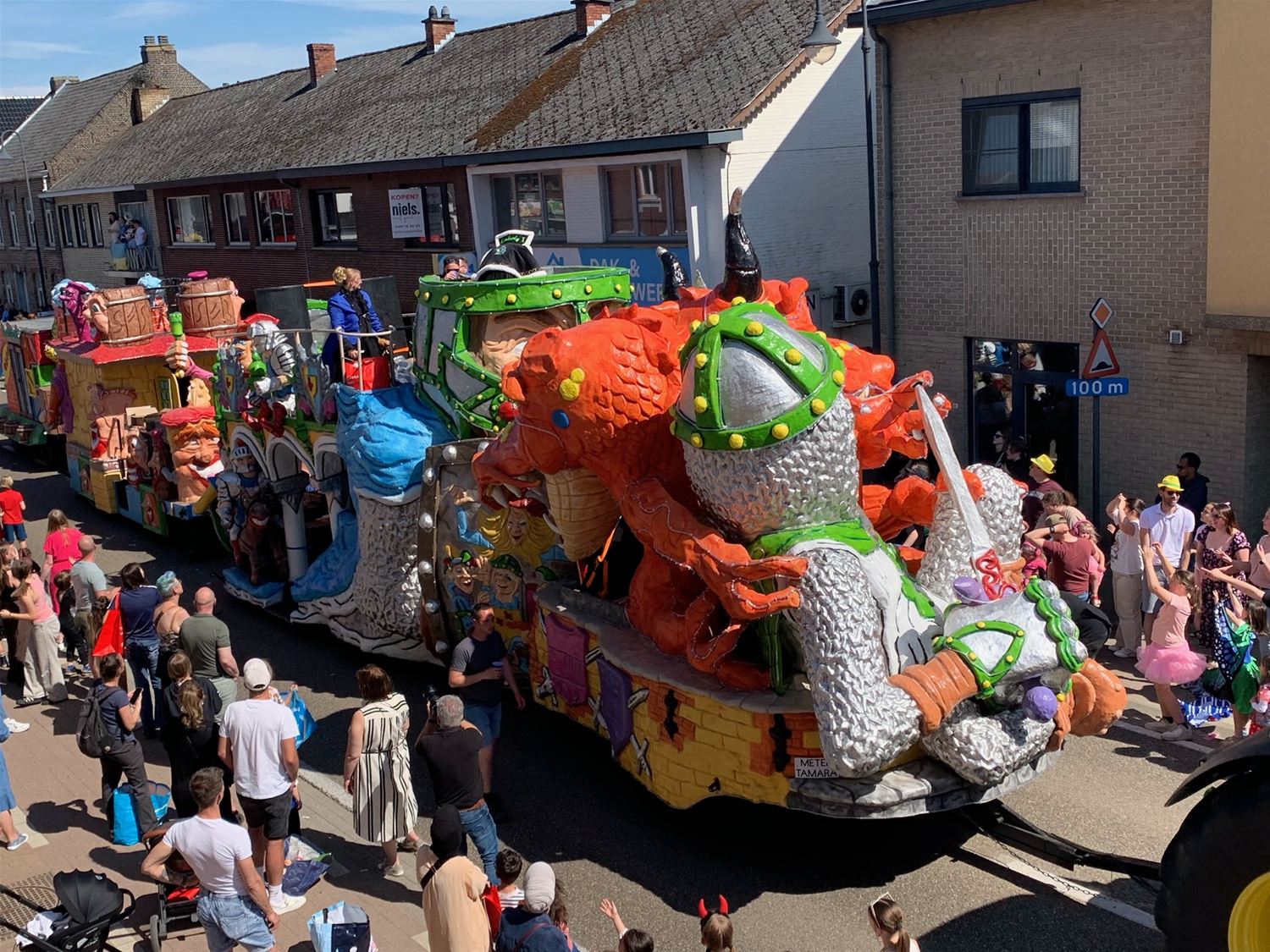 Om 14.11 uur heeft op het Koning Boudewijnplein de 44ste stoet van De Slamridders zich in beweging gezet. Enkele tientallen wagens en groepen trekken door een zonovergoten Heusden-Centrum met een massa volk langs de weg. (foto's Julien Maebe)85133
