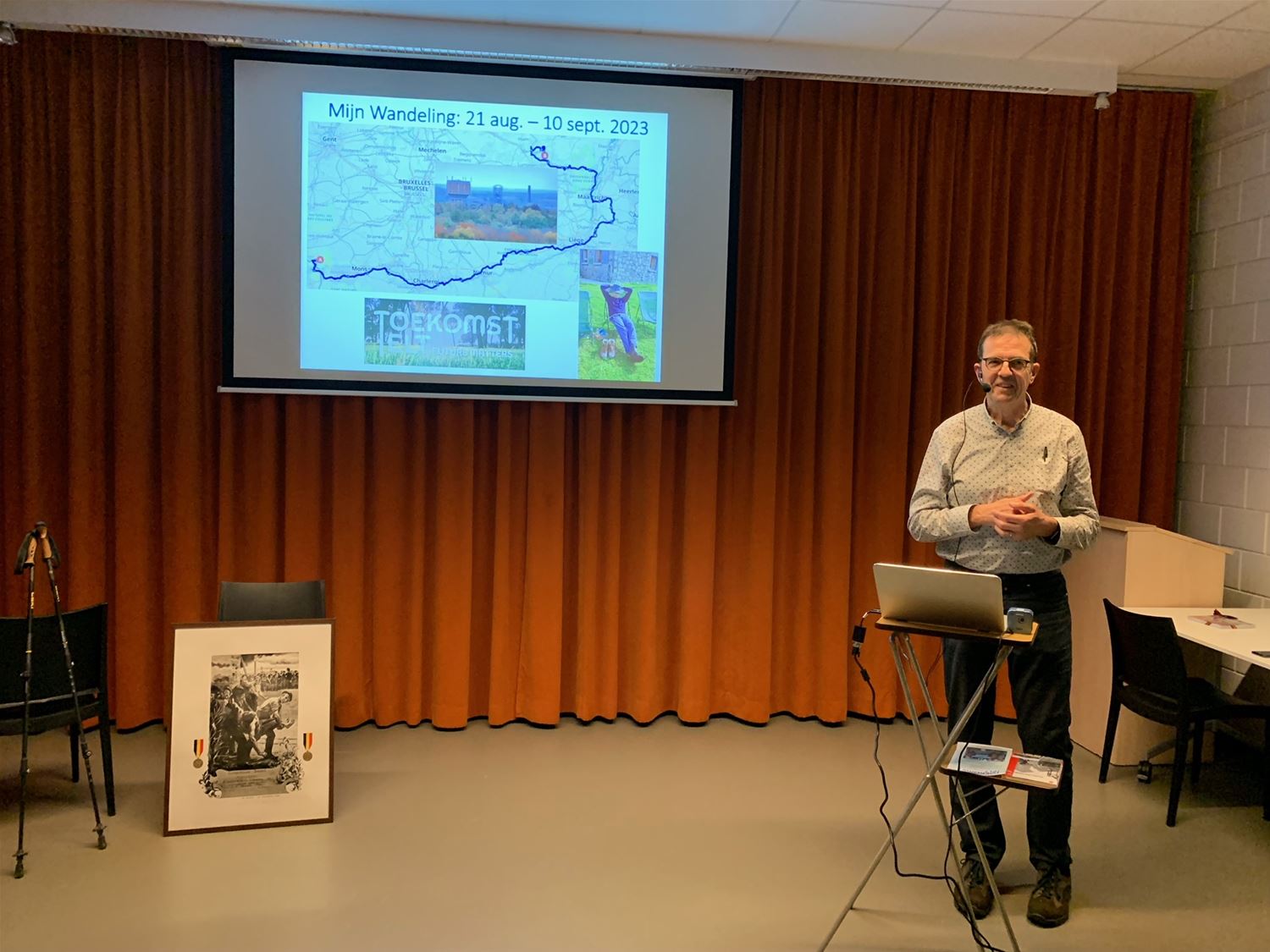 In de bibliotheek deed Paul Coolen maandagavond het verhaal van zijn wandeltocht langs de Belgische mijnen, waarbij hij ook de resterende terrils beklom. Hij ging over de taalgrens en de landsgrens en kwam er sites en gemeenschappen tegen die nog altijd de sporen van het mijnverleden mee torsen. Hij had heel wat illustraties die zijn verhaal onderlijnden. De tocht van Paul Coolen stond ook in het teken van de duurzame doelstellingen van Toekomst Telt! Vooraf was zijn voordracht ingeleid door schepen van cultuur Marleen Hoydonckx. (foto's Julien Maebe)79059