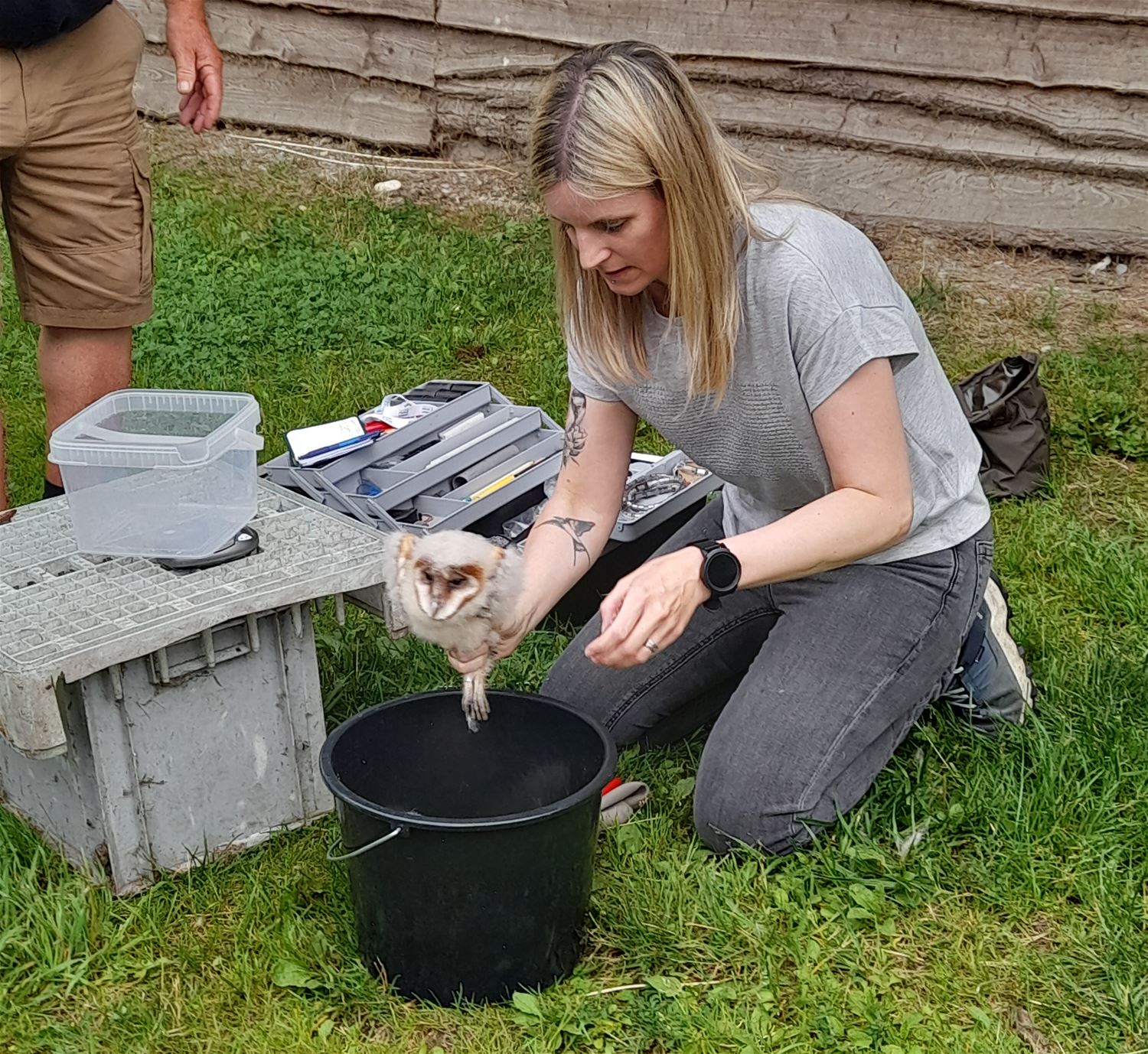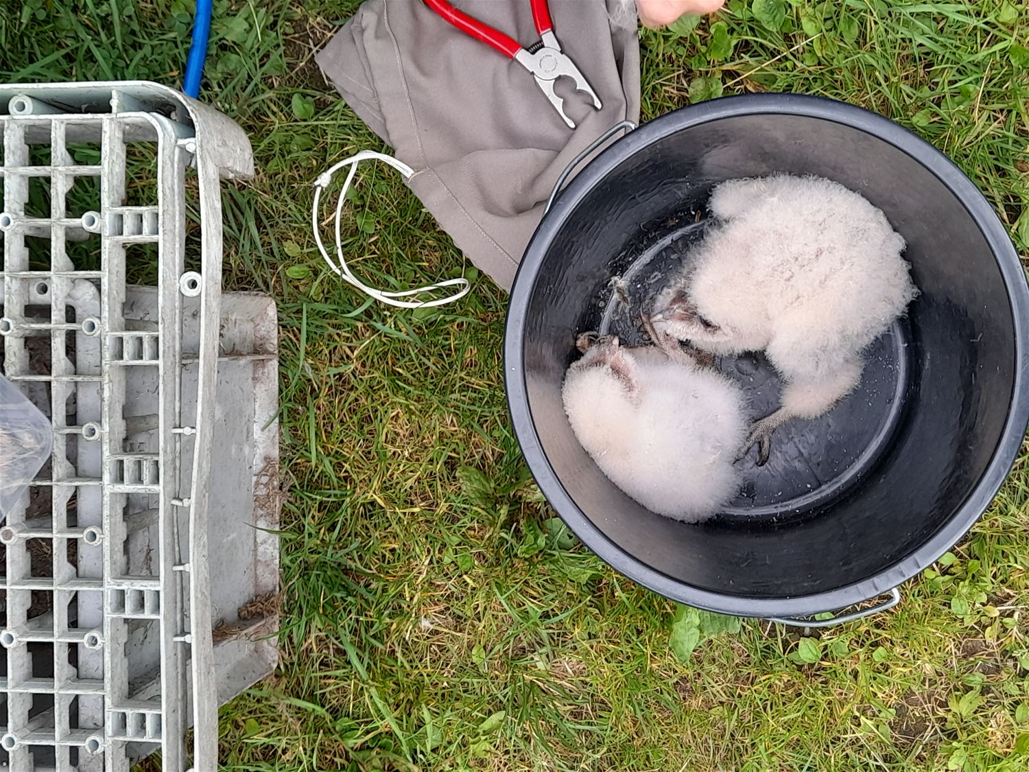 Een bijzonder moment vandaag op Domein Bovy want leden van de Vogelringgroep Bokrijk hebben er de uilskuikens geringd. Zoals bekend beheert de vogelringgroep tientallen nestkasten verspreid op het domein. Daarbij ook een uilenkast en daar heeft een paar gebroed, met succes want ze hebben drie schattige kuikens voortgebracht. Die kregen vandaag hun ringetje. De schattigerds lieten dat blijkbaar gewillig doen en moeten nu nog wat verder groeien. (foto's Jos Bervoets)82558