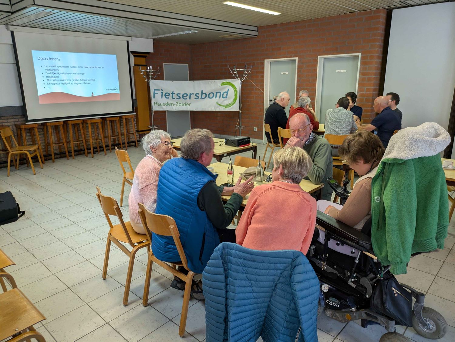 De Vlaamse Koepel van de Fietsersbond gaf in De Kring een voordracht “Snel graag traag”. Op de fietspaden zijn er snelle en trage fietsen, van gewone tot elektrische fietsen, speedpedelecs, trikes, steps... Verschillende snelheden en groottes met daardoor geregeld problemen. Wies Callens, woordvoerder van de Koepel, begeleidde de voormiddag met de nodige interactie. Daarnaast waren er workshops. Er was trouwens een behoorlijke opkomst. (foto’s Paul Coolen)84901