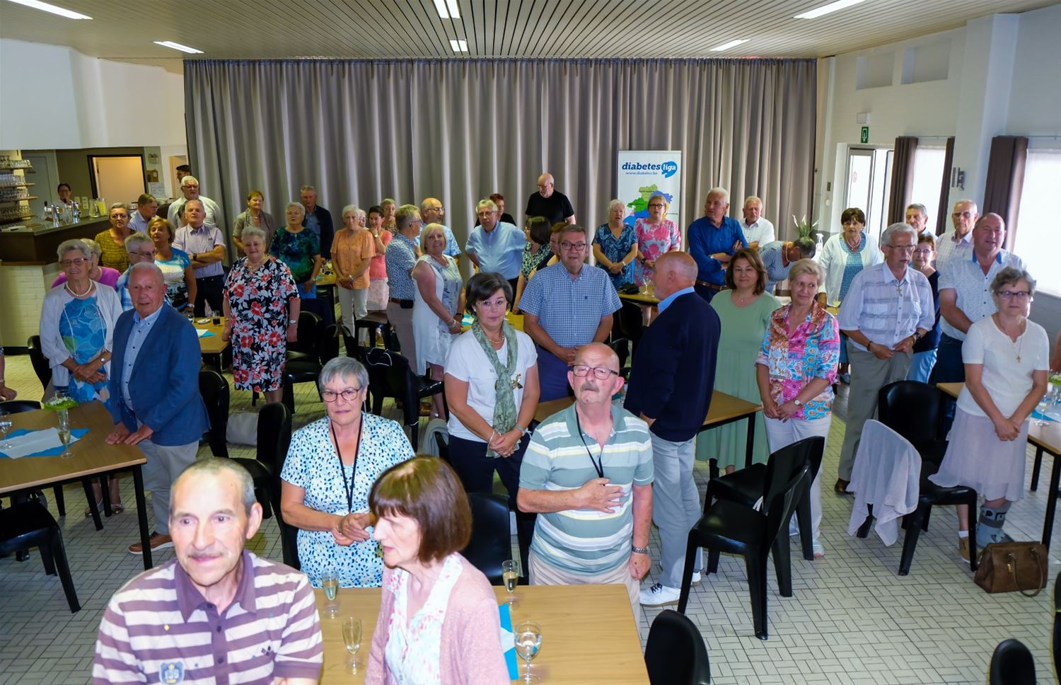 De Diabetes Liga afdeling West-Limburg vierde haar 40ste verjaardag in de lokalen van de Sint-Sebastiaansgilde in Beringen. De liga telt leden in Beringen, Ham, Heusden-Zolder, Houthalen-Helchteren, Leopoldsburg, Lummen en Tessenderlo. Het is één van de 18 afdelingen in Vlaanderen, samen kunnen die rekenen op 350 vrijwilligers. Hun engagement is duidelijk: het taboe rond diabetes doorbreken én diabetes een halt toe roepen. Het aantal mensen met diabetes neemt immers onrustwekkend toe. Iedere 17 minuten krijgt iemand in Vlaanderen de diagnose diabetes. 1 Vlaming op 10 lijdt er momenteel aan. Investeren in projecten rond sensibilisering, preventie en behandeling van diabetes is daarom erg belangrijk. Ook is het een zaak van samen te werken met personen met diabetes, hun omgeving, de zorgverleners, de leden en tal van vrijwilligers. Wie diabetes heeft, kan toch een kwaliteitsvol leven lijden. Die boodschap van hoop vormde dan ook de rode draad doorheen de feestviering. (foto's Jean Beerten)73402