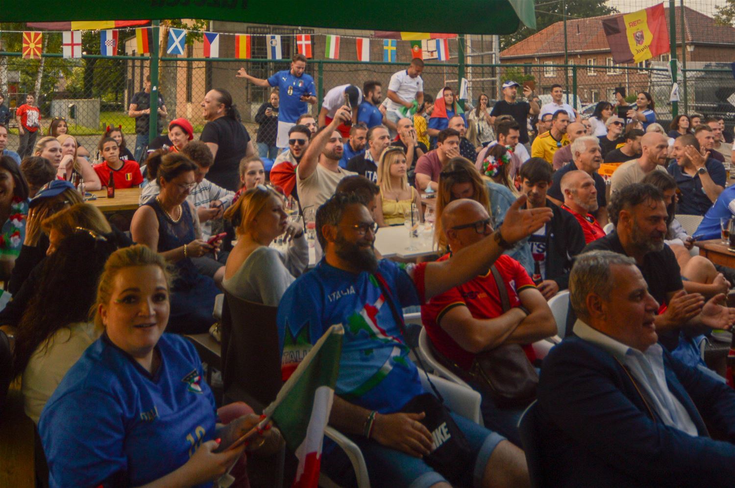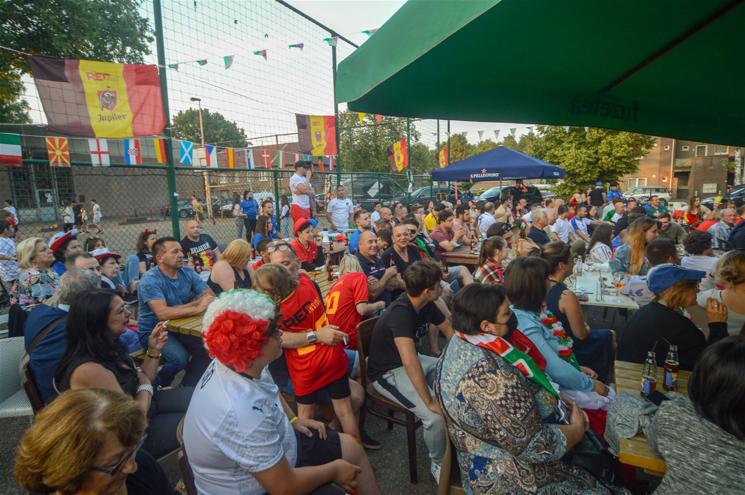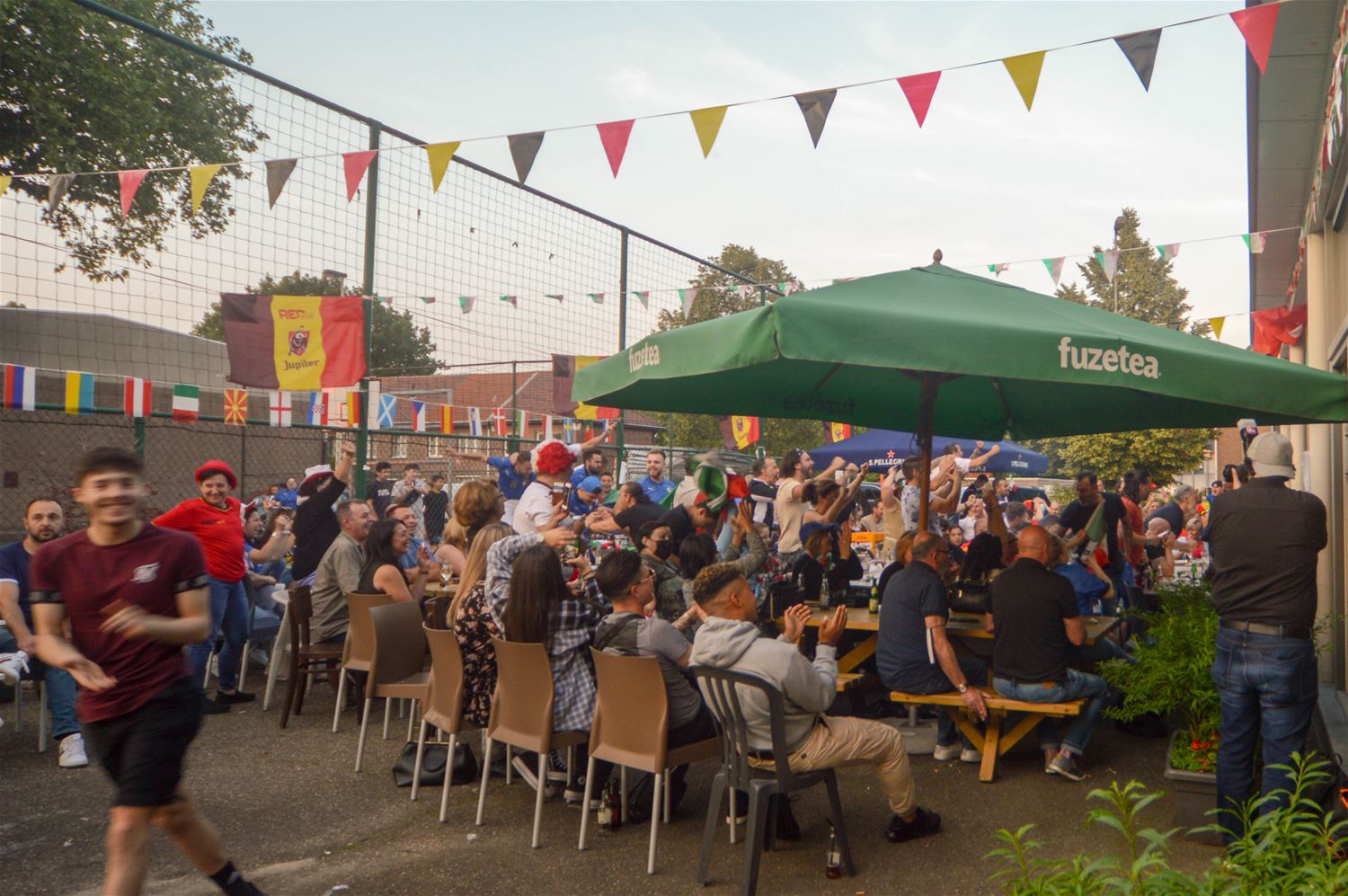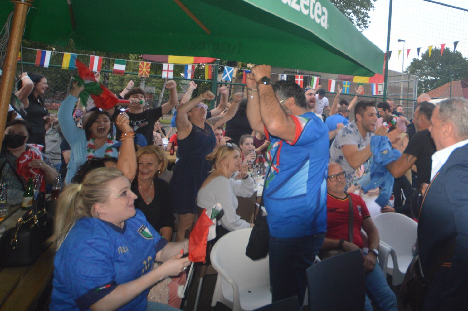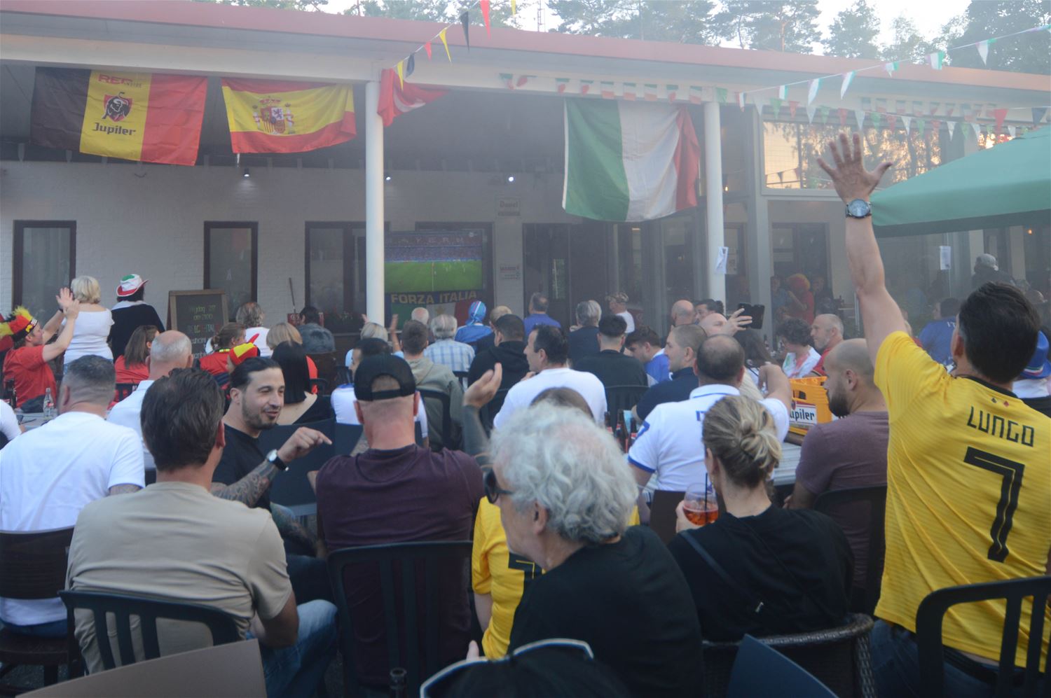 Bij de Italiaanse supporters die onder meer in La Baracca talrijk waren samengekomen, was de vreugde uiteraard zeer groot na de overwinning en de kwalificatie voor de halve finales van het EK. Een terechte overwinning die met de nodige prosecco en ander vloeibaars werd overgoten en die hen al doet uitkijken naar wat nog komen gaat. Overigens zaten er ook verschillende Belgische supporters tussen bij La Baracca, maar die waren uiteraard tegen het einde niet meer te horen. (foto's David Amgad)