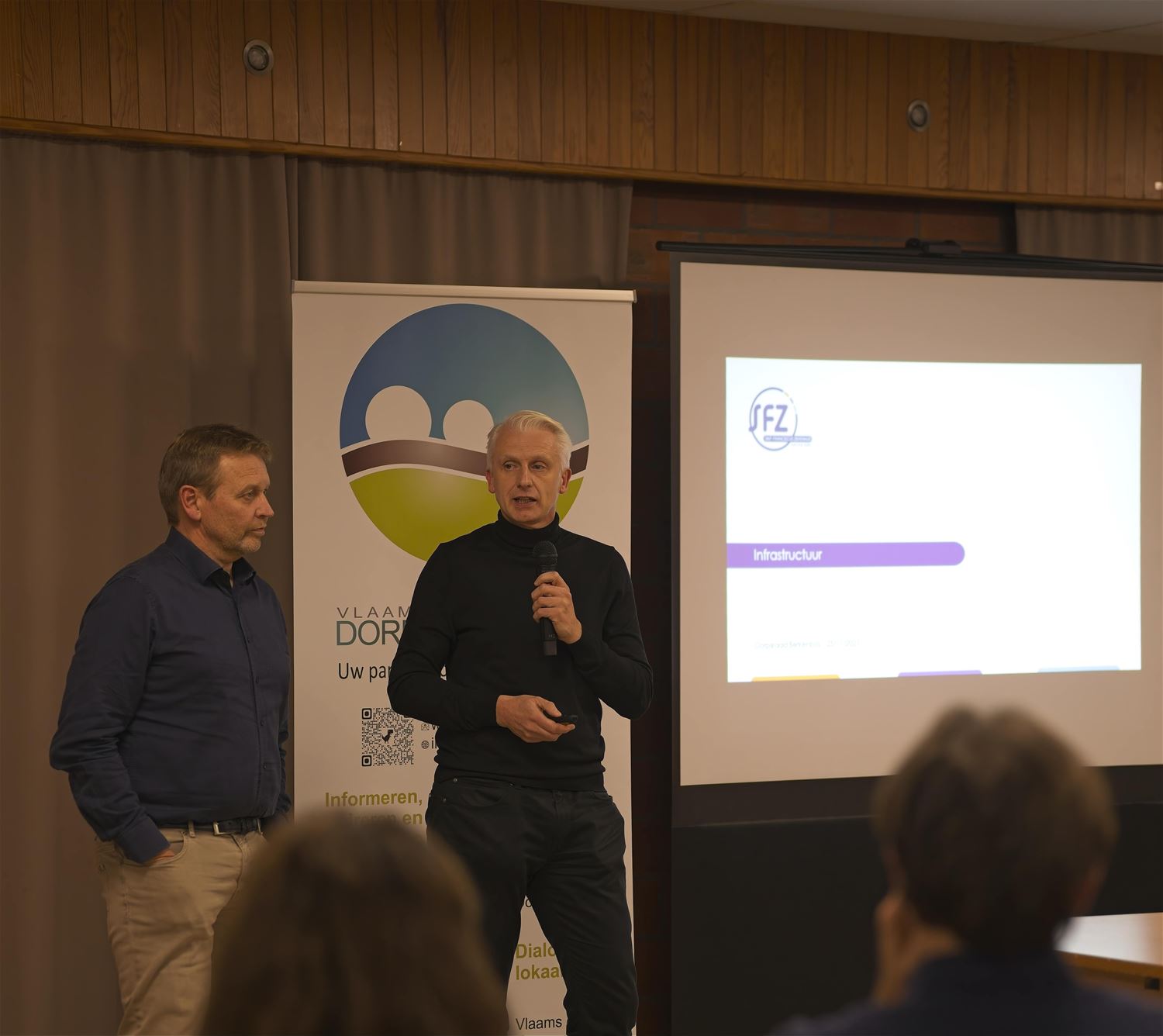 Dorpsraad Berkenbos mocht vanavond in de Sint-Martinusgilde enkele tientallen geïnteresseerden verwelkomen op zijn algemene vergadering. Daarop kwamen de directies van twee belangrijke lokale instellingen een toelichting geven: het Sint-Franciscusziekenhuis en het Sint-Franciscuscollege. In het ziekenhuis staat uiteraard de uitbreiding centraal waarbij de ruwbouw in zijn laatste fase is. Vooral belangrijk is dat de dienstverlening en capaciteit er door uitgebreid worden. Algemeen directeur Geert Missotten van het Sint-Franciscuscollege kwam onder meer de reden – veiligheid – van de afsluiting van de Minderbroedersstraat belichten. De aanwezigen kregen ook het belang van de BIN’s mee en wat buurtbewoners kunnen bijdragen aan de veiligheid. Uiteraard rezen hier en daar ook vragen uit het publiek. Vanuit de dorpsraad zelf gaf voorzitter Steven Houben een overzicht van de activiteiten het afgelopen jaar – denk maar aan Berkenbos Leeft en de Dag van de Trage Wegen – en blikte vooruit naar de plannen voor het komende jaar. (foto’s Johan Put)87036