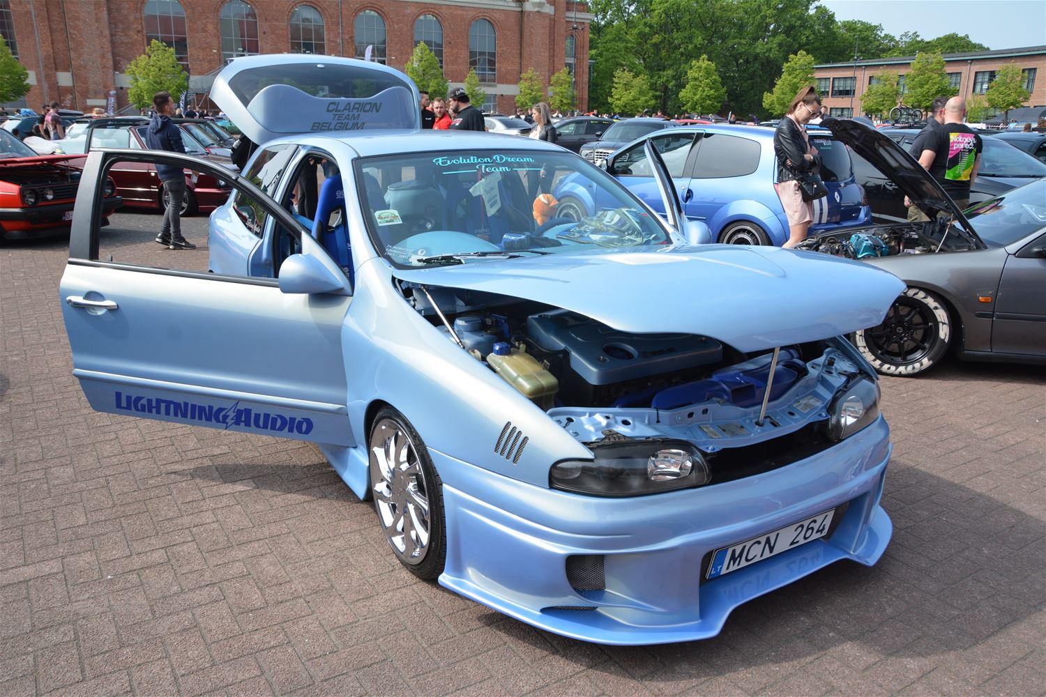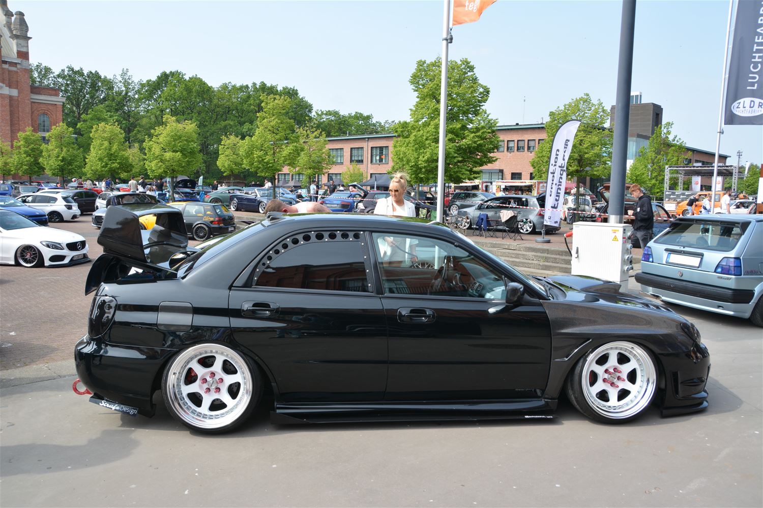 Vanmorgen is op het Marktplein de editie 2023 van Dropped van start gegaan. Van heinde en ver zijn eigenaars van tuning cars, sportwagens en oldtimers naar het mijnterrein afgezakt. Het was letterlijk een hele tijd filerijden en de opkomst is zo groot dat niet alle wagens een plaats vonden op het Marktplein zelf. Opvallend, bij aankomst halen bijna alle bestuurders of hun passagiers meteen de poetsdoek boven, want op zo'n event moet de wagen uiteraard extra schitteren. En dat doen ze, vooral in de volle zon, nog tot 17 uur vanavond. Met gepaste tunes op de achtergrond. De toegang is gratis voor toeschouwers.77568