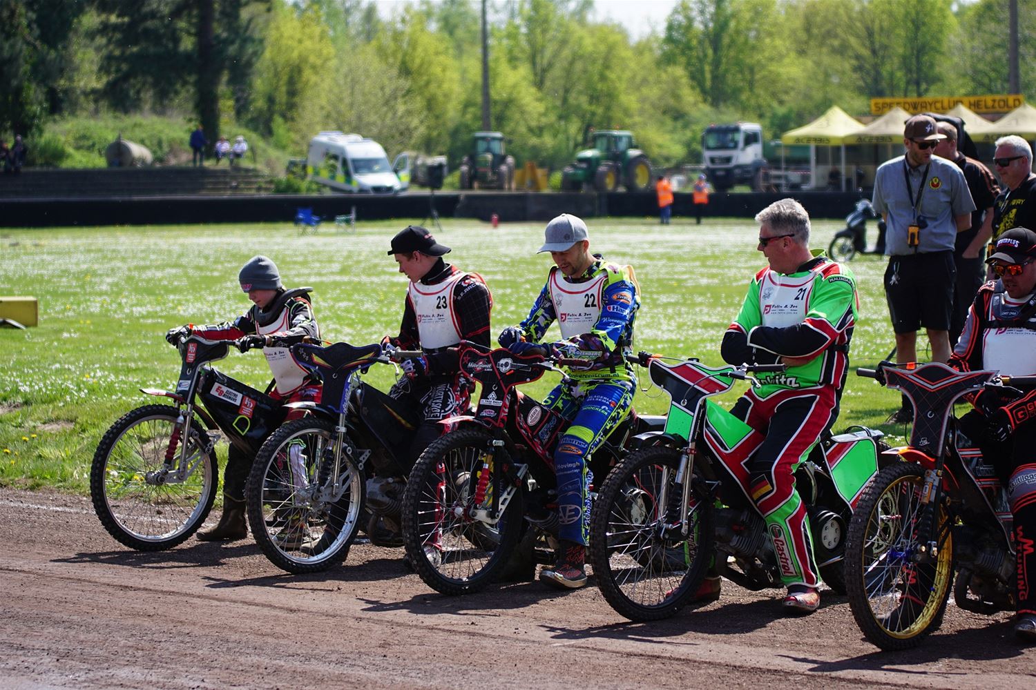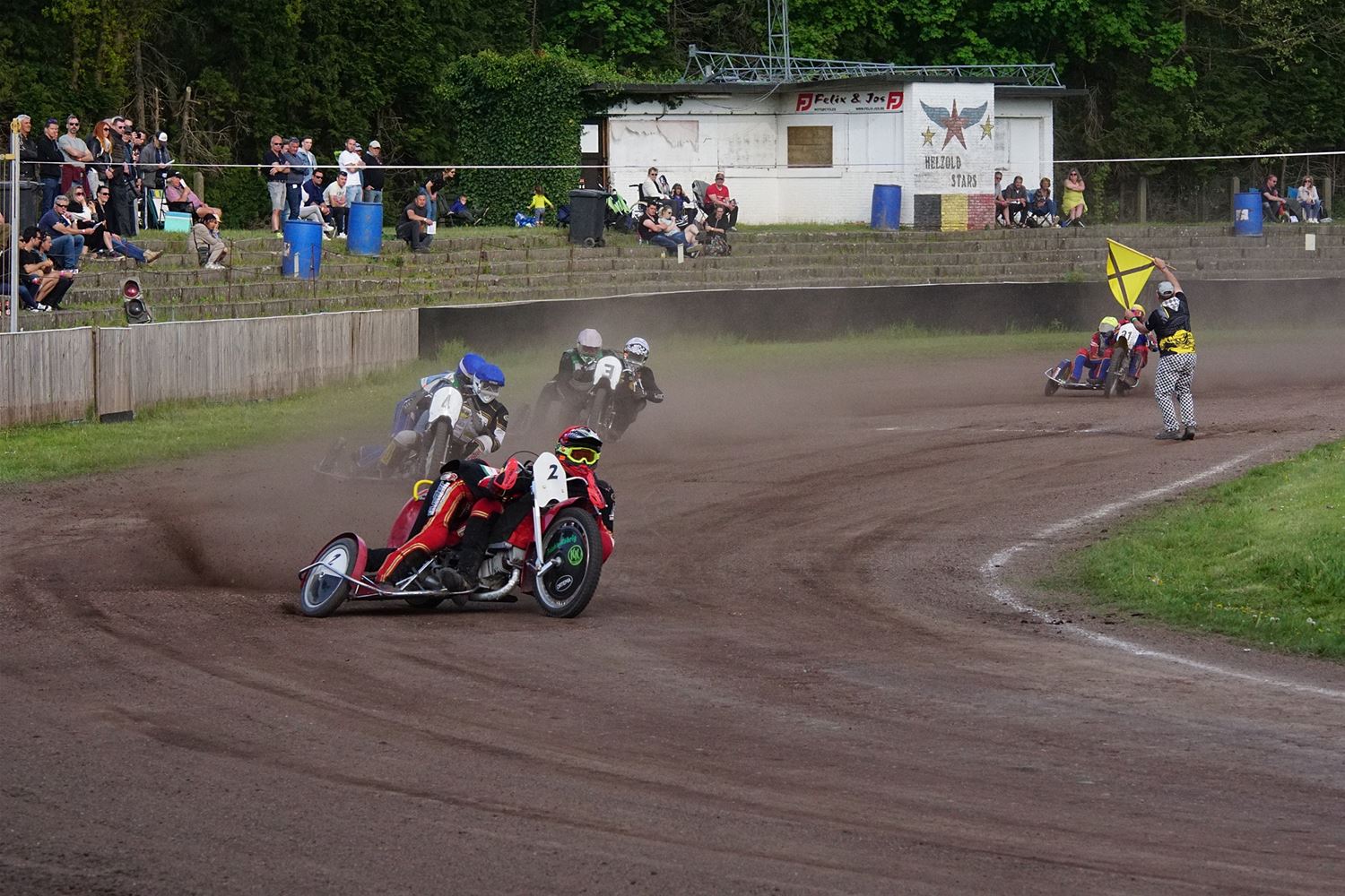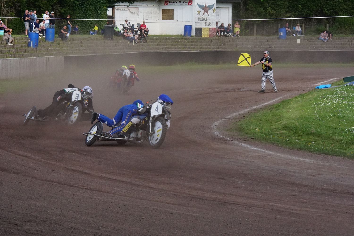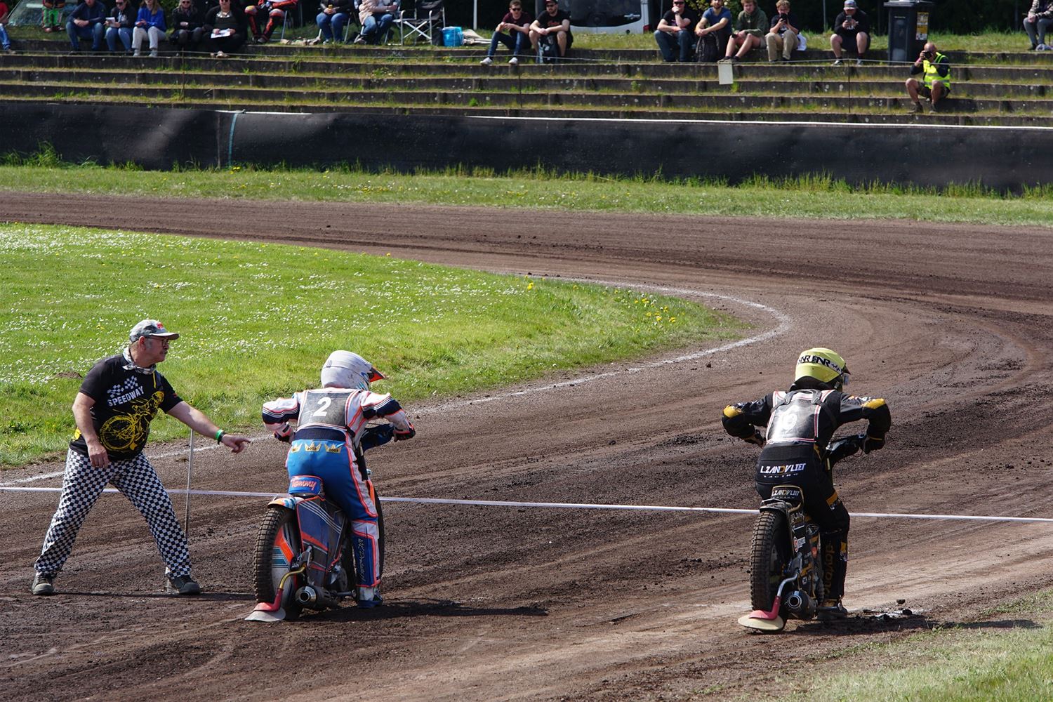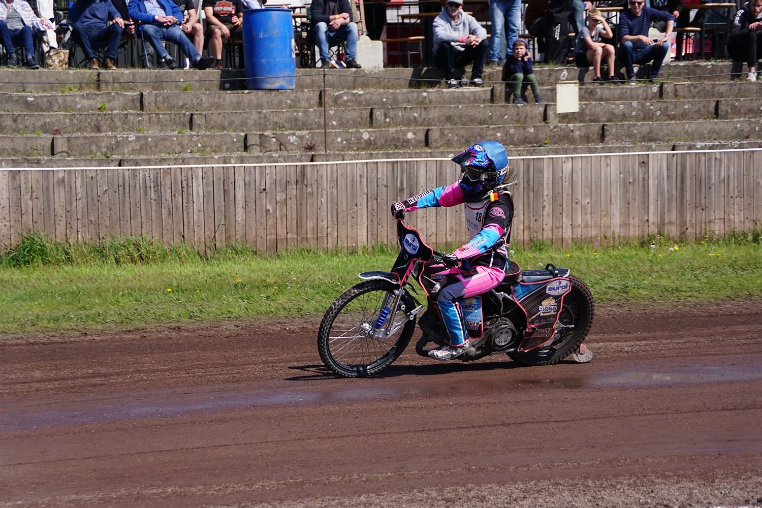 Eindelijk konden de speedwaymotoren weer ronken op Helzold. De zijspannen stonden vandaag centraal. Het werd vooral een Duitse aangelegenheid want na de verschillende manches ging de overwinning naar het duo Fabian Müller-Peter Maurer voor hun landgenoten Mike Kolb-Nadin Löffler en David-Kolb-Patrick Herbst. Bij de internationalen won de Oostenrijker Daniel Gappmaier, bij de nationalen de Nederlander Nynke Sijbesma en de 125 cc was een puur Nederlands onderonsje met als snelste Niek Meijerink. (foto's Stephan Volders)72866